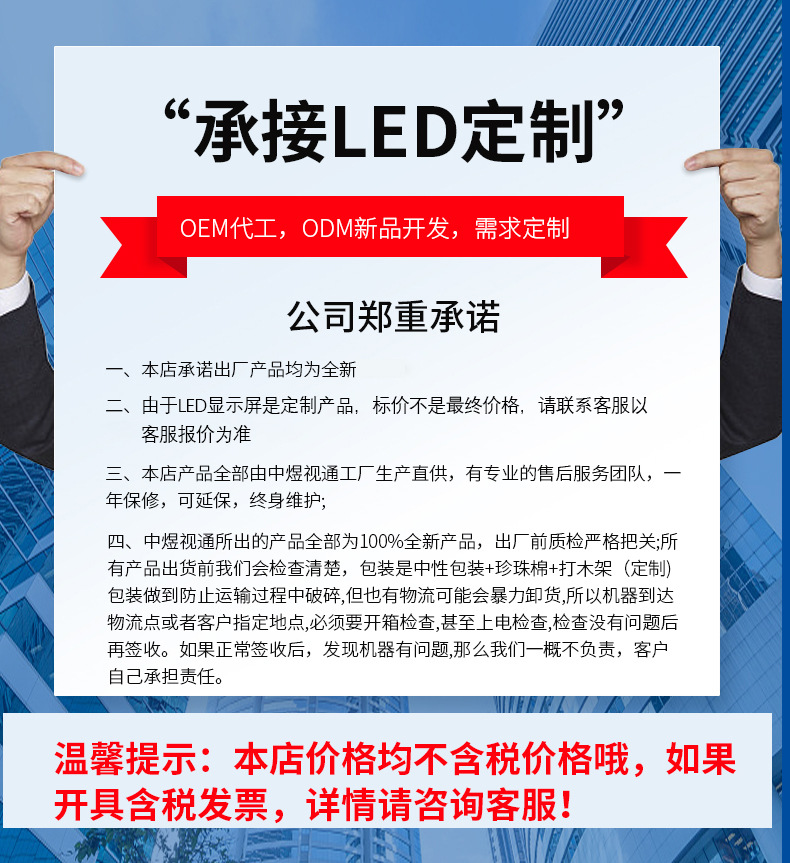 由于LED显示屏是定制产品,标价不是最终价格,