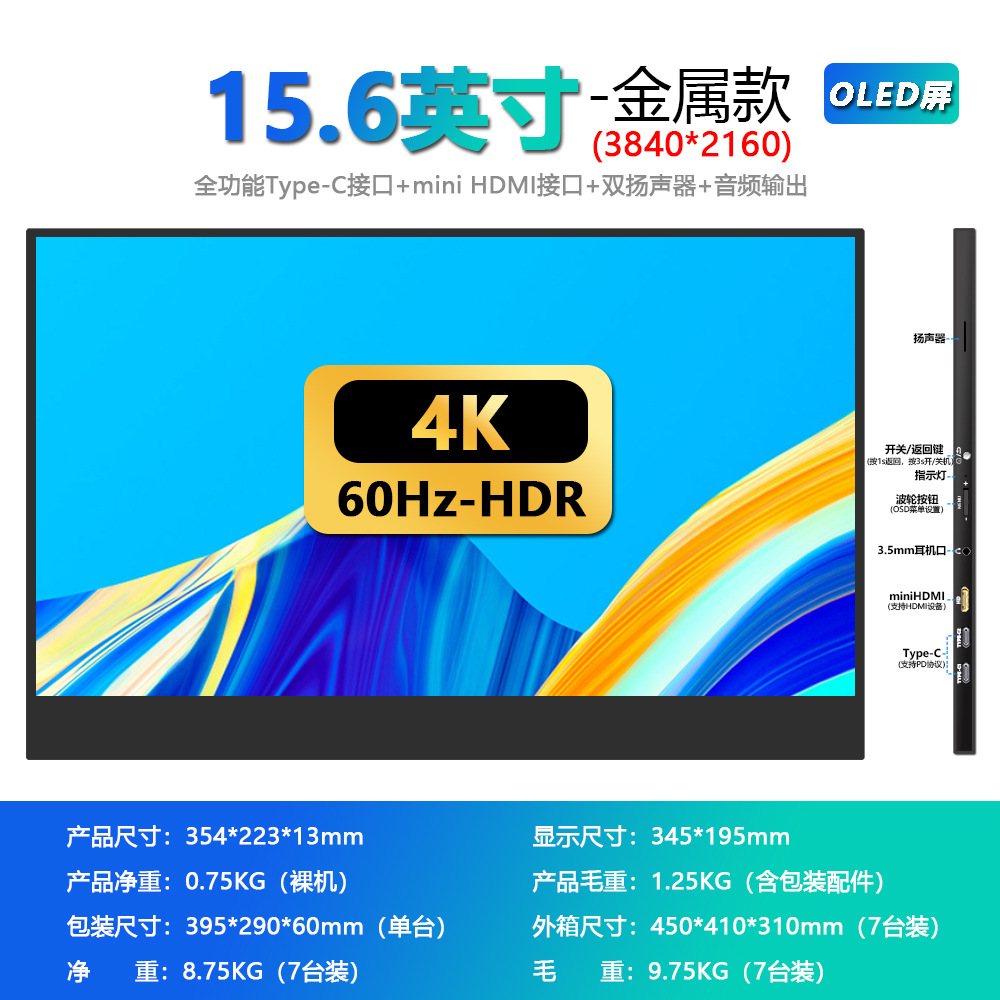 • 15.6inch 3840*2160-60hz-OLED 금속 모델, 이중 맹목적 연결