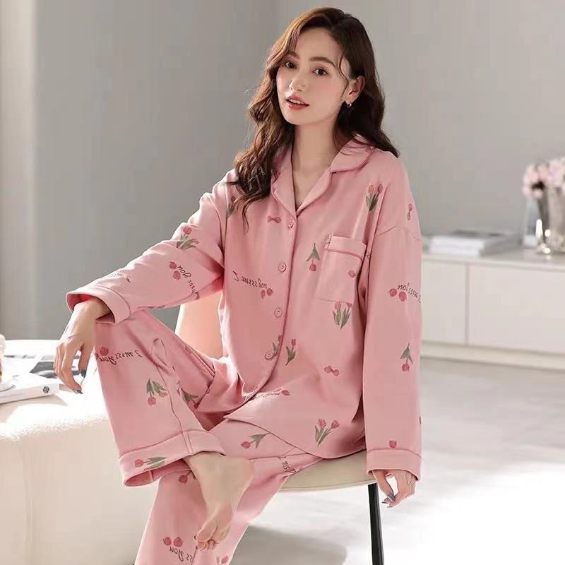 잠옷 100% 순면 봄, 가을 긴팔 대형 사이즈 2021년 신상 가을, 겨울 외출복으로도 착용 가능한 홈웨어 커플 스타일
