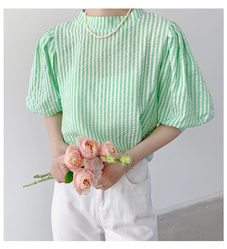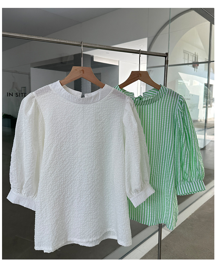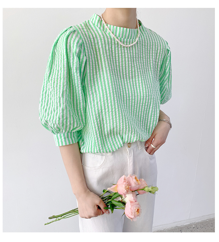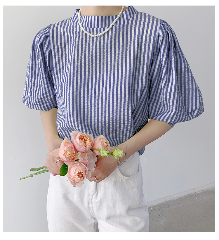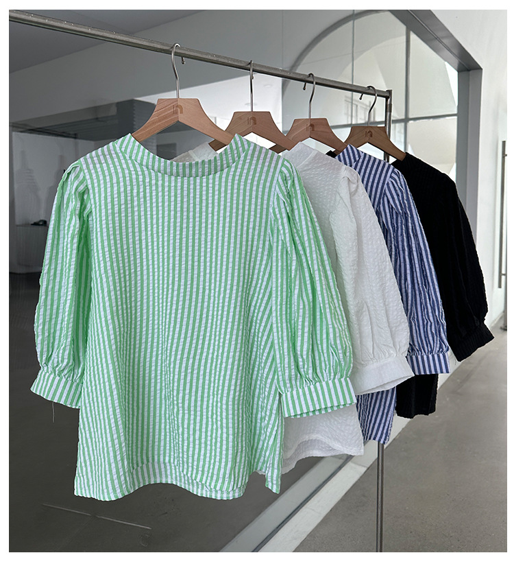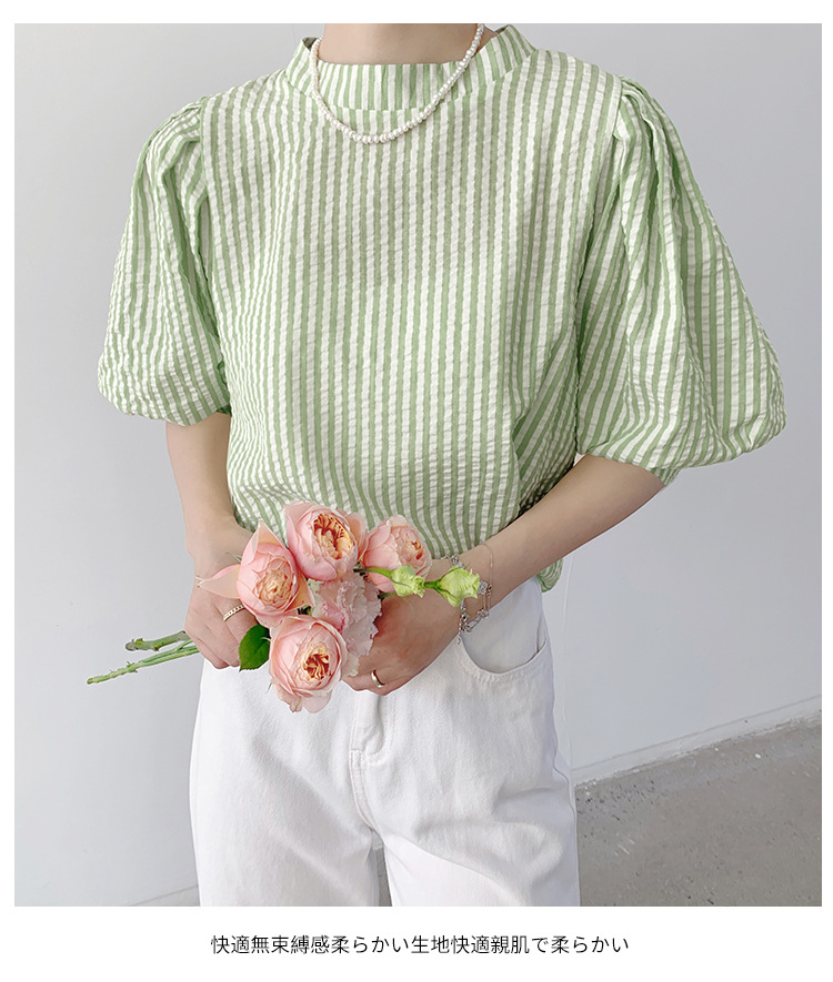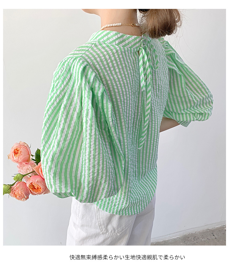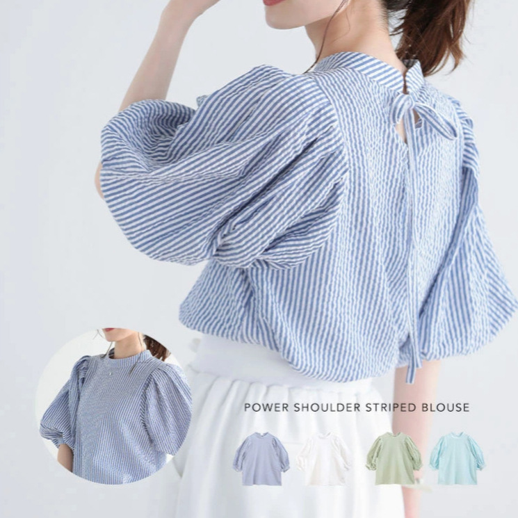 일본풍 여름 라쿠텐 신상품, 우아한 통근 스타일 퍼프소매 5부소매 레이스업 쉬폰 셔츠 여성 상의스토어 가기