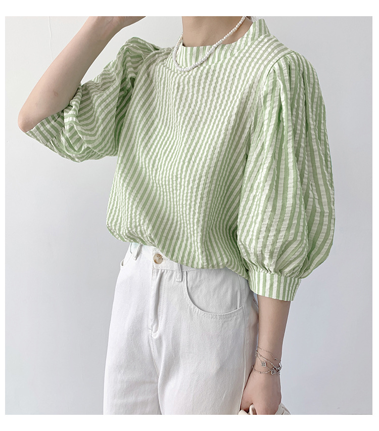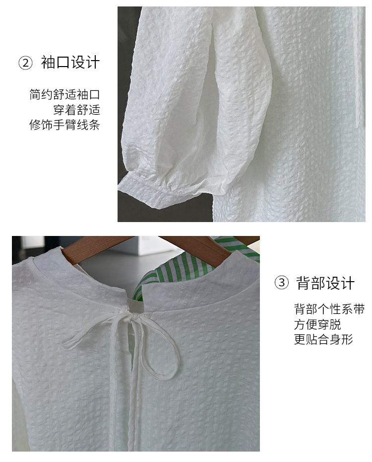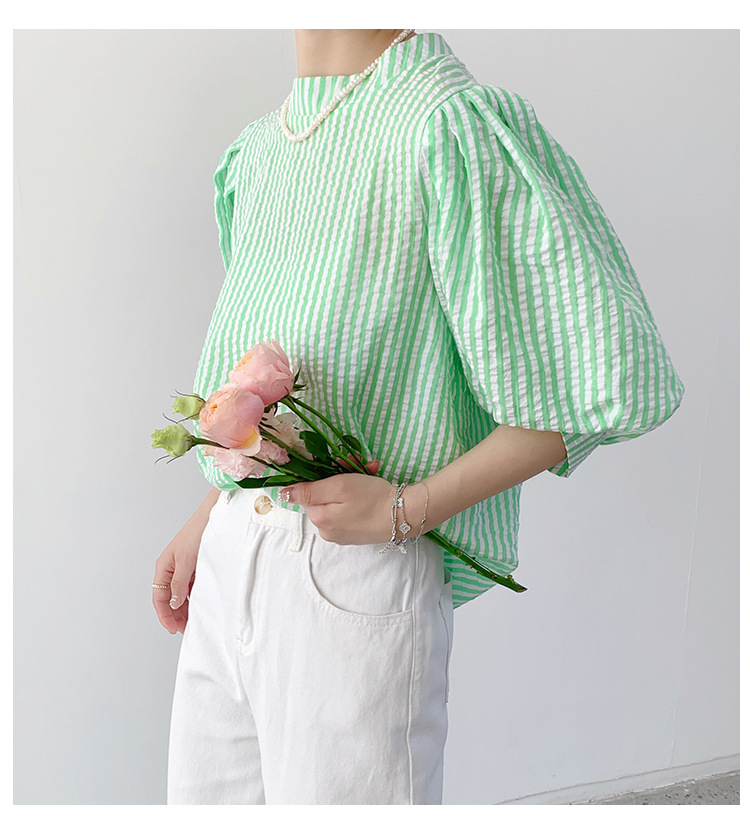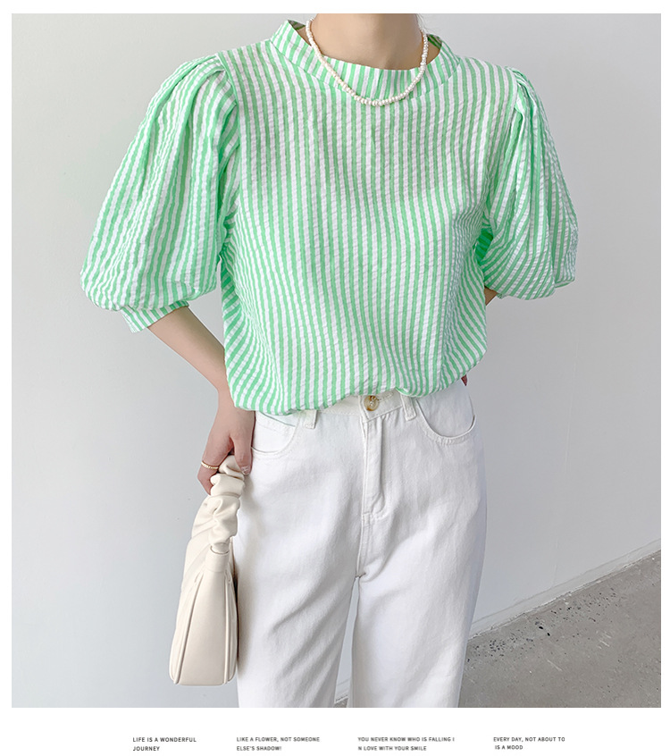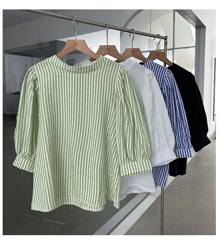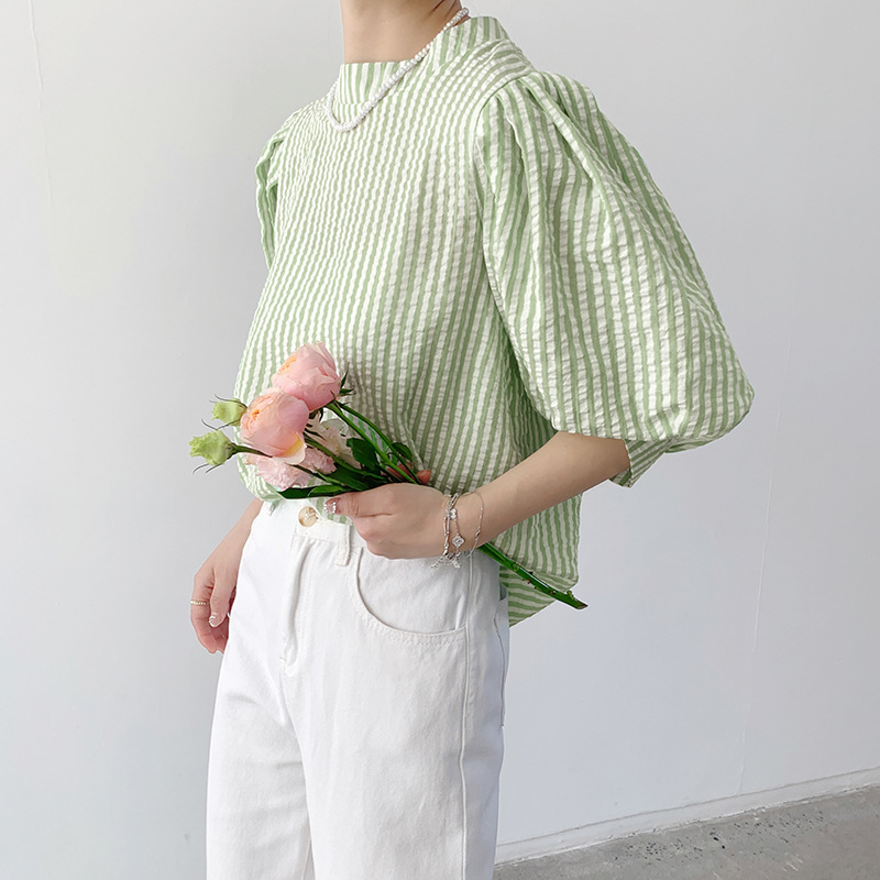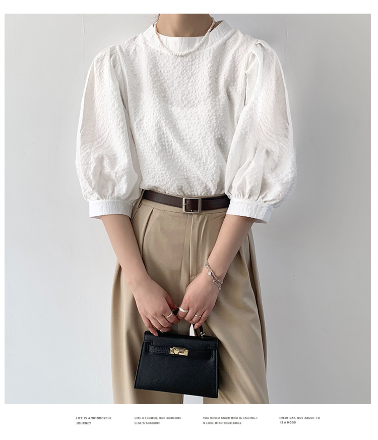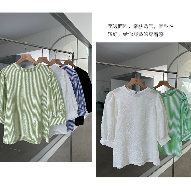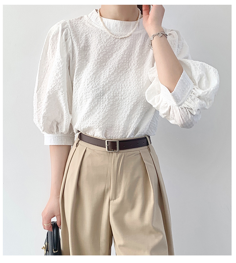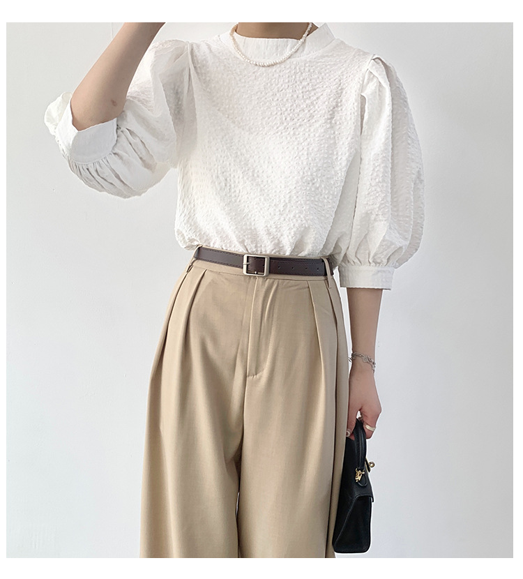 일본풍 여름 라쿠텐 신상품, 우아한 통근 스타일 퍼프소매 5부소매 레이스업 쉬폰 셔츠 여성 상의
