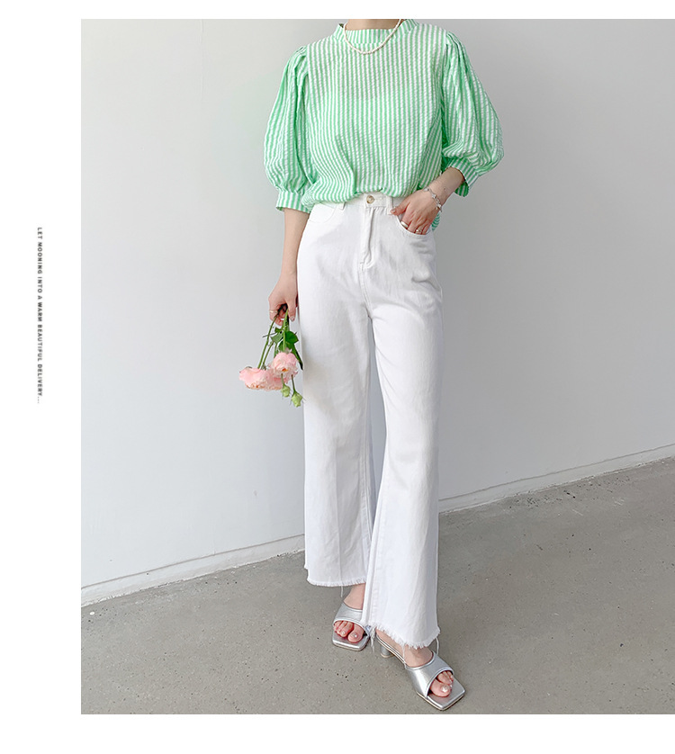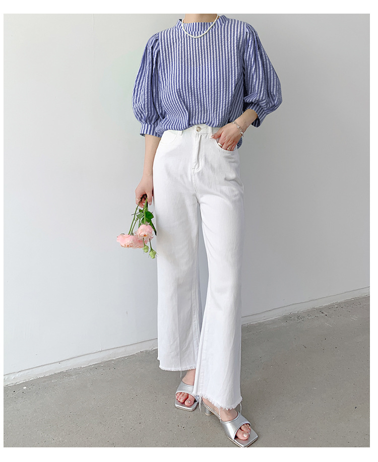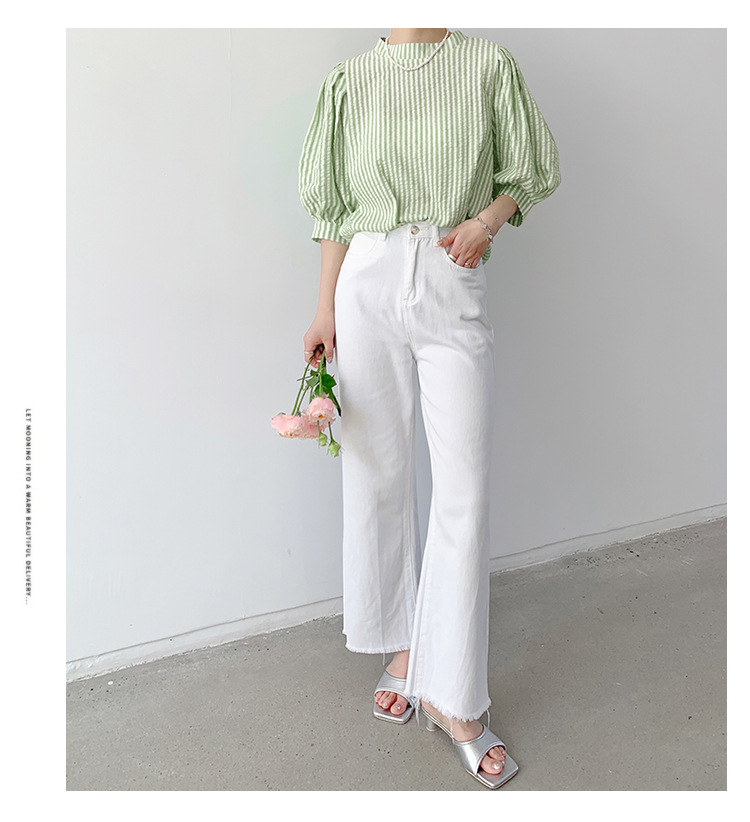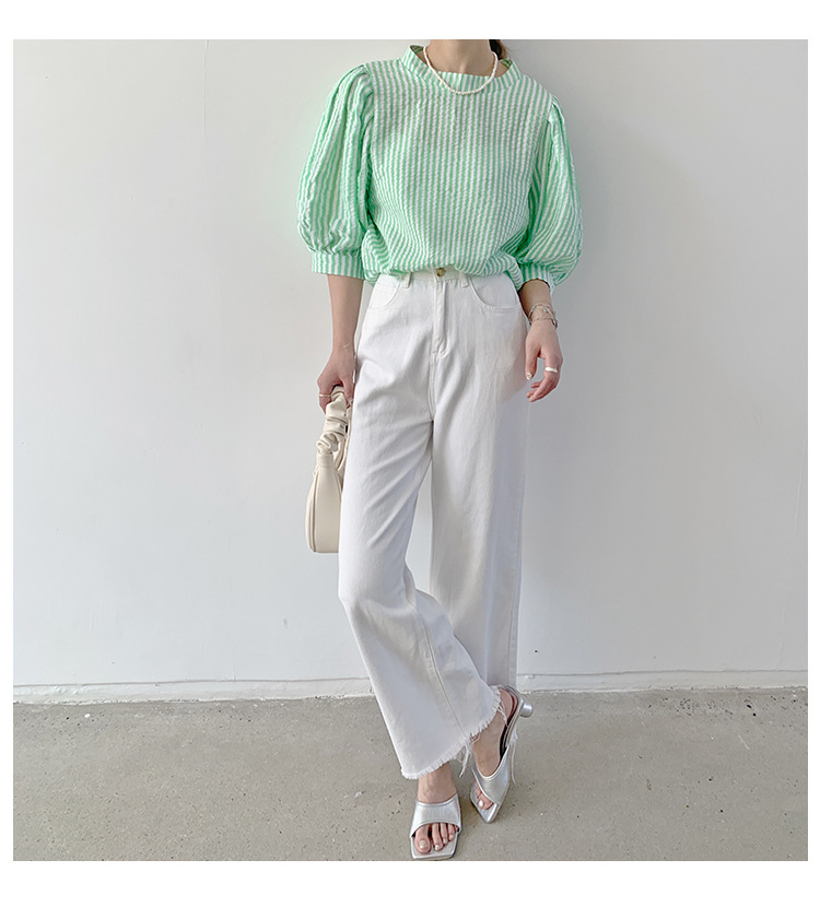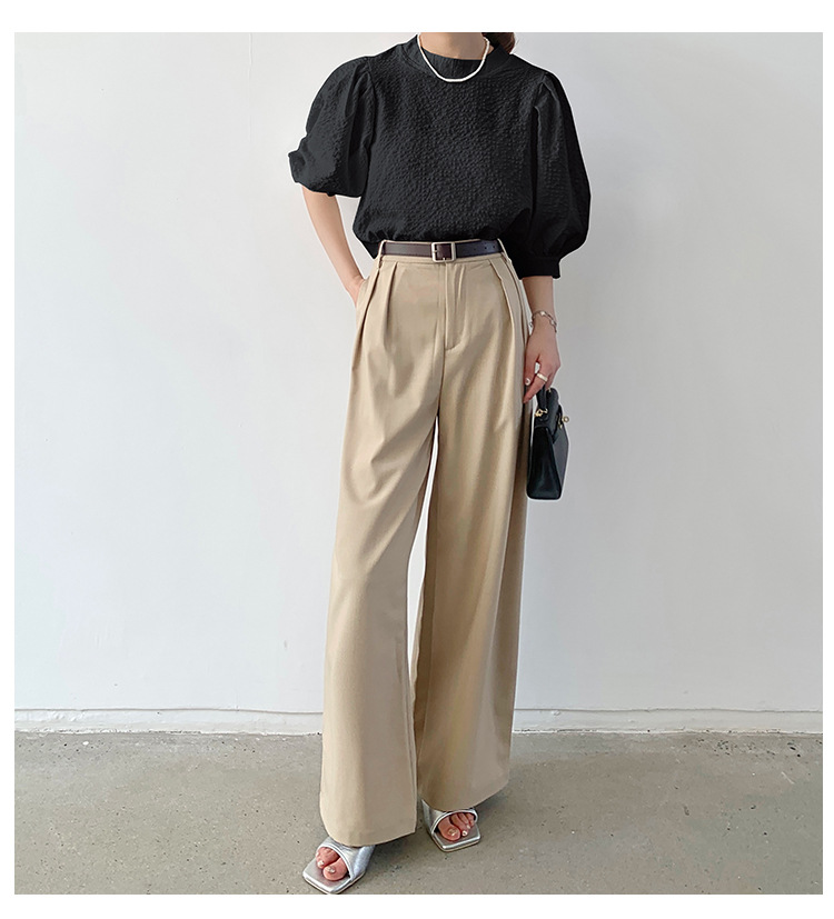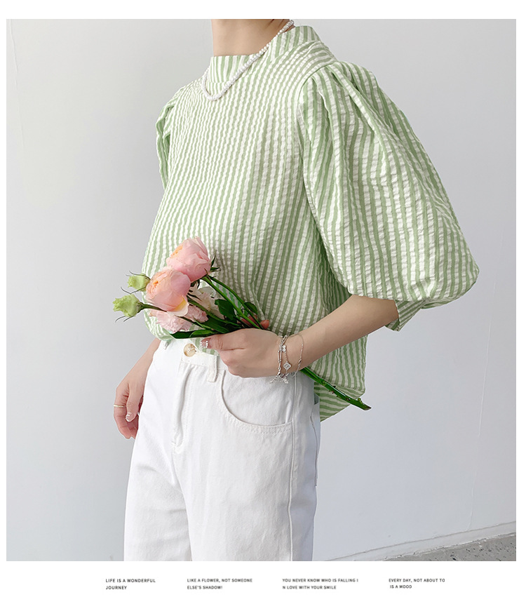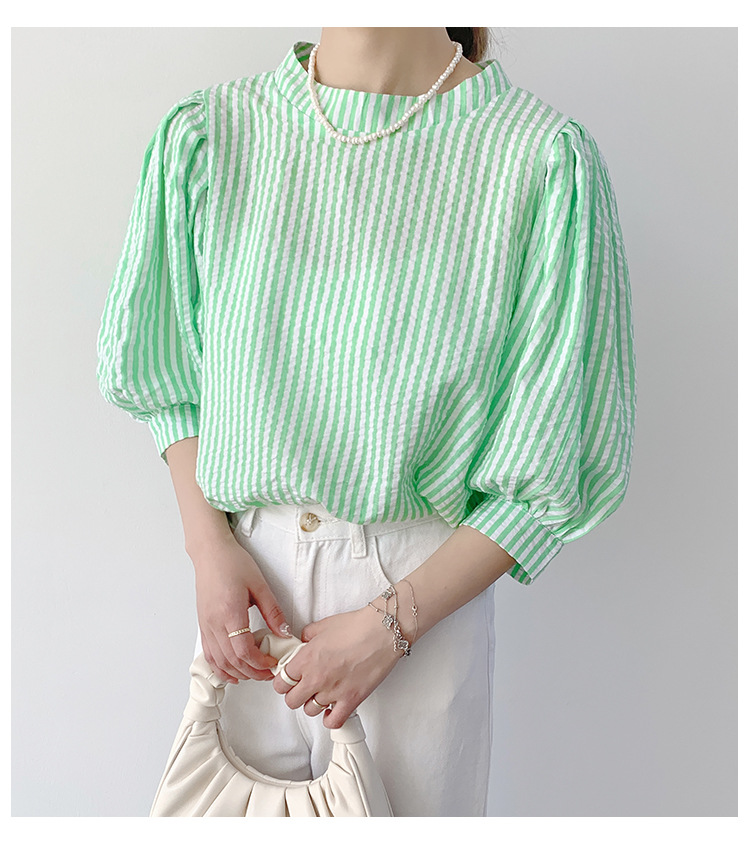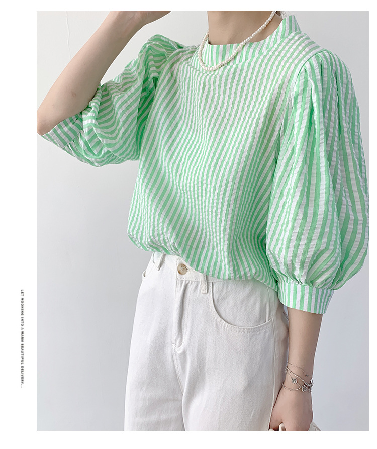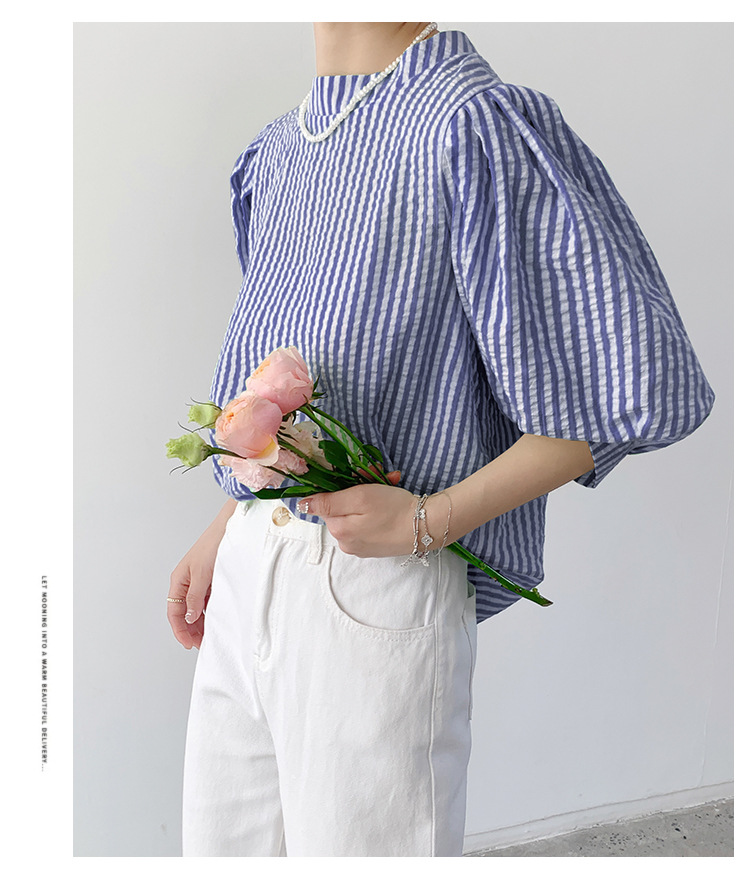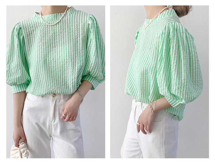 일본풍 여름 라쿠텐 신상품, 우아한 통근 스타일 퍼프소매 5부소매 레이스업 쉬폰 셔츠 여성 상의