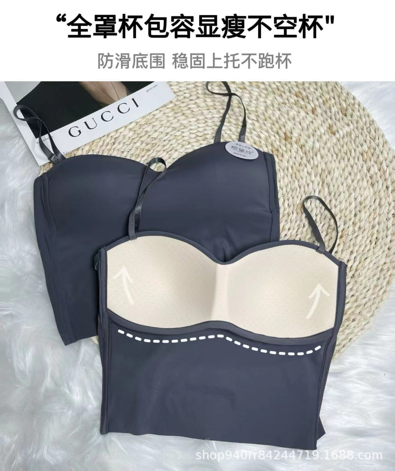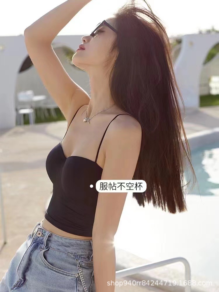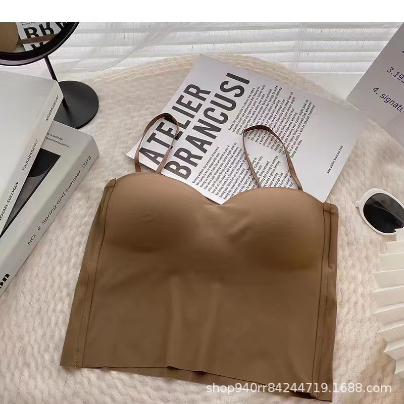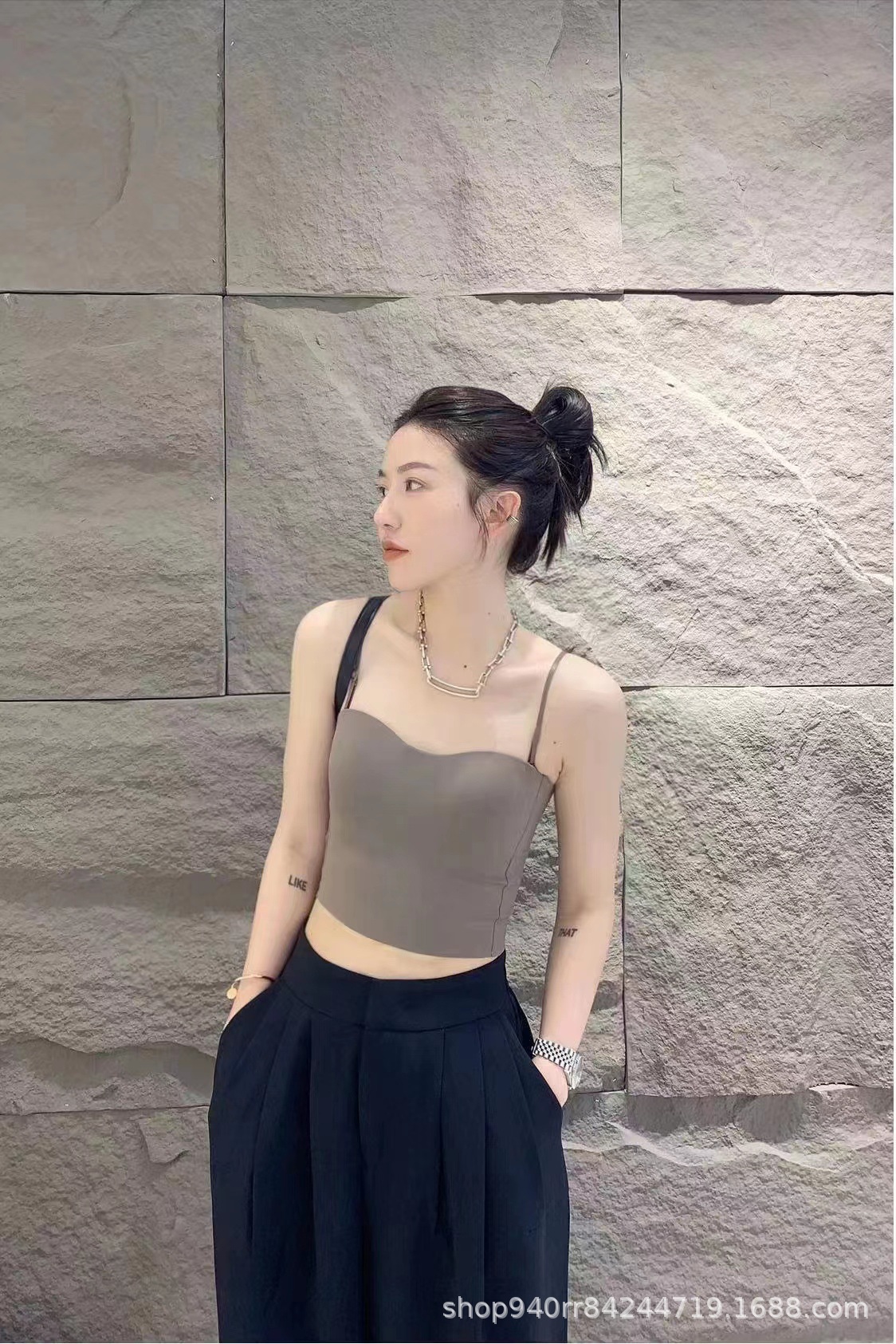 2023 새로운 아이스 실크 고정 컵 라텍스 패드 아우터 캐미솔 슬림핏 슬리밍 편안한 이너웨어 아름다운 백 랩 가슴스토어 가기