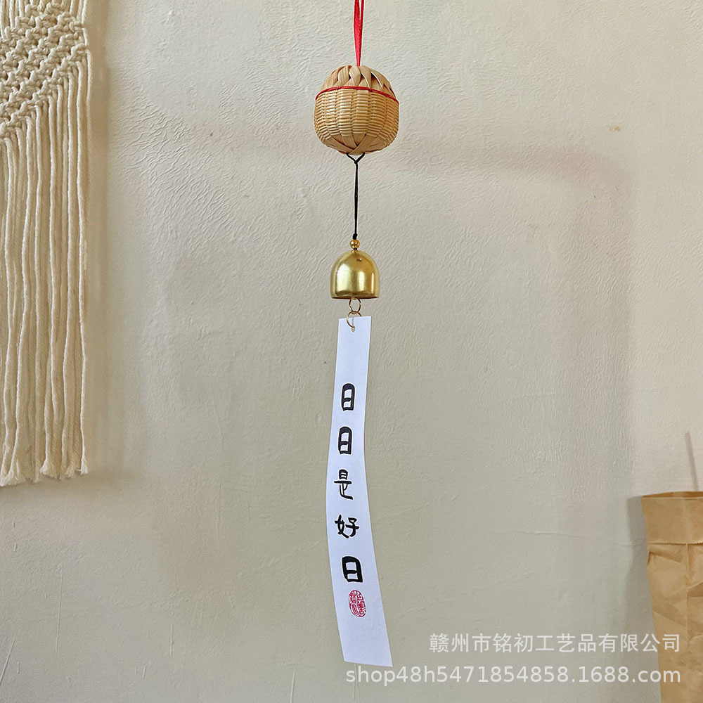 일본식 대나무 공 바람 차임 장식 대나무 짠 모리 안뜰 벨 거실 B & B 가게 펜던트 선물 빈티지스토어 가기