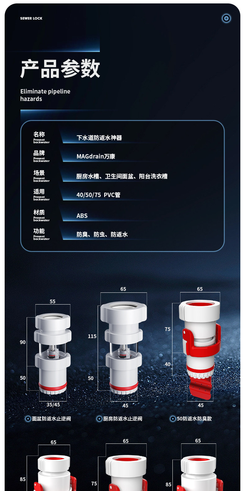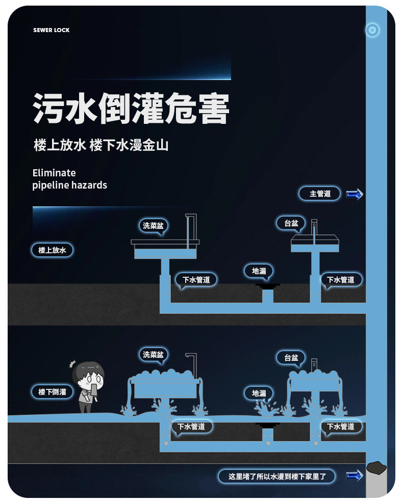 하수구 유역 배수관용 역류 방지 변기 냄새 방지 밀봉 링 역류 방지 세면대 블랭킹 장치스토어 가기