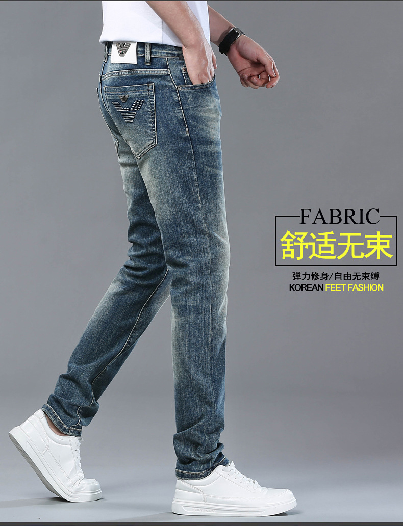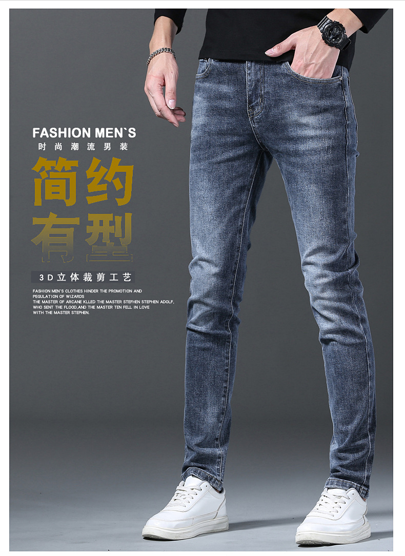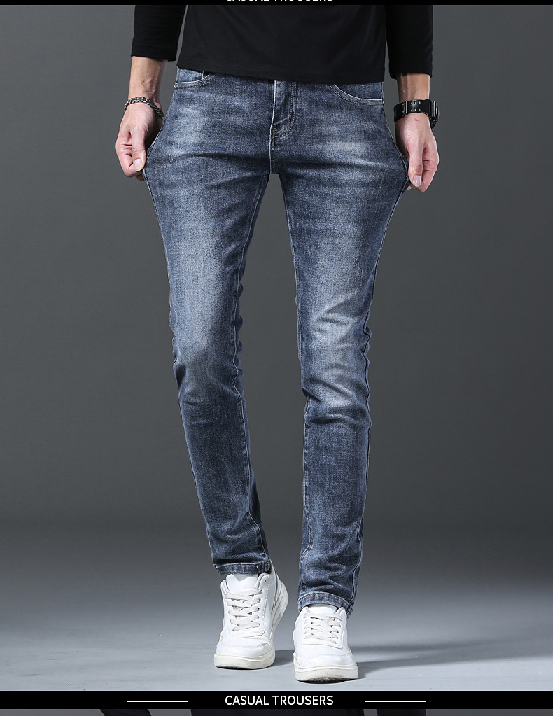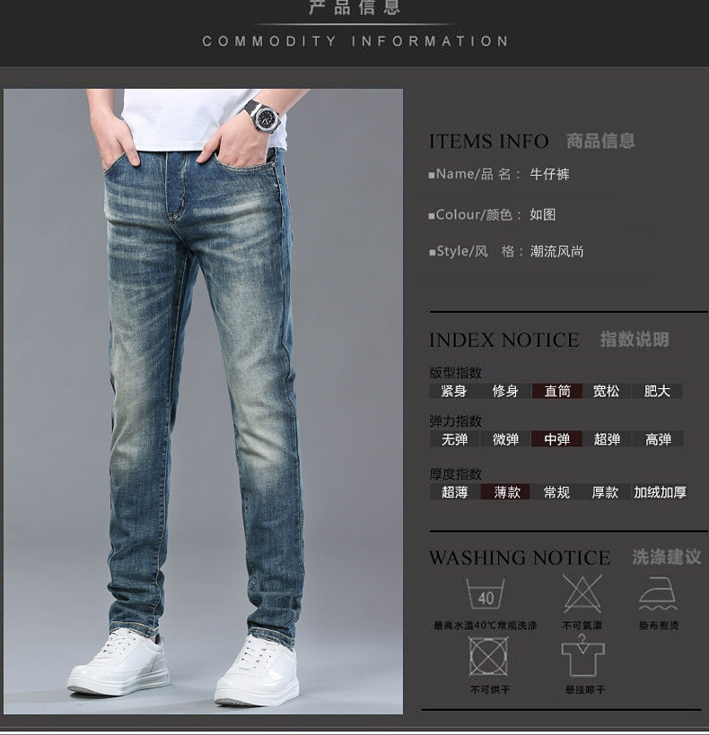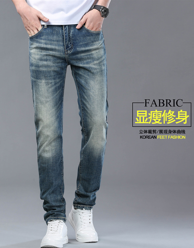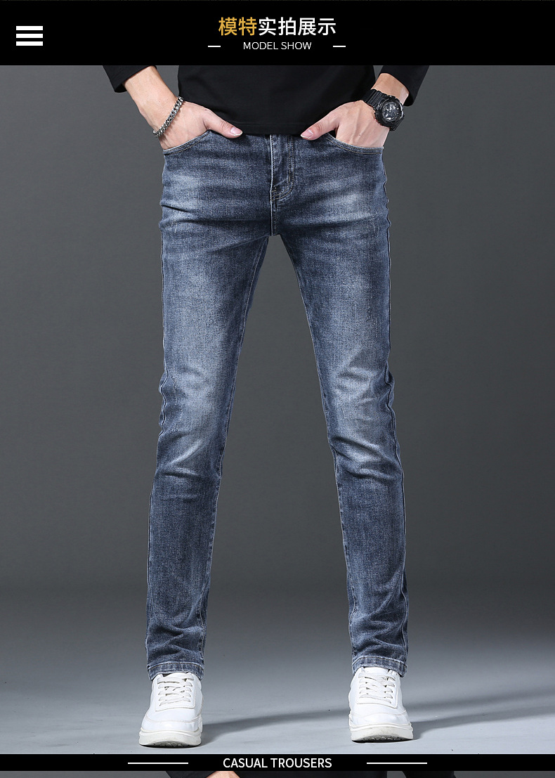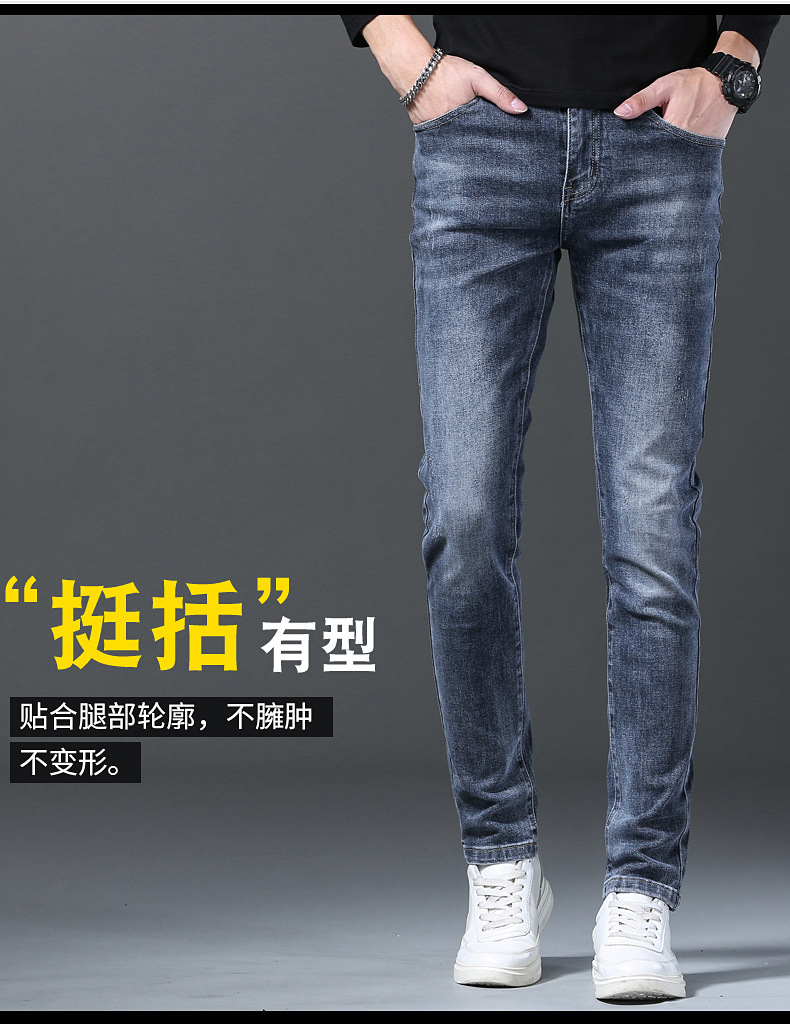 가벼운 고급 청바지 남성용 한국어 버전 봄과 여름 얇은 고급 슬림 스트레이트 탄성 캐주얼 바지 도매스토어 가기