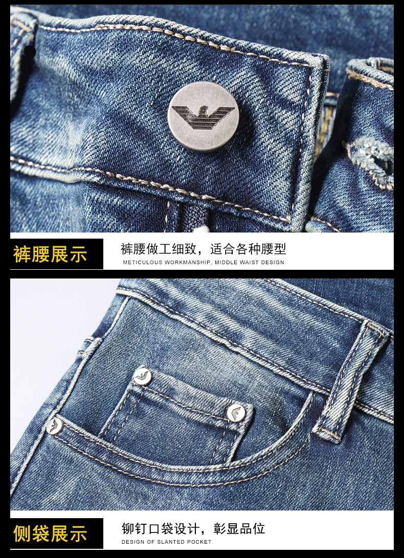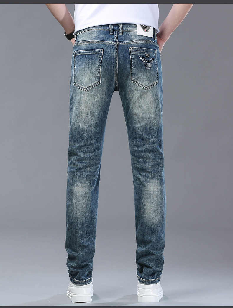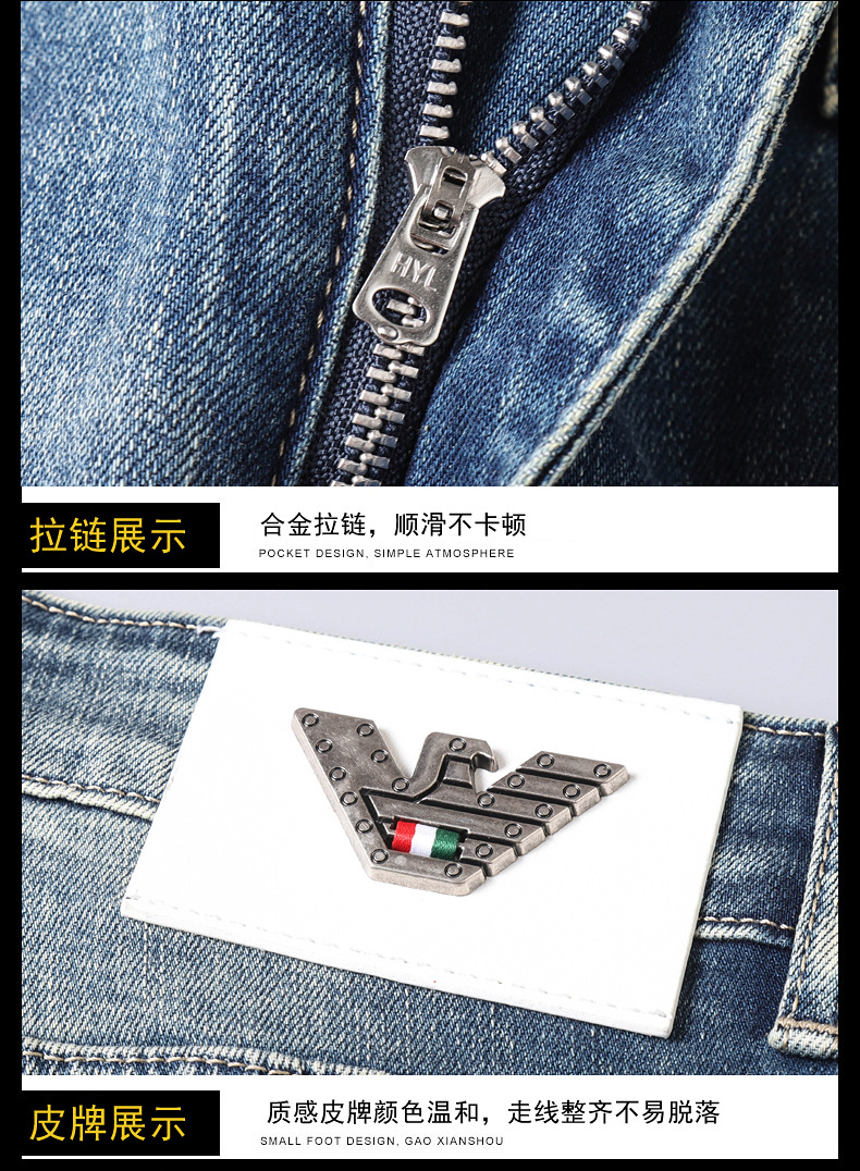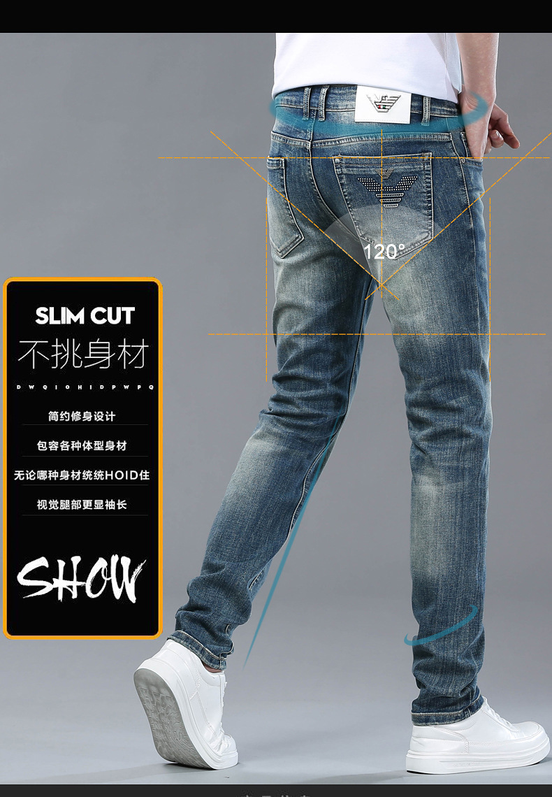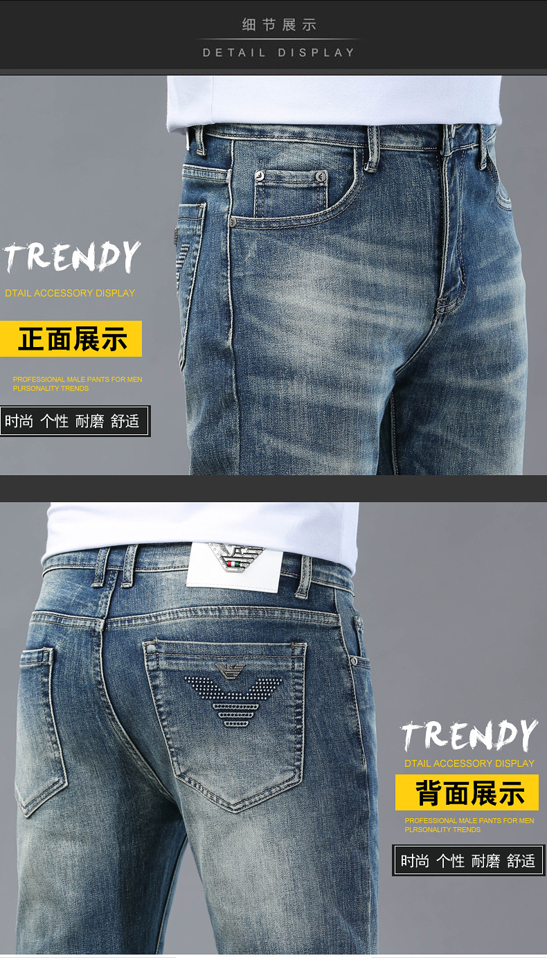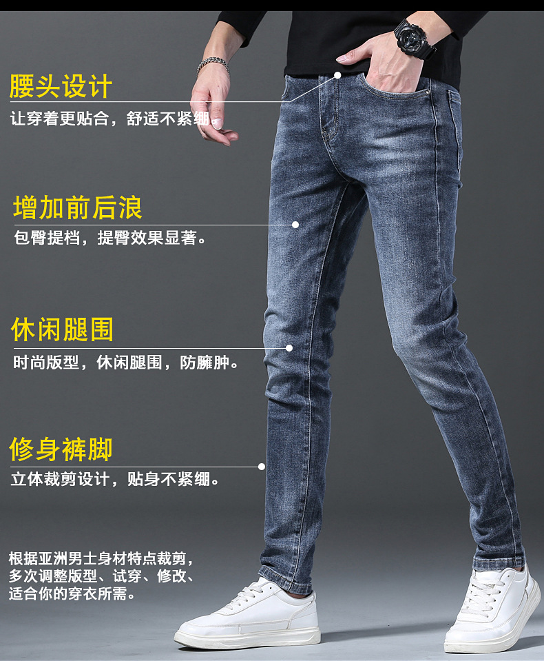 가벼운 고급 청바지 남성용 한국어 버전 봄과 여름 얇은 고급 슬림 스트레이트 탄성 캐주얼 바지 도매스토어 가기