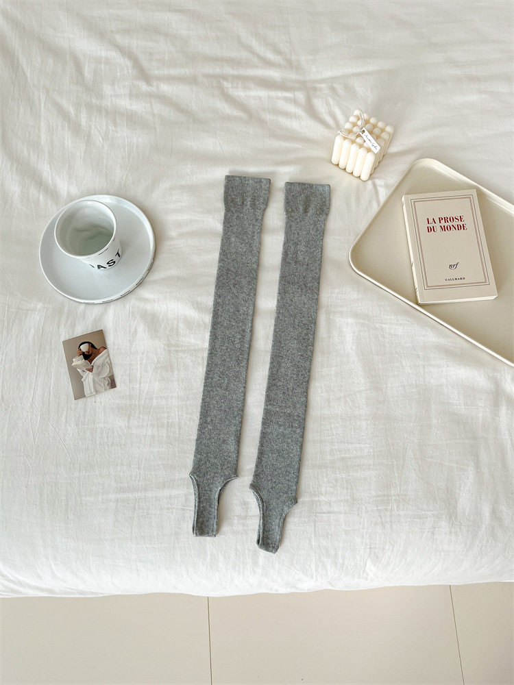23 봄과 여름 새로운 한국 스타일 디자이너 발레 스타일 발 스탬프 양말 유행 단색 긴 튜브 무릎 위 양말 면 얇은