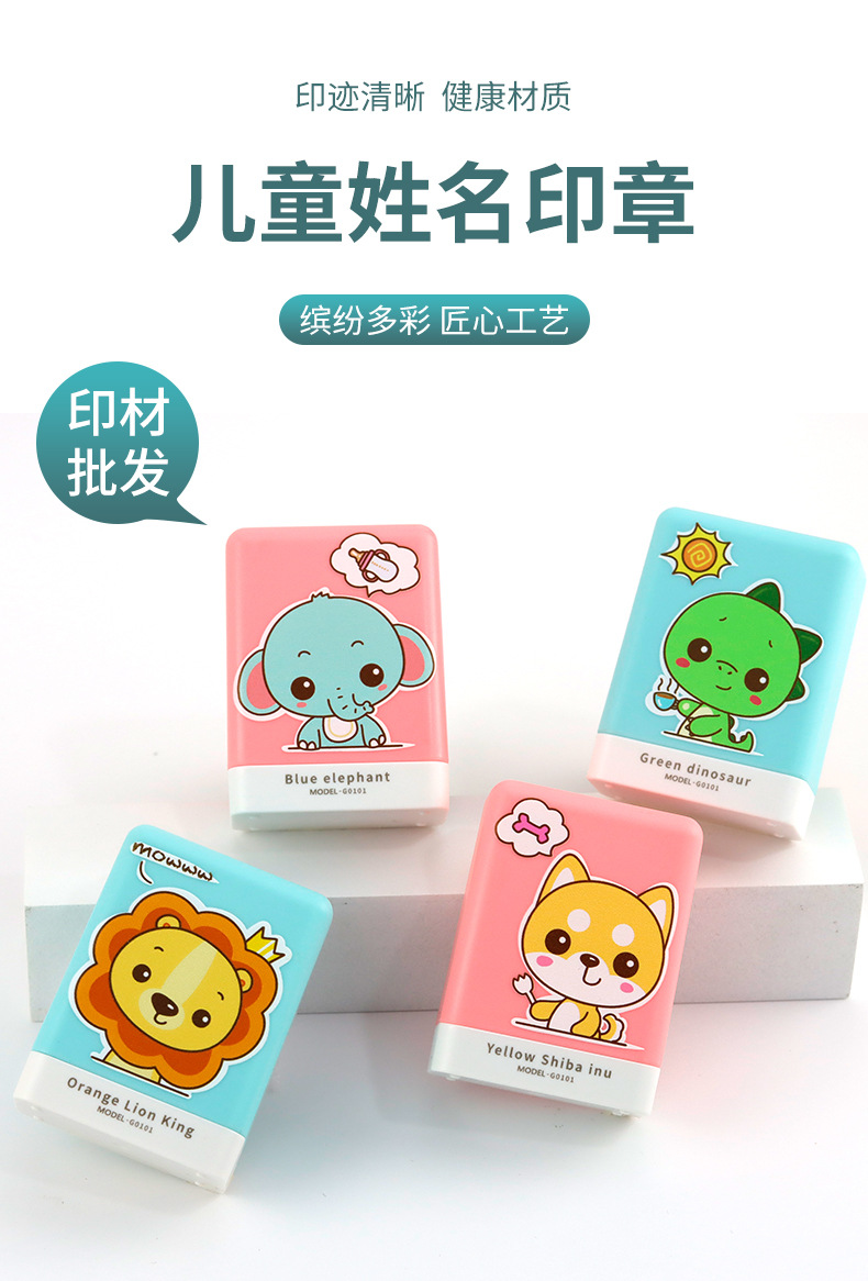 학생 만화 귀여운 인감 유치원 아동복 인감 재료 도매 공룡 사자 코끼리 작은 노란색 개