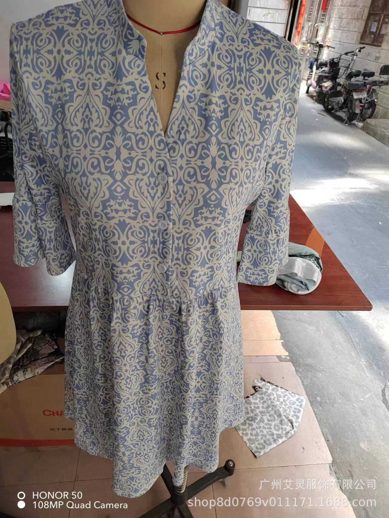 2023 새로운 여름 스타일 아마존 유럽과 미국 여성의 크로스 보더 대외 무역 v 넥 느슨한 5부 소매 프린트 드레스스토어 가기