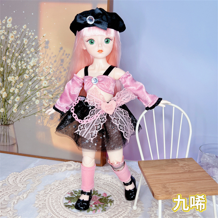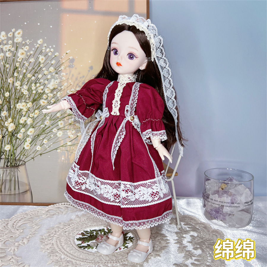 높은 색상 값 6 분 30cm 그물 빨간 인형 떨림 BJD 작은 공주 세트 소녀 생일 선물 장난감스토어 가기