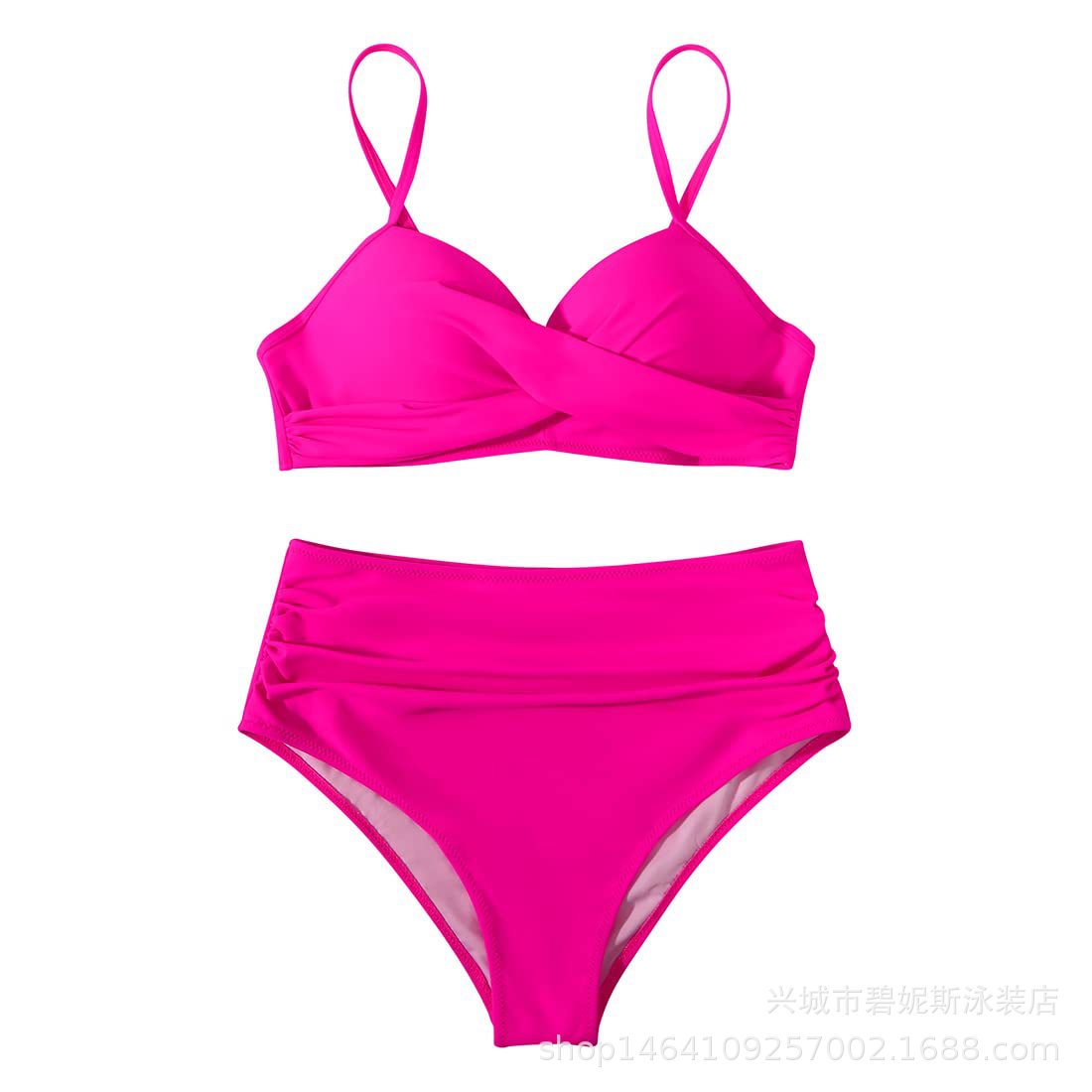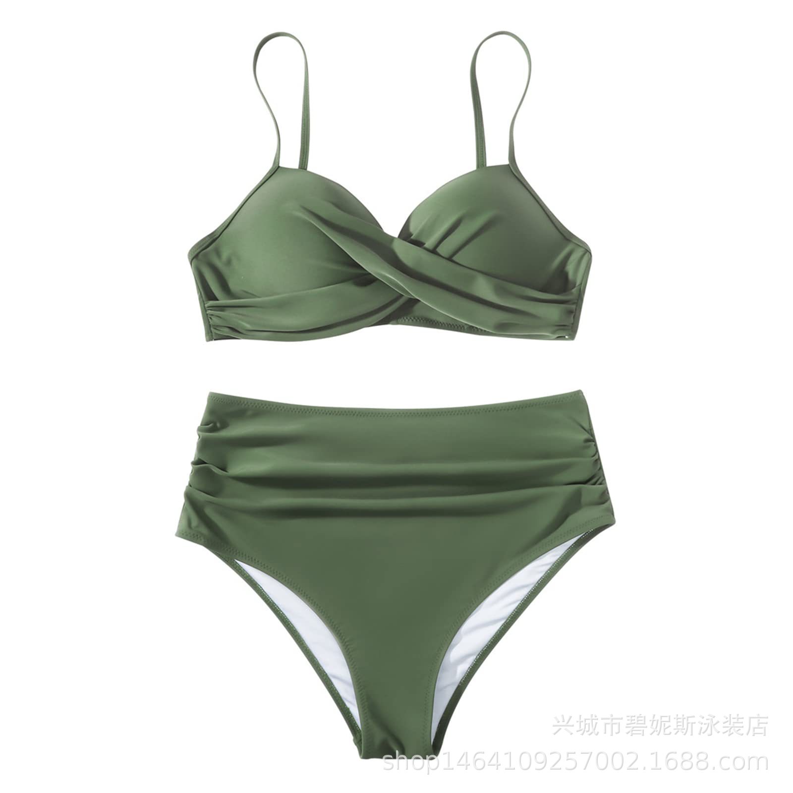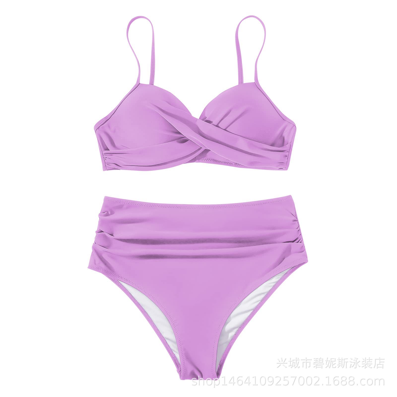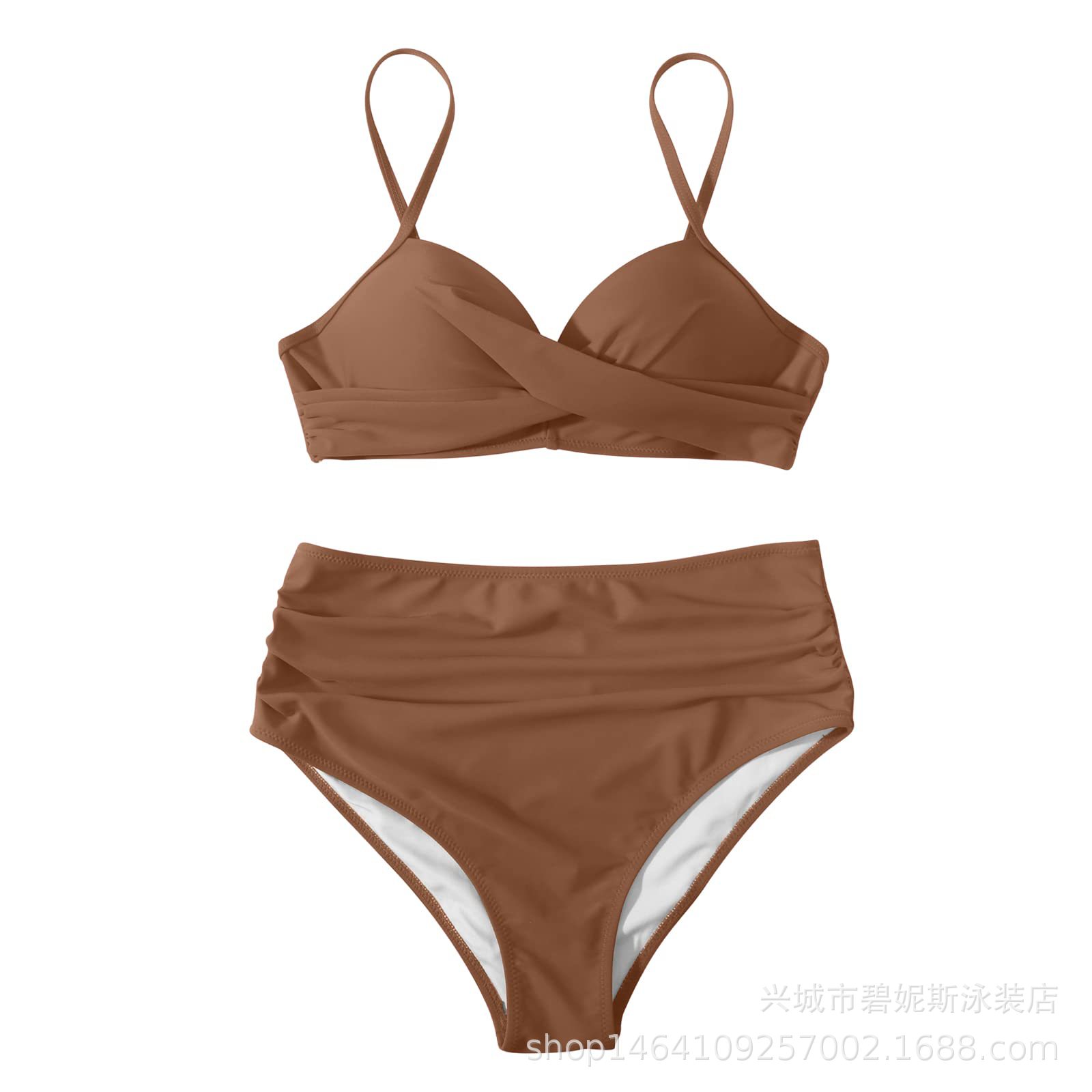 새로운 수영복 스플릿 비키니 단색 크로스 스트랩 아마존 폭발 하이 웨이스트 수영복 유럽과 미국 대외 무역 섹시스토어 가기