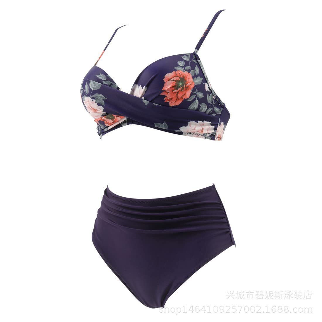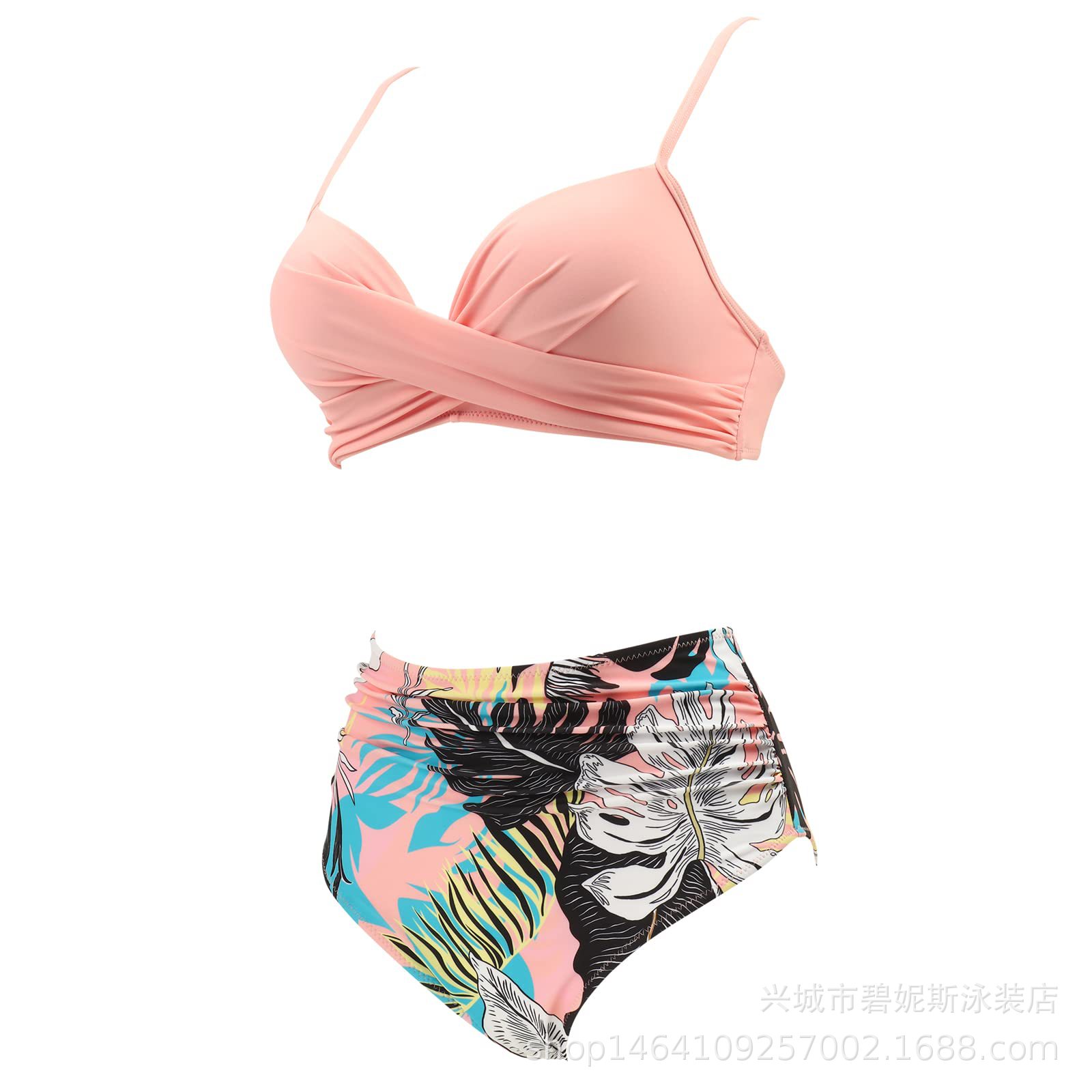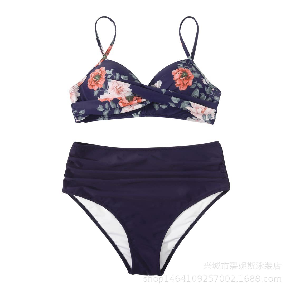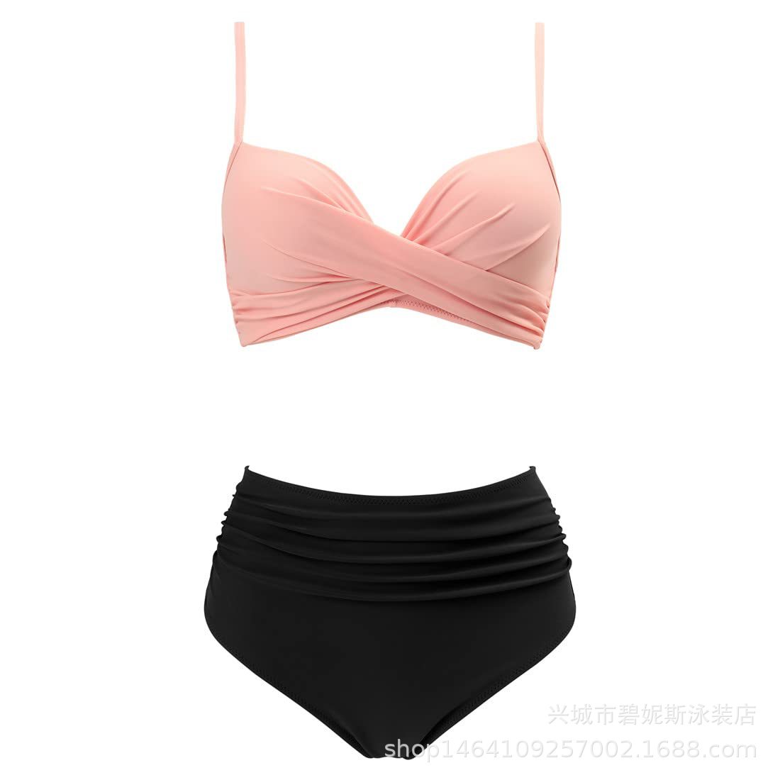 새로운 수영복 스플릿 비키니 단색 크로스 스트랩 아마존 폭발 하이 웨이스트 수영복 유럽과 미국 대외 무역 섹시스토어 가기