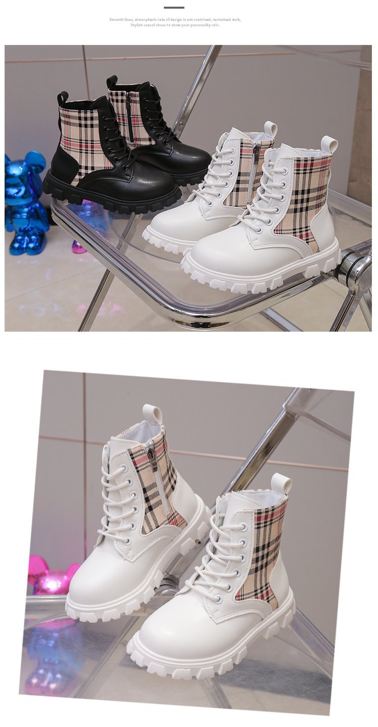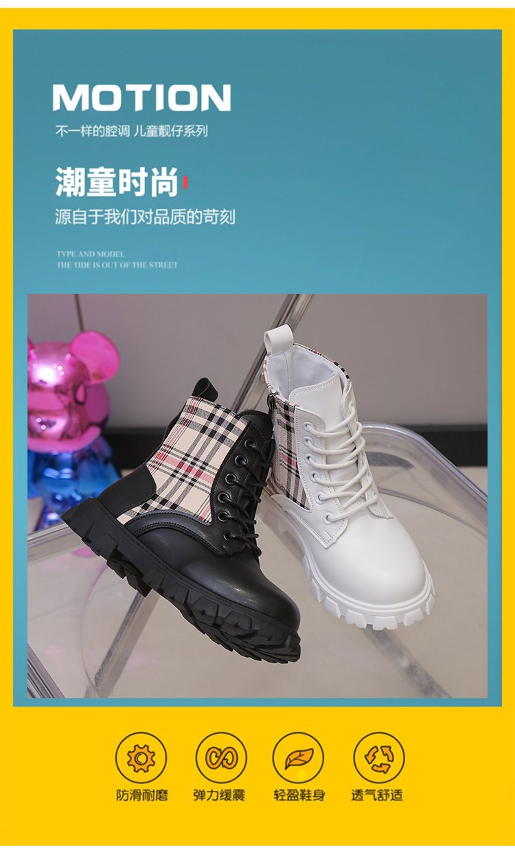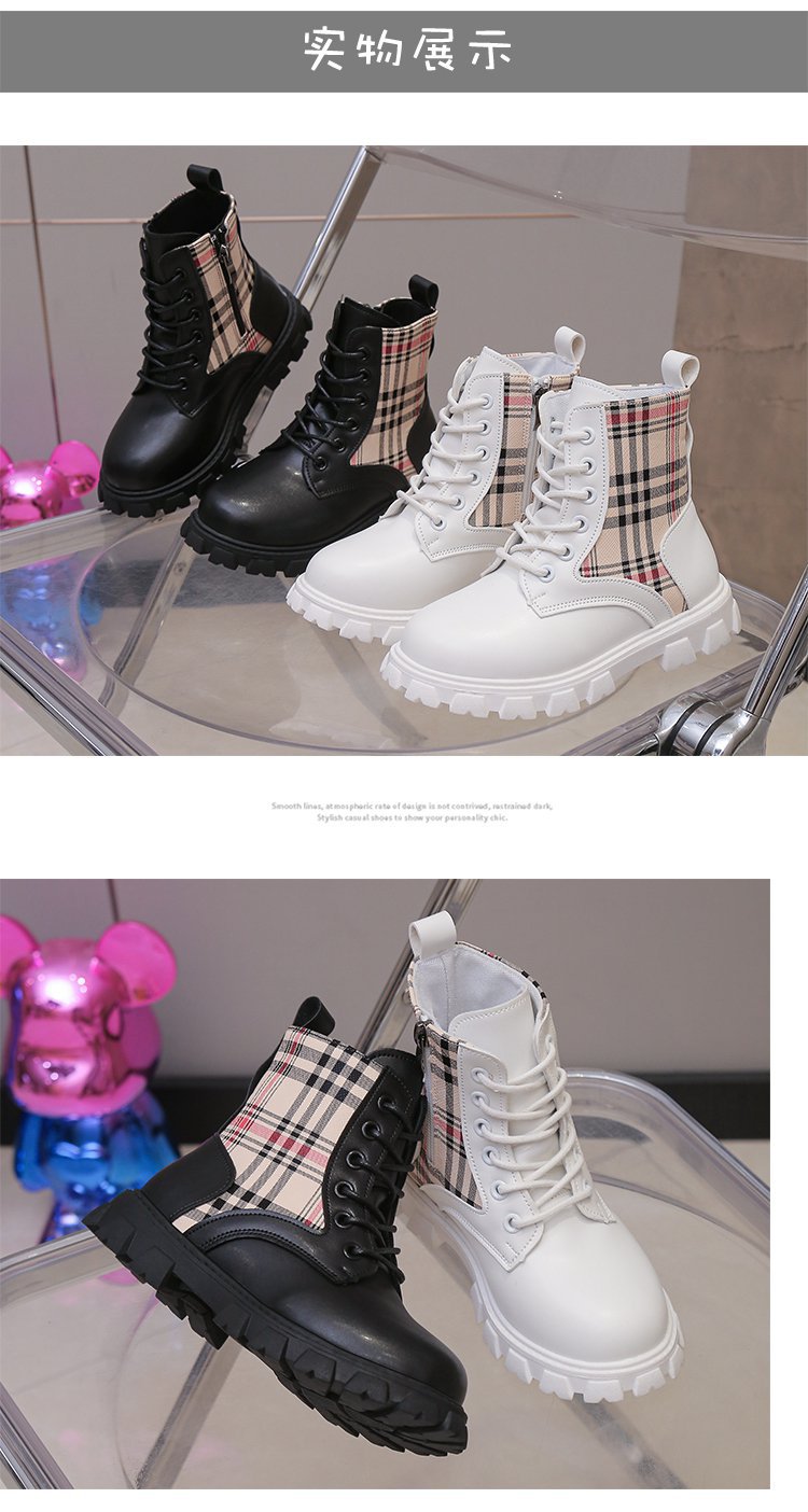 캐주얼 패션 어린이 마틴 부츠 2023 새로운 영국 스타일 미드 밴드 레이스 업 라운드 발가락 대외 무역 아기 가죽 신발스토어 가기