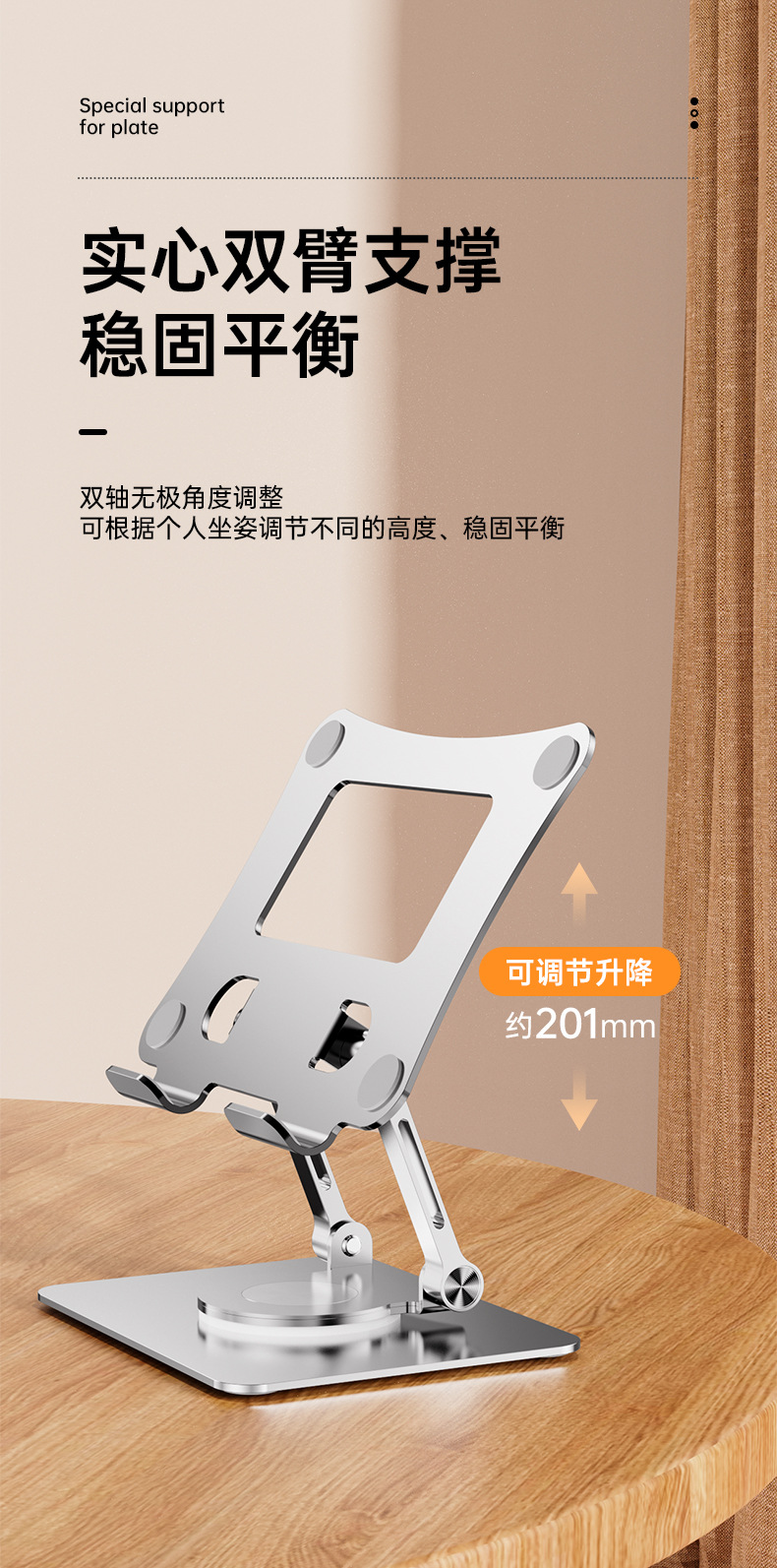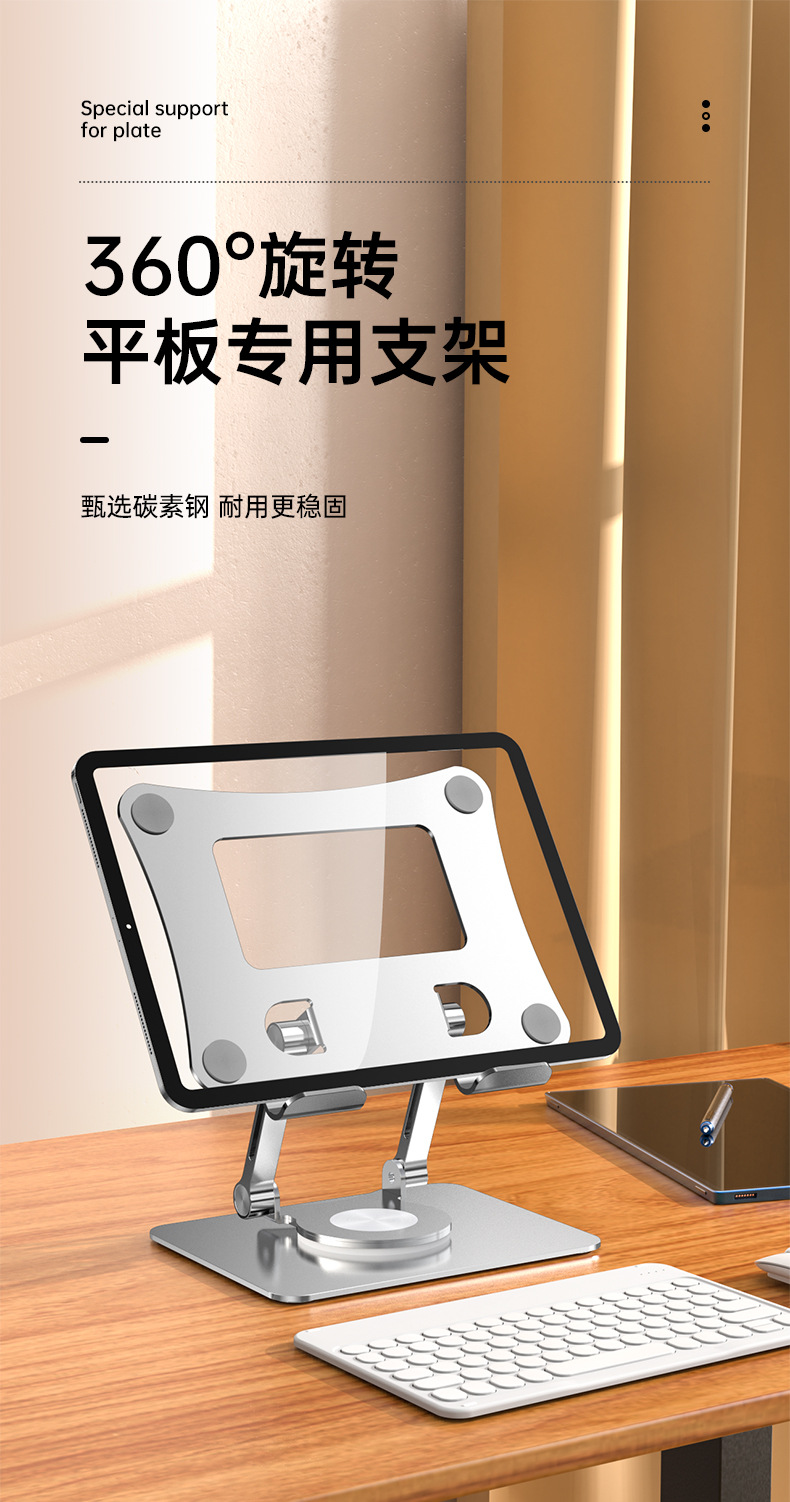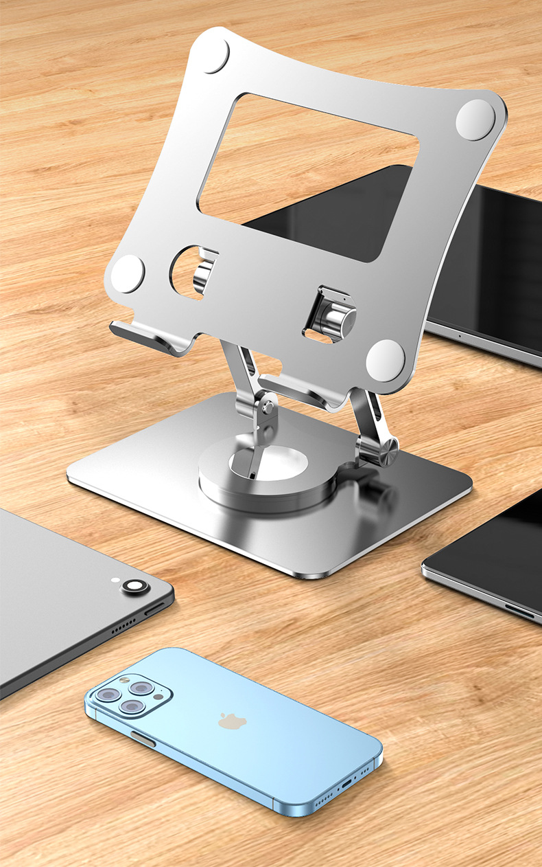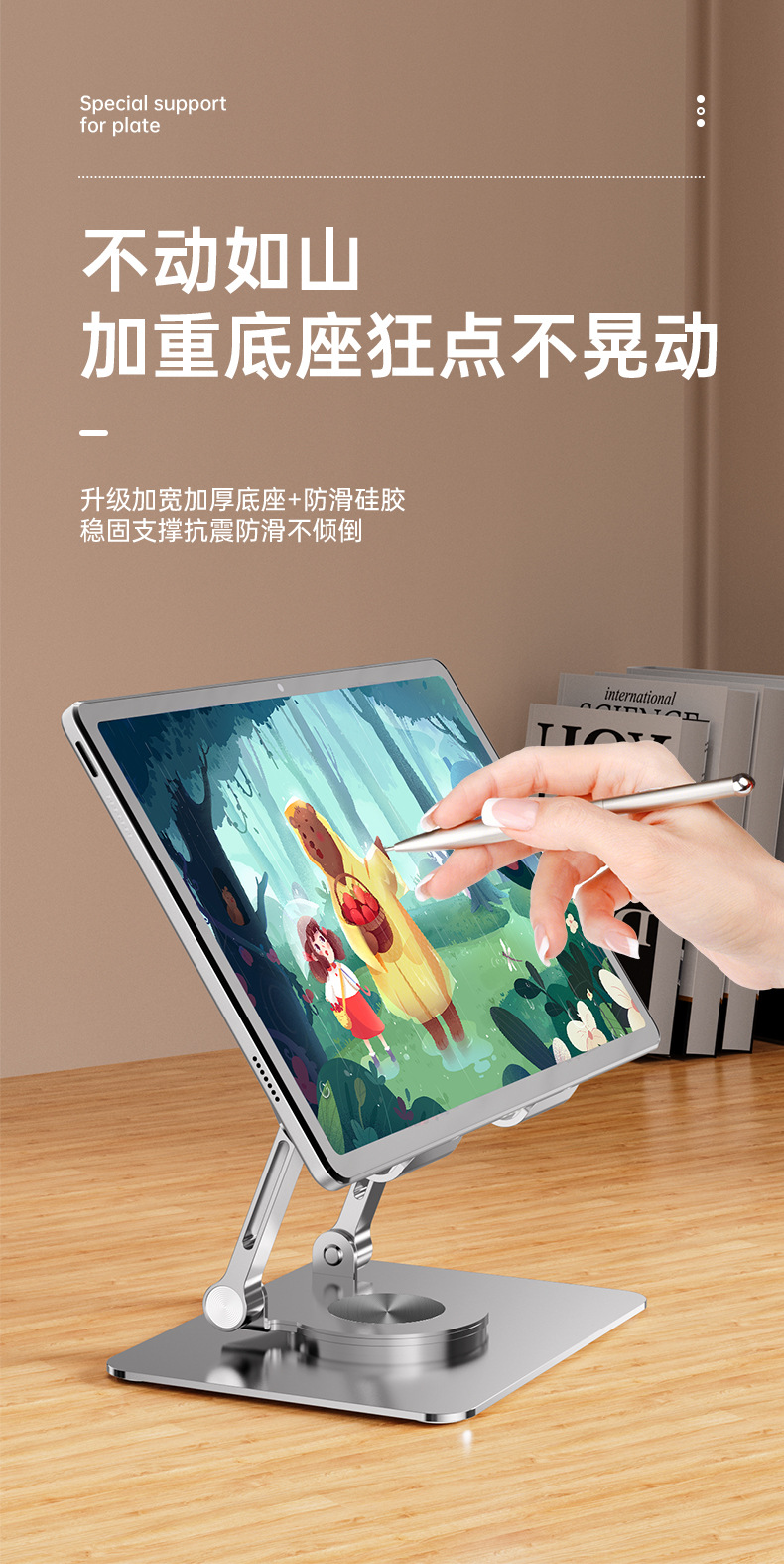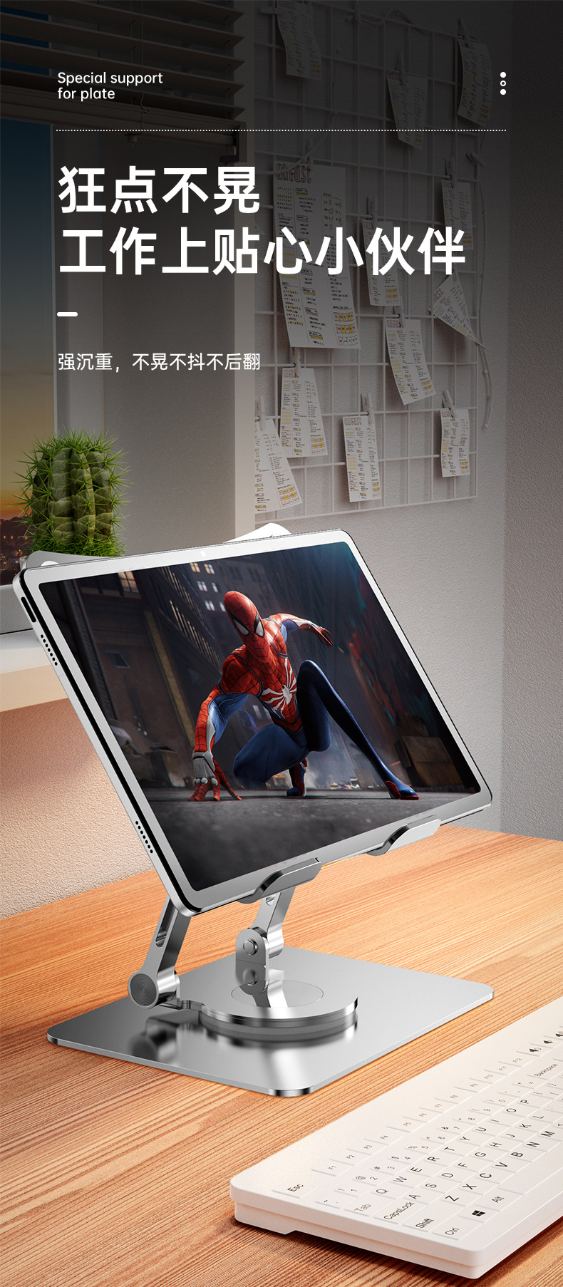 금속 평판 스탠드는 아이패드, 그림 그리기 학습기, 데스크탑 게임에 적합합니다. 360도 회전 가능합니다. ° 회전식 태블릿 스탠드