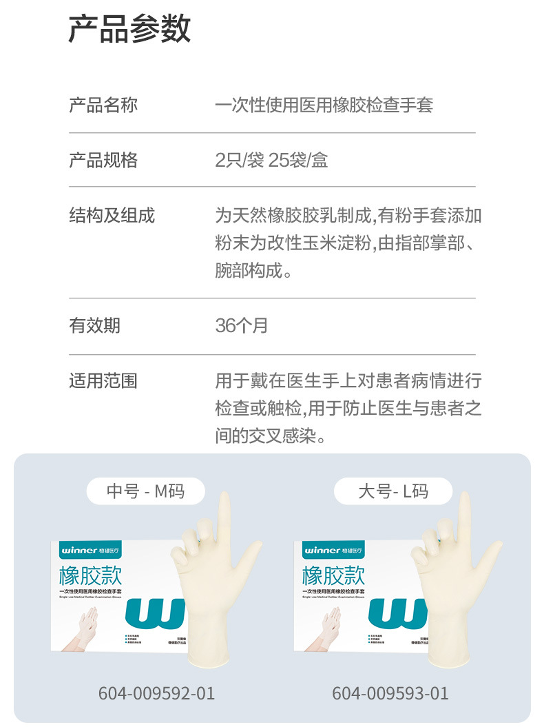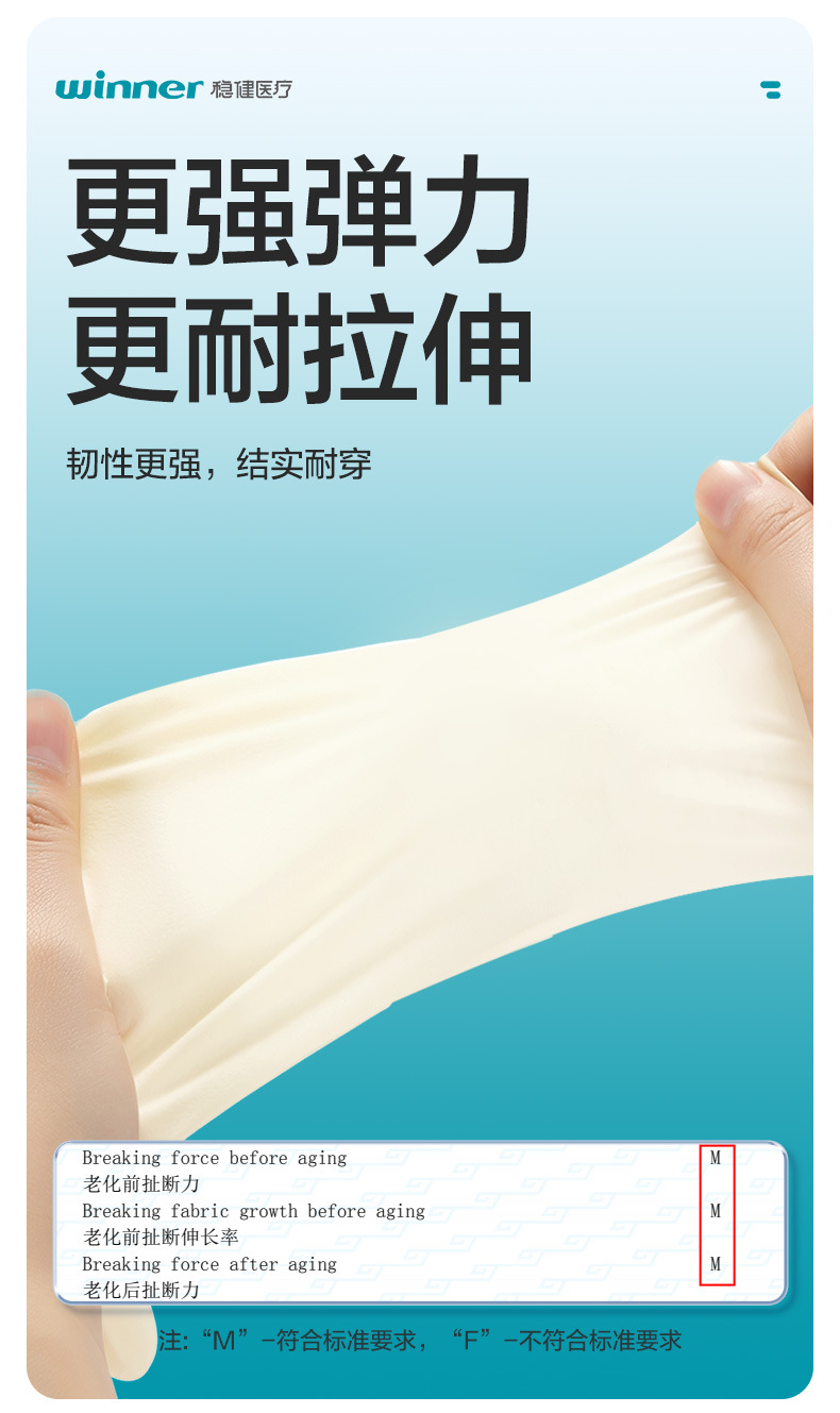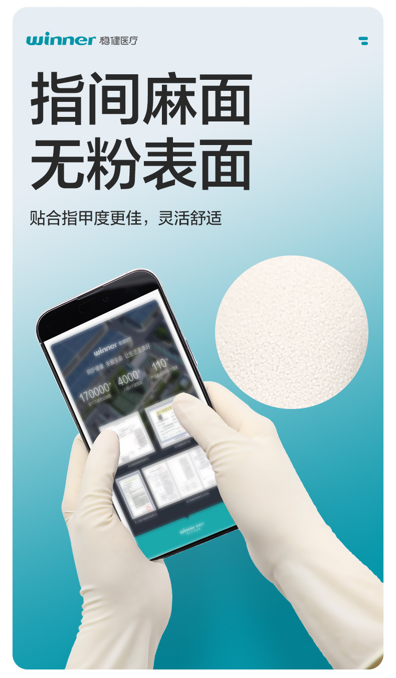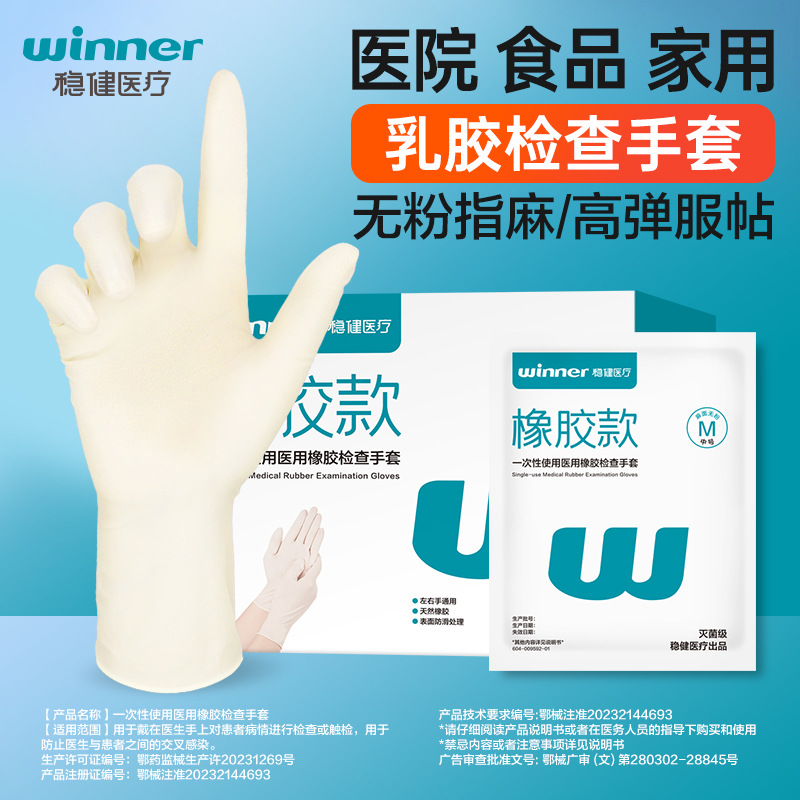우승자 강력한 의료 멸균 고무 검사 장갑 분말 프리 국수 25 봉지/상자 독립 포장스토어 가기
