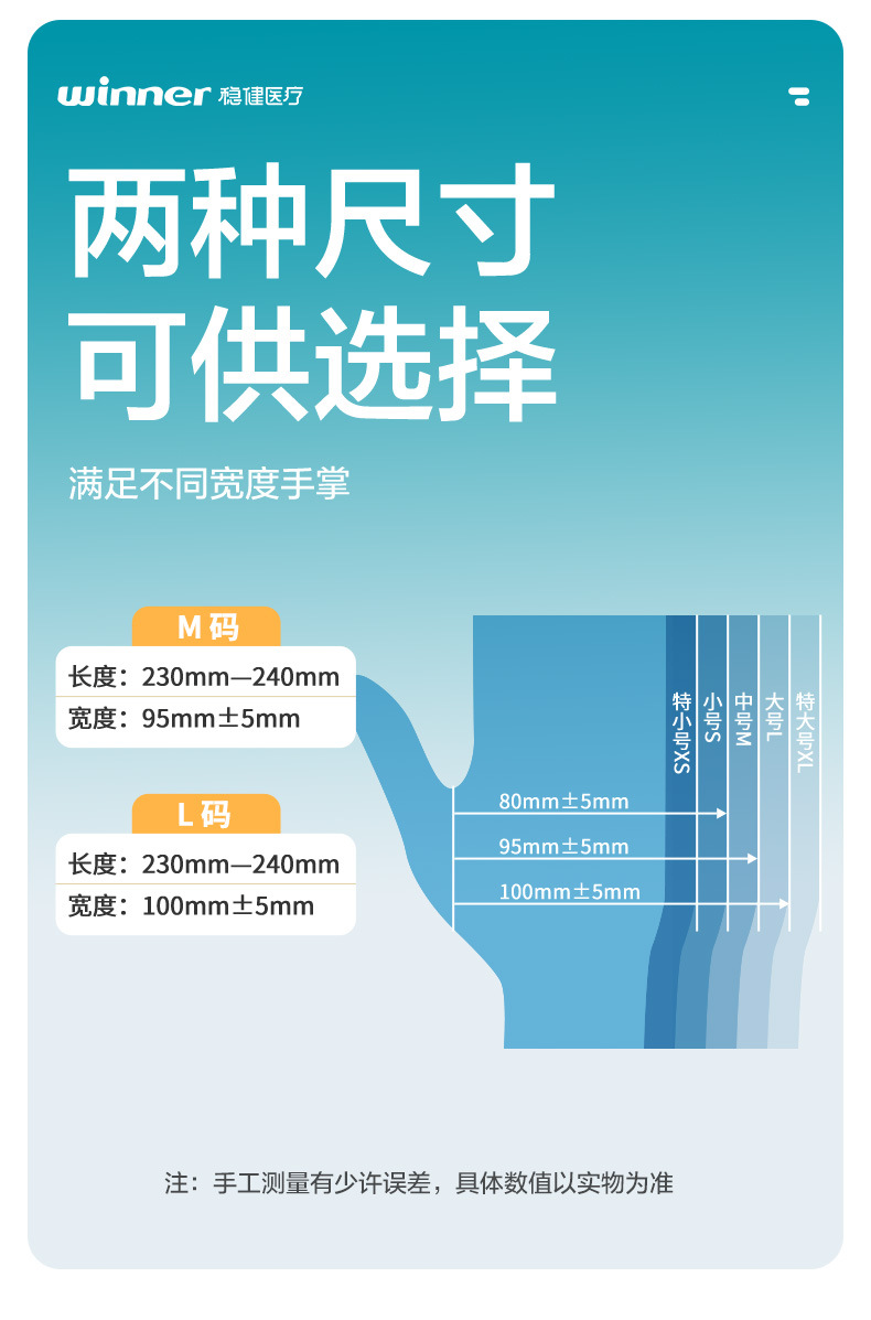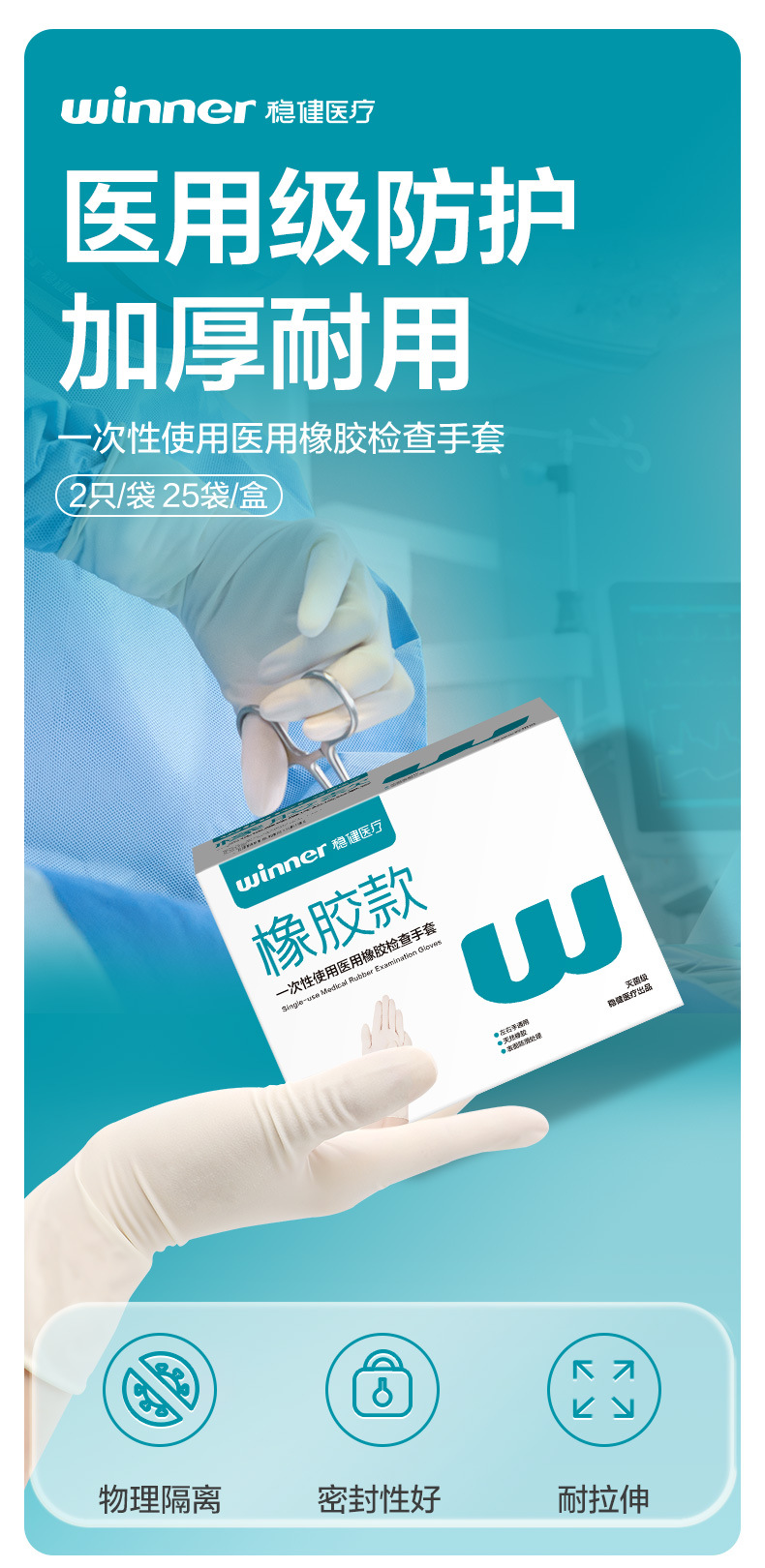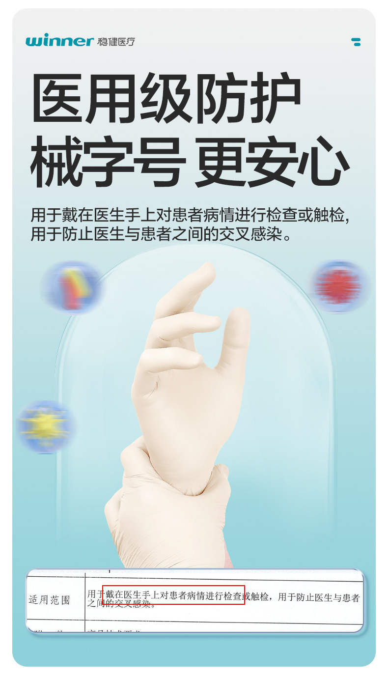우승자 강력한 의료 멸균 고무 검사 장갑 분말 프리 국수 25 봉지/상자 독립 포장스토어 가기