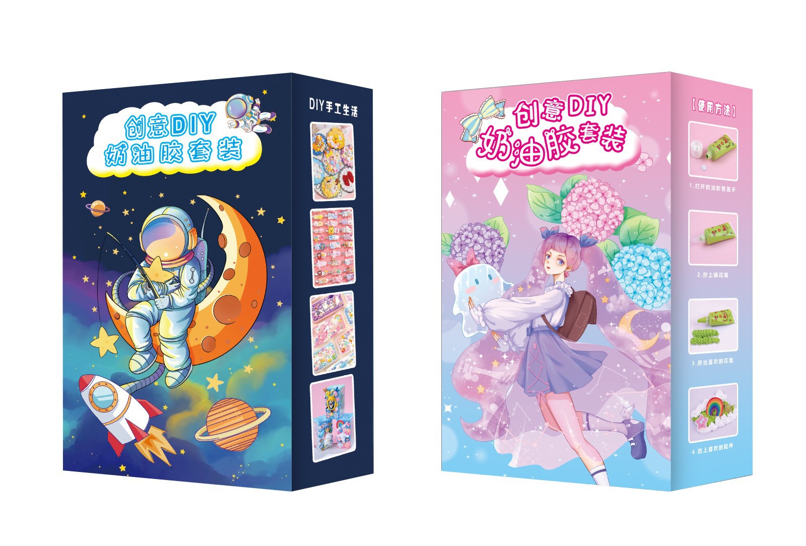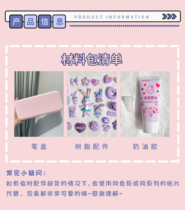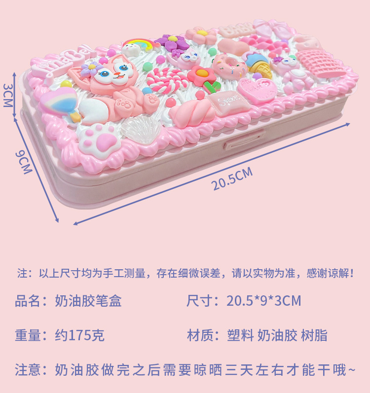 奶油胶文具盒内含:两支奶油胶,2个裱花嘴,12个配件,一包珠子,一个铲子或镊子(2款随机)