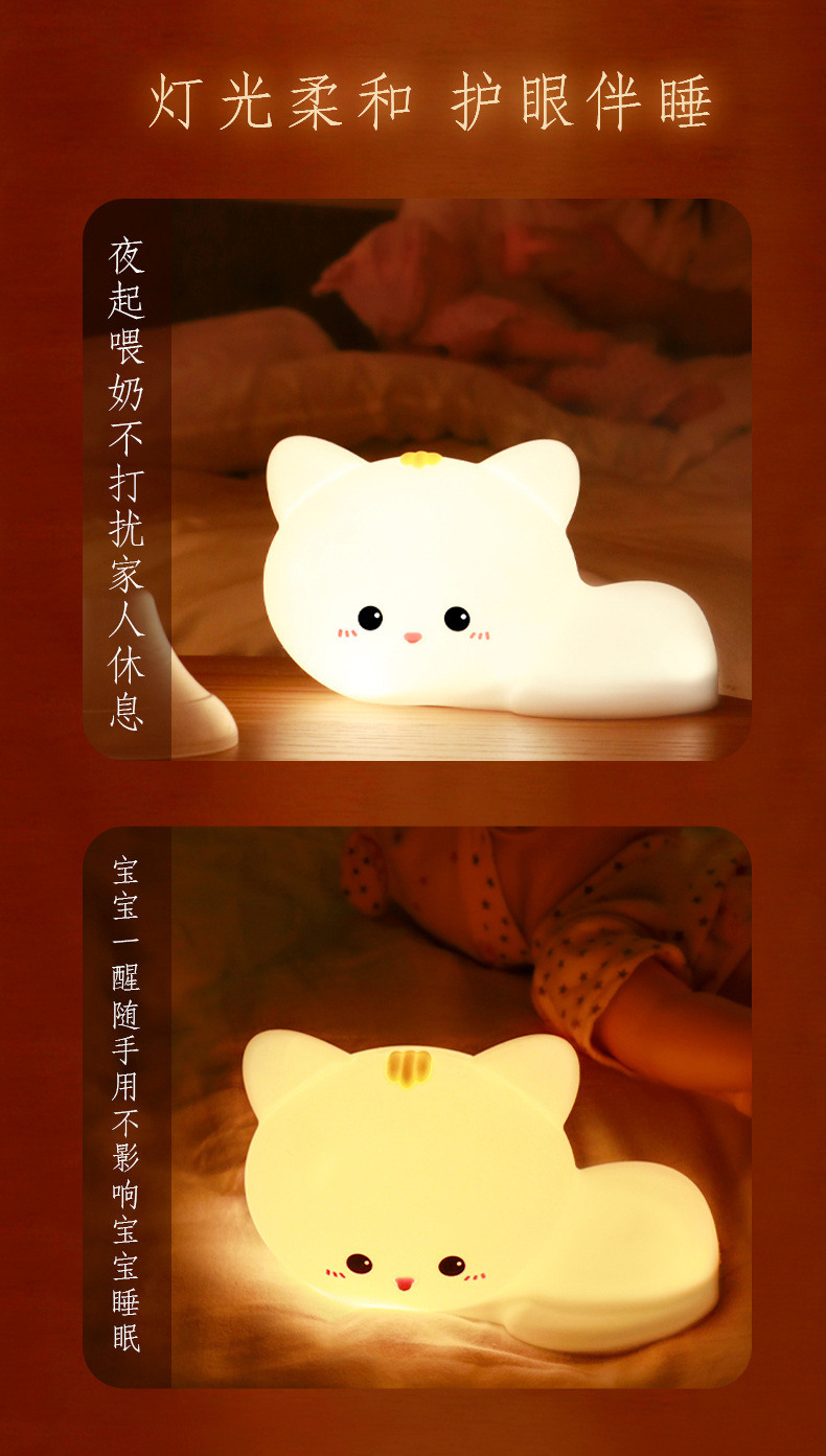 달링 야옹 LED 실리콘 야간 조명 USB 충전 분위기 빛 아기 수유 동반자 수면 박수 빛 귀여운 사랑 고양이스토어 가기