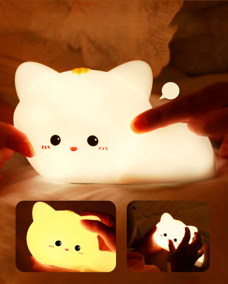 달링 야옹 LED 실리콘 야간 조명 USB 충전 분위기 빛 아기 수유 동반자 수면 박수 빛 귀여운 사랑 고양이