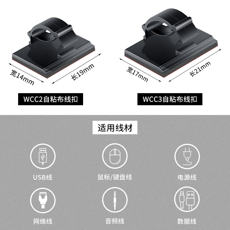 WCC2 와이어 클립 접착식 운전 기록기 배선 클립 전선 정리 나일론 고정 클립 플라스틱 클립