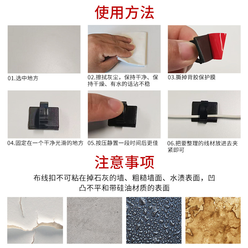 WCC2 와이어 클립 접착식 운전 기록기 배선 클립 전선 정리 나일론 고정 클립 플라스틱 클립스토어 가기