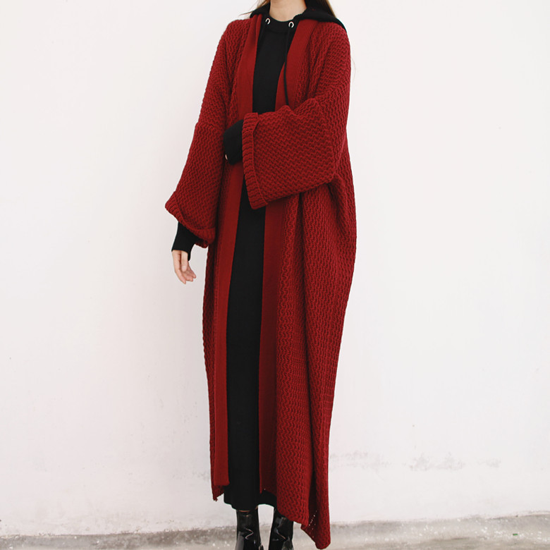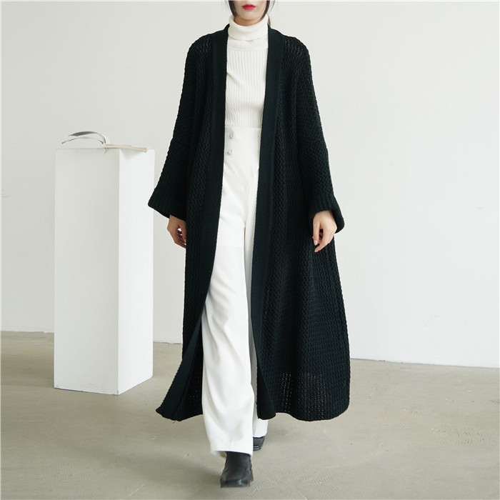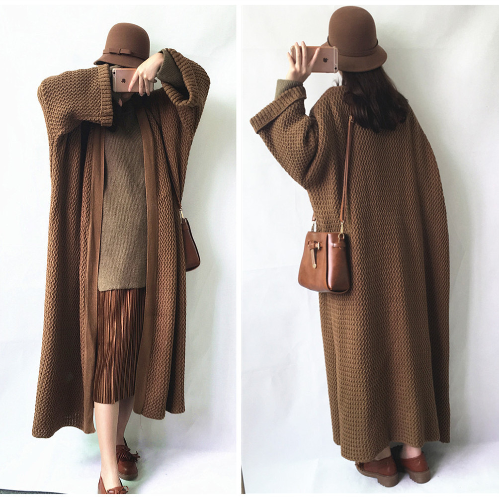 가을과 겨울 새로운 느슨한 롱 니트 카디건 코트 유럽과 미국의 게으른 스타일 두꺼운 바늘 여성을위한 우아한 모든 매치 스웨터스토어 가기