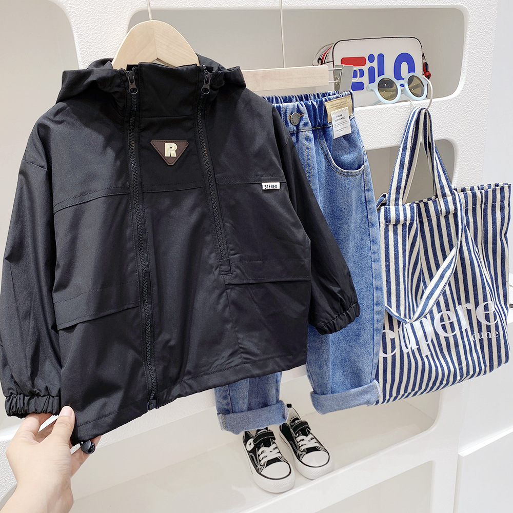 남아 코트 폭행 의류 봄과 가을 야외 대형 아동 후드 2023 새 아동복 봄과 가을 패션 브랜드 도매