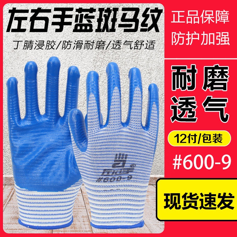 공장 도매 왼손 및 오른손 600-9 얼룩말 패턴 니트릴 고무 디핑 내마모성 미끄럼 방지 내유성 자동차 수리기 수리 남성용 장갑스토어 가기