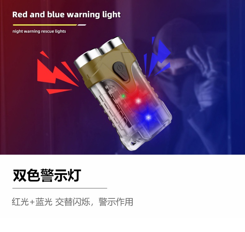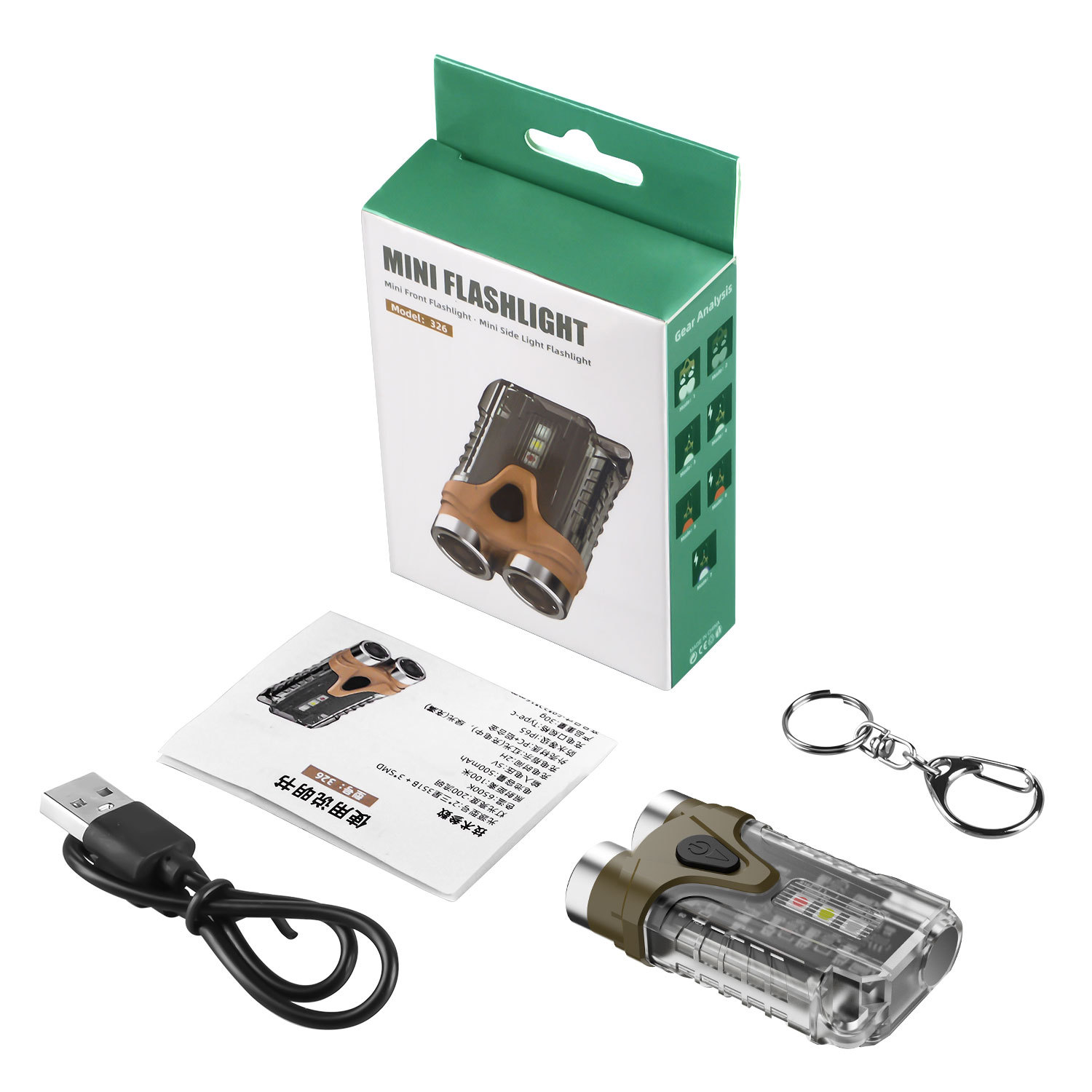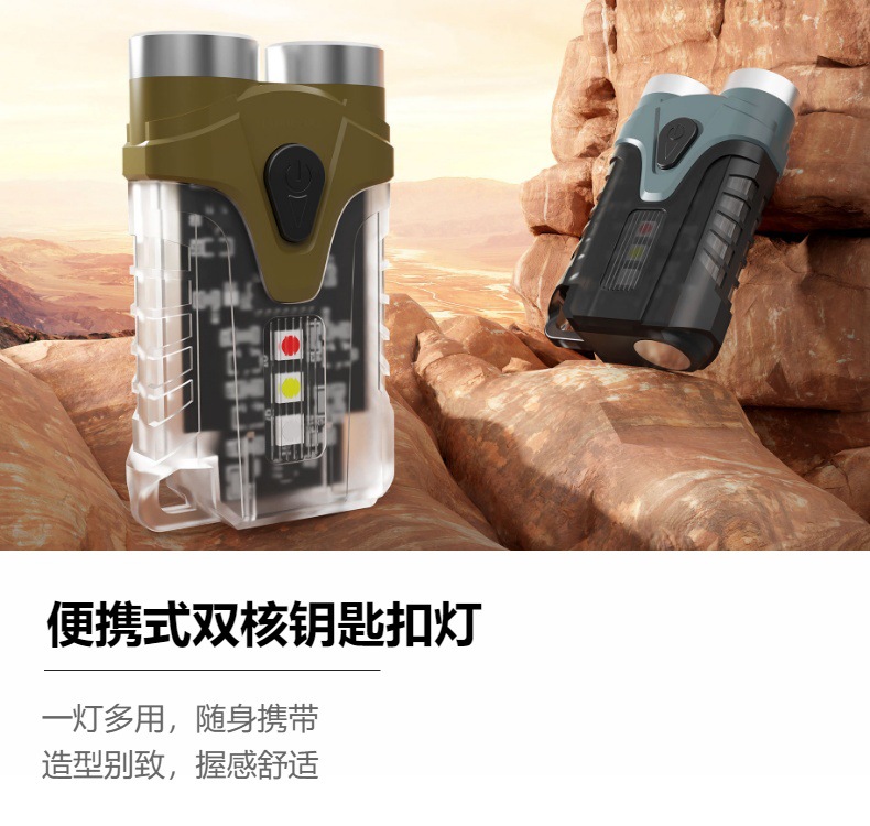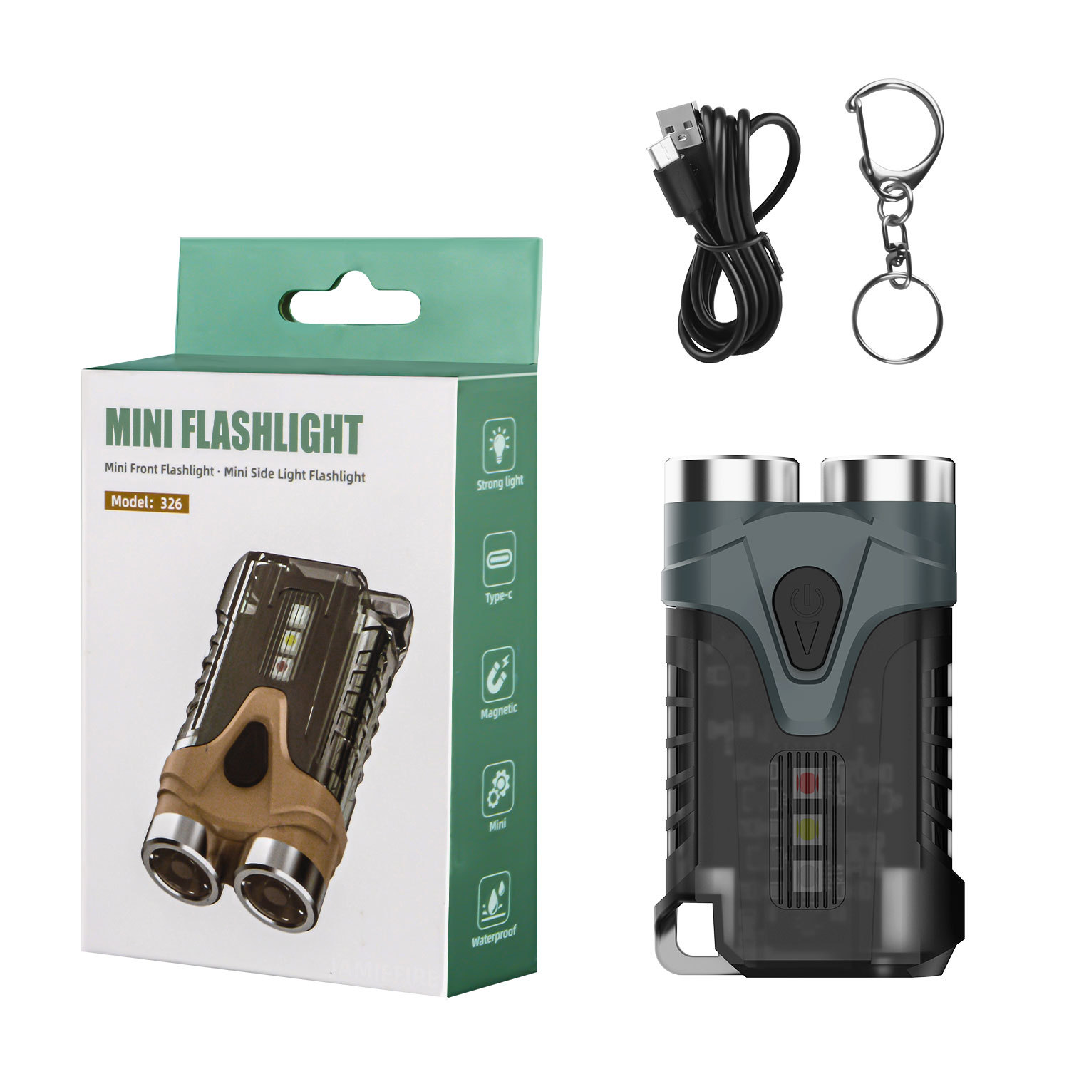 크로스보더 핫세일 듀얼코어 Type-C 충전식 미니 손전등 다기능 키체인 라이트 휴대용 작업등