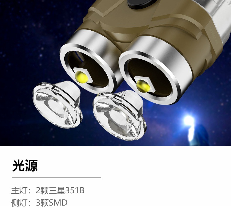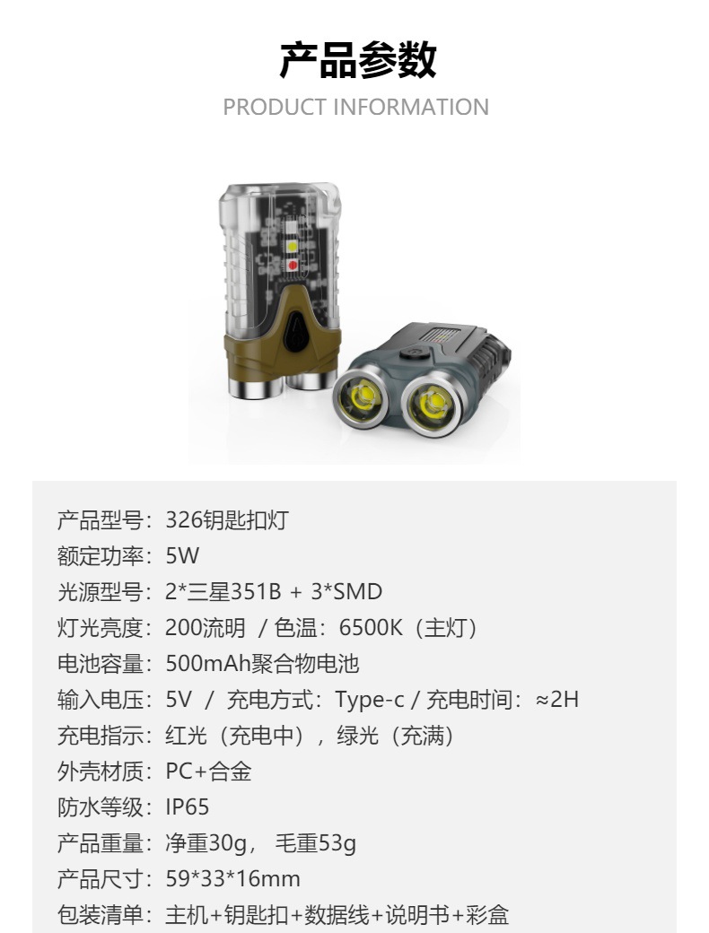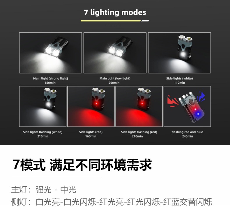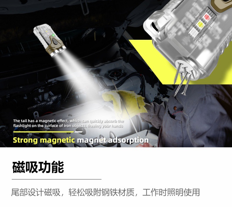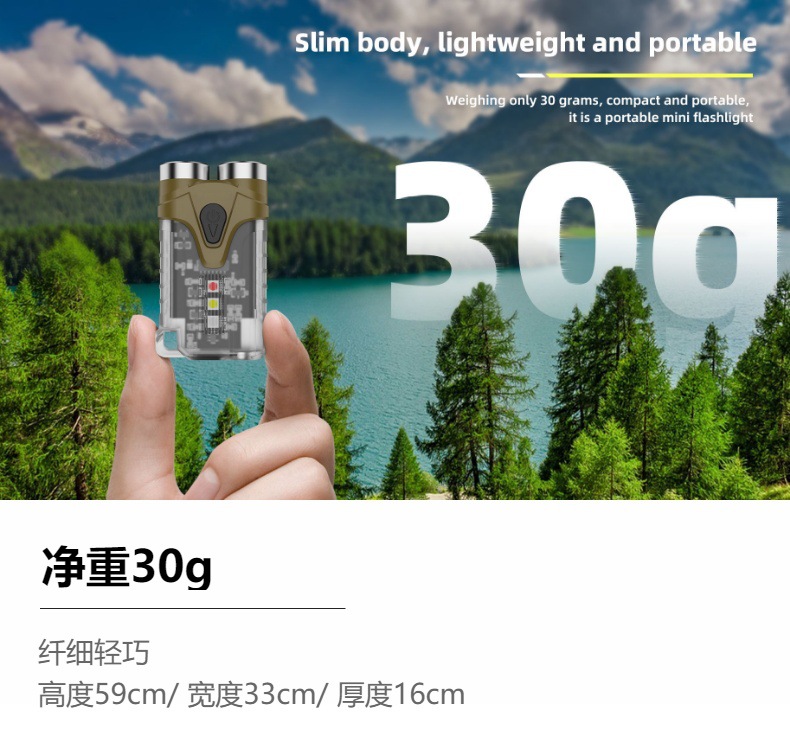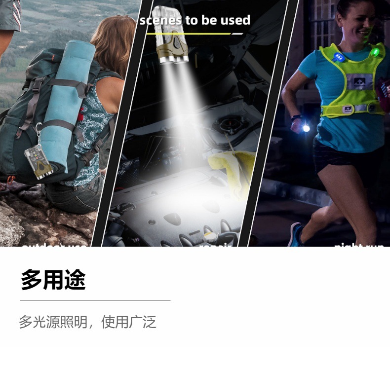 크로스보더 핫세일 듀얼코어 Type-C 충전식 미니 손전등 다기능 키체인 라이트 휴대용 작업등