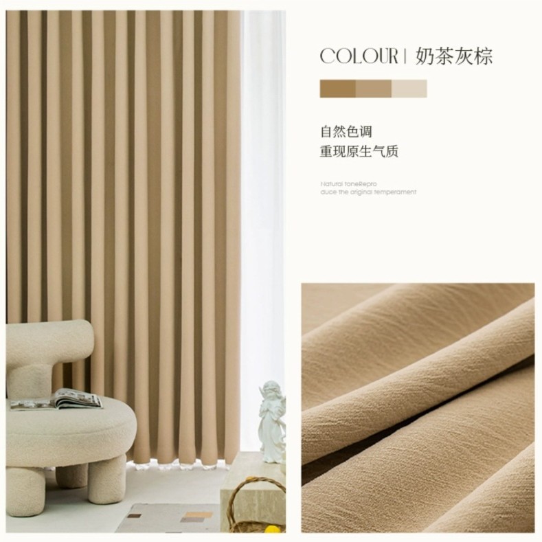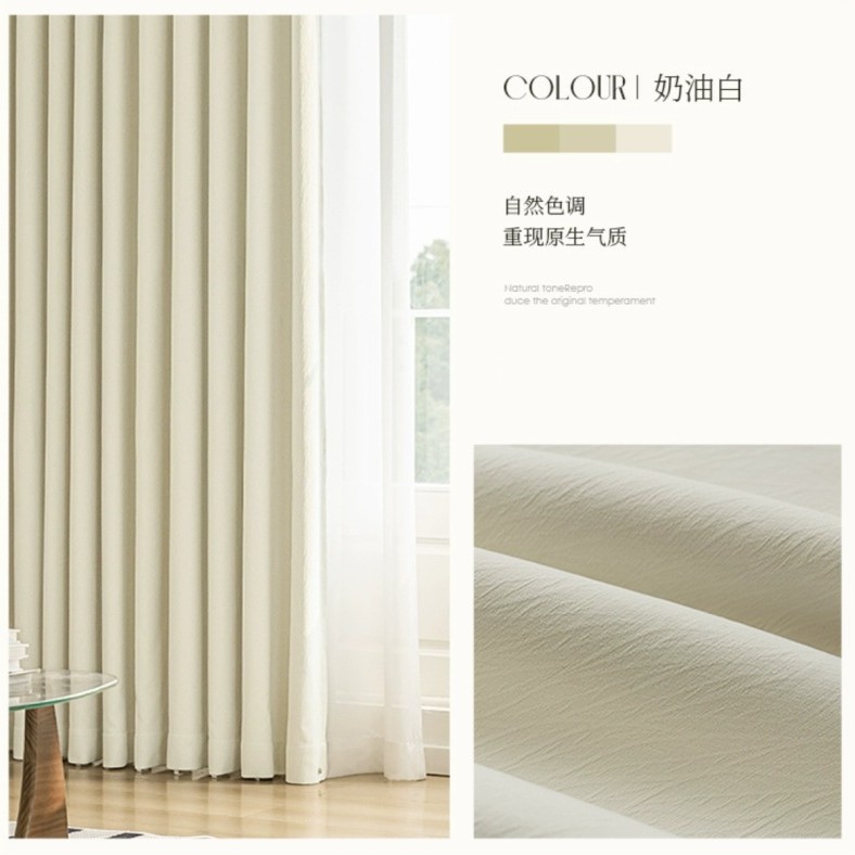새로운 두꺼운 오리지널 치즈 캐시미어 크림 스타일 셔닐 커튼 완제품, 높은 차광성, 거실 및 침실용, 1400g스토어 가기