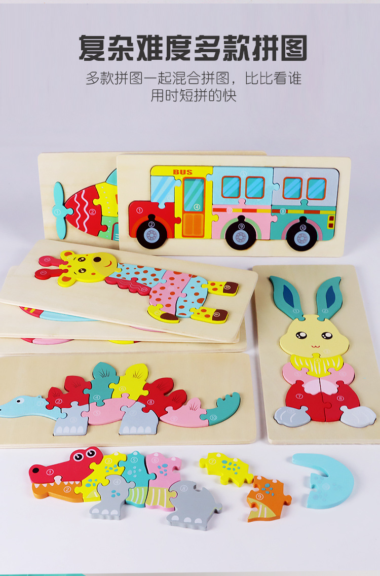 어린이 나무 조기 교육 3 차원 버클 직소 퍼즐 빌딩 블록 동물 교통인지 직소 퍼즐 아기 교육 개발 장난감스토어 가기