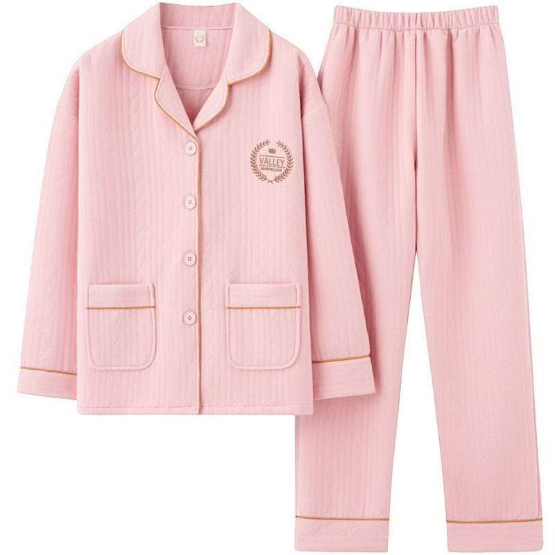 여자의 100 면 잠옷 여자의 가을과 겨울 두꺼운 따뜻한 3 층 공기 면 잠옷 가정 옷 세트