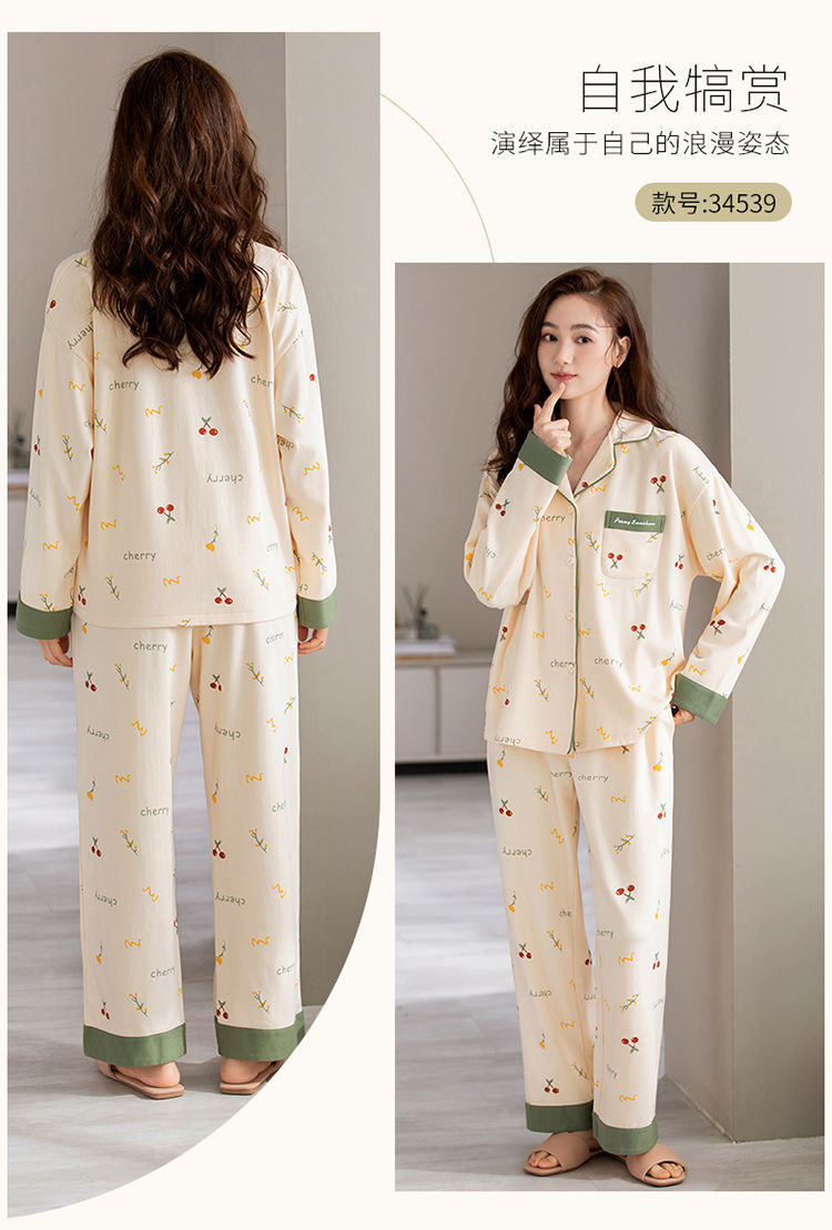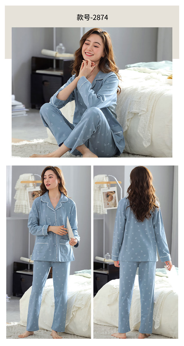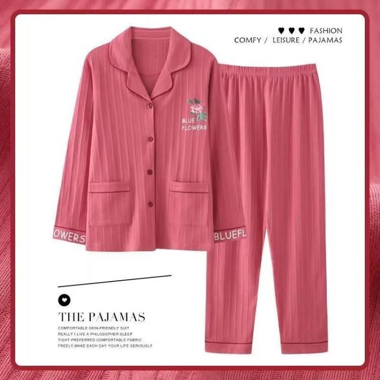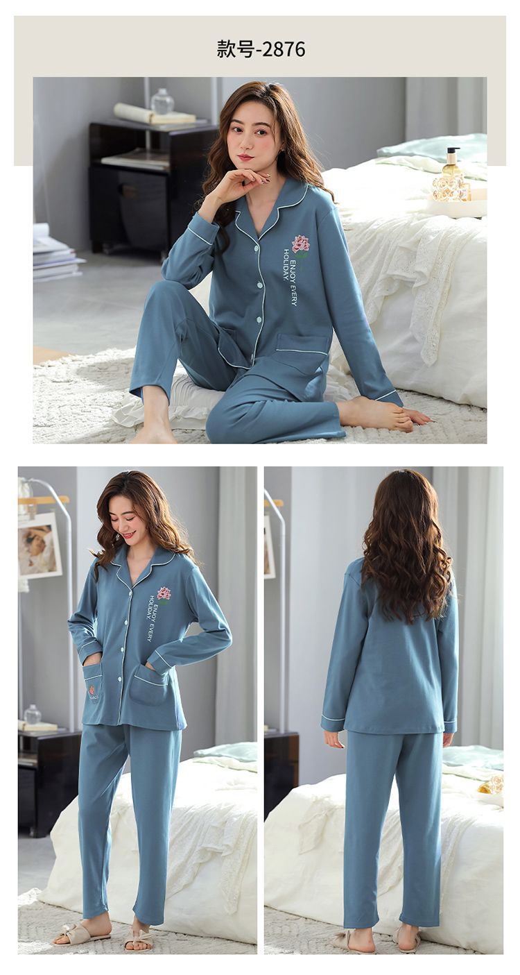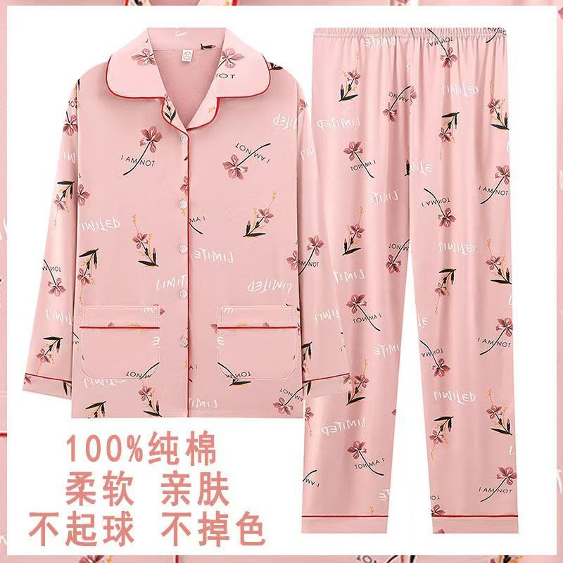 100% 면 잠옷 여자의 봄과 가을 긴팔 플러스 사이즈 가정 옷 겨울 면 문 옷 세트 여름스토어 가기