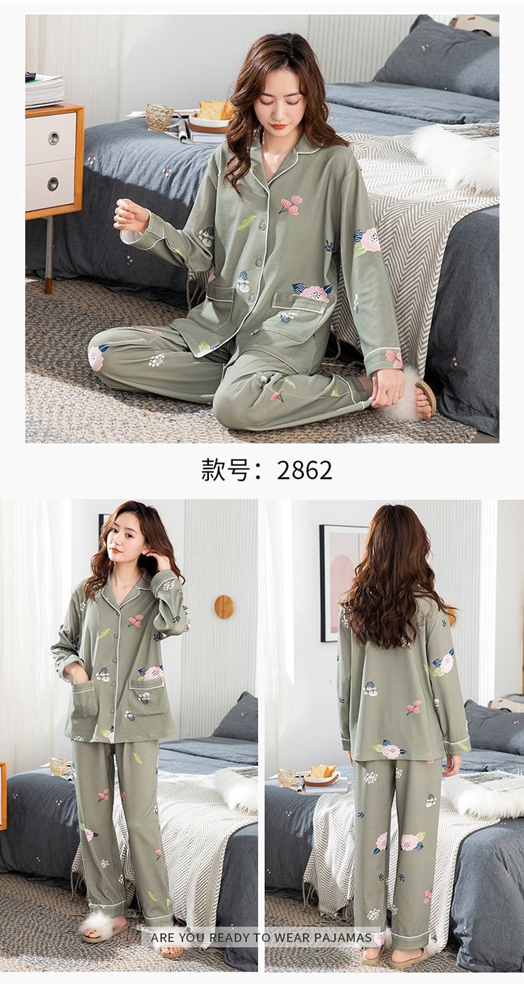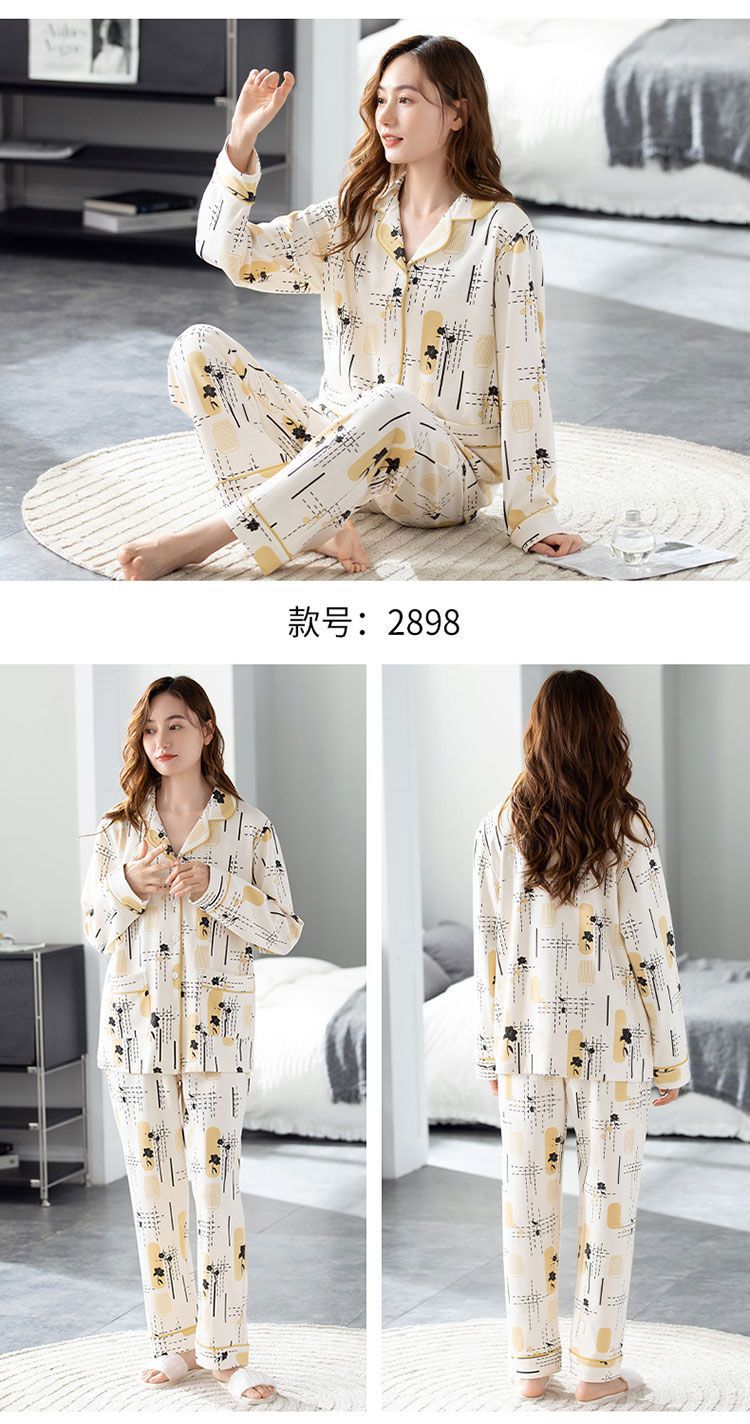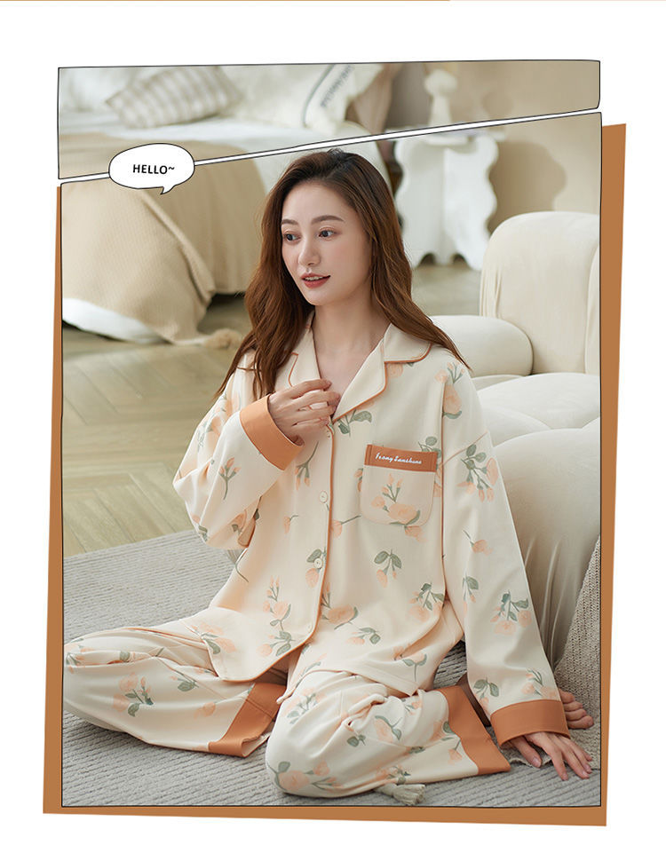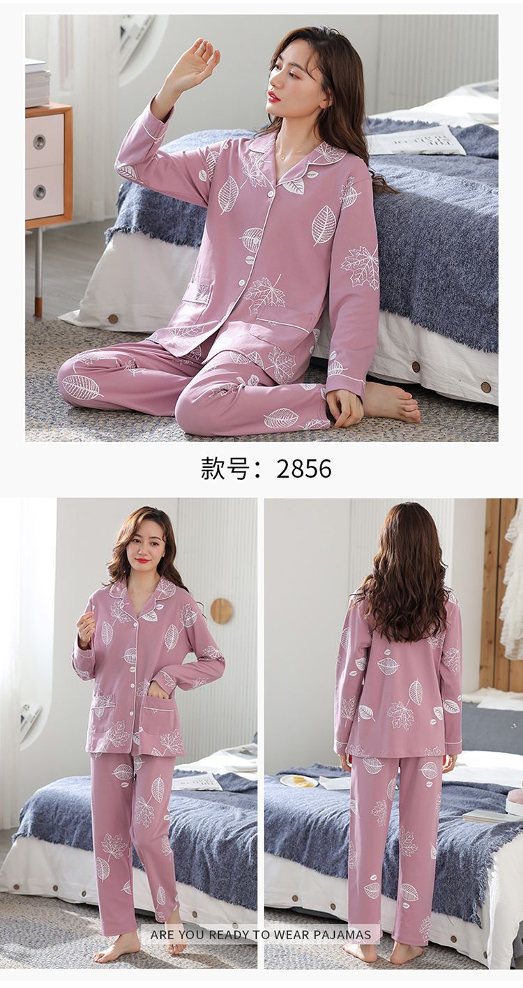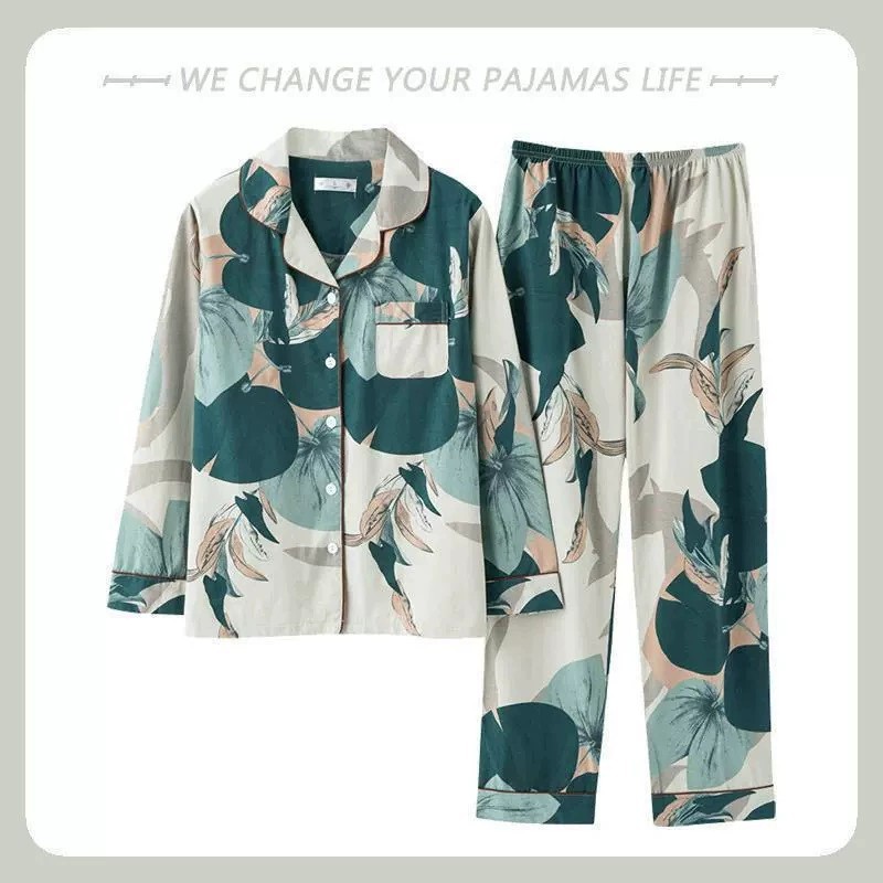 100% 면 잠옷 여자의 봄과 가을 긴팔 플러스 사이즈 가정 옷 겨울 면 문 옷 세트 여름스토어 가기