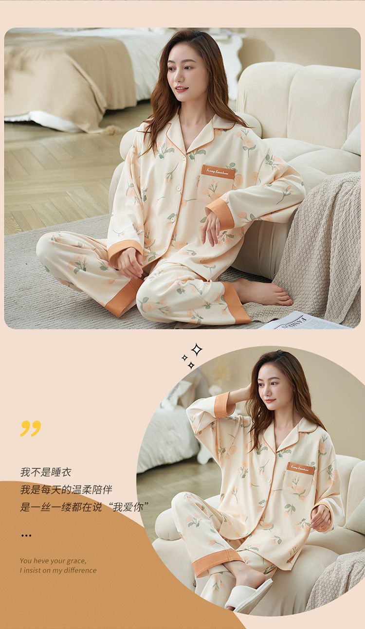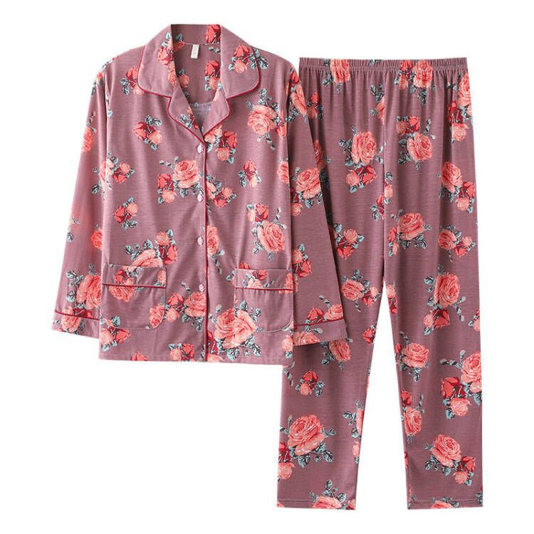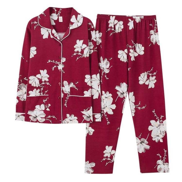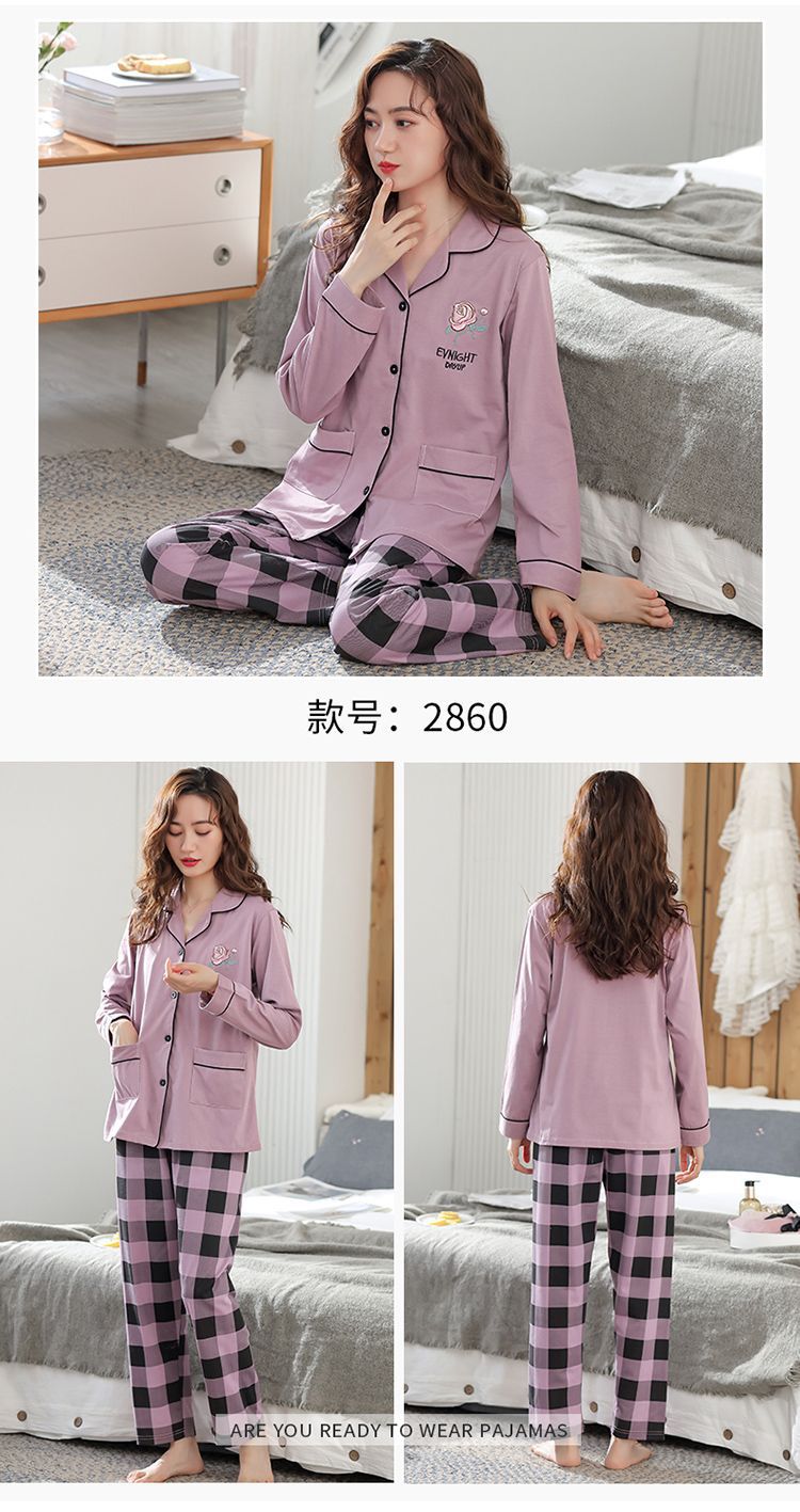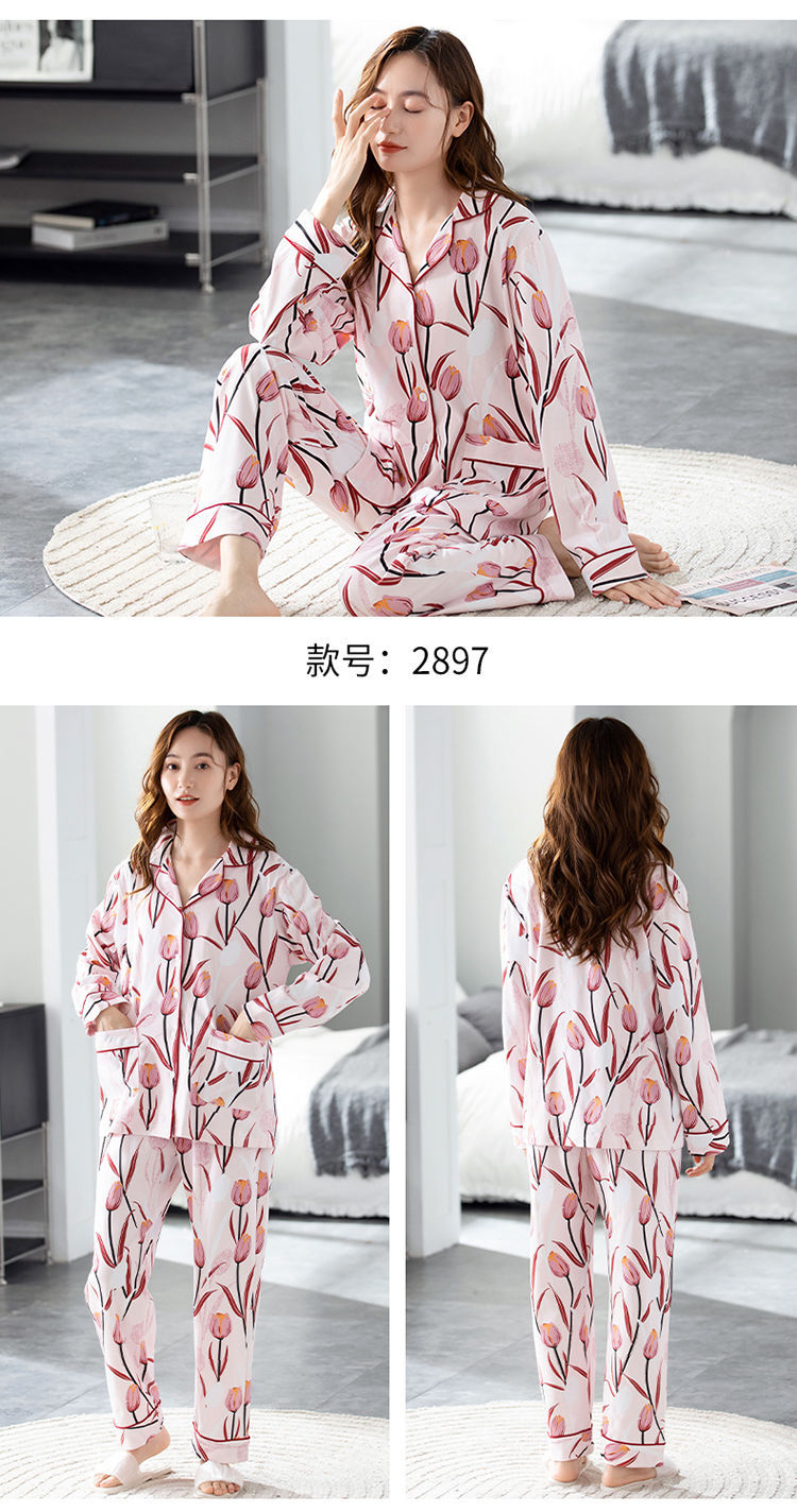 100% 면 잠옷 여자의 봄과 가을 긴팔 플러스 사이즈 가정 옷 겨울 면 문 옷 세트 여름스토어 가기