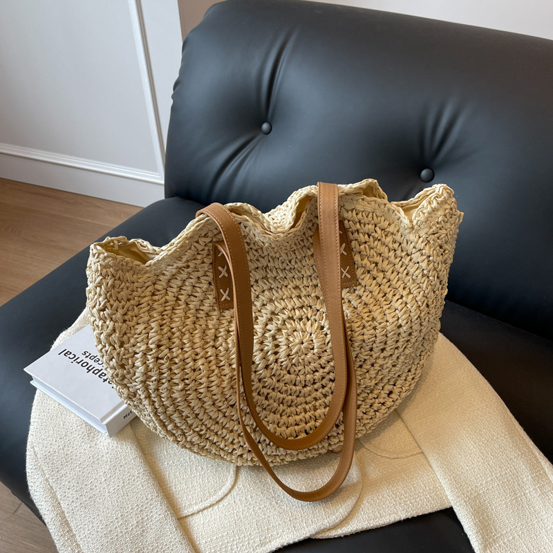 Dali 같은 스타일의 여행 밀짚 가방, 패셔너블하고 심플하며 캐주얼한 여성용 숄더백, 해변 휴가 가방, 대용량 토트백스토어 가기