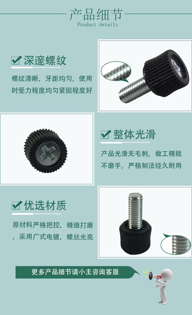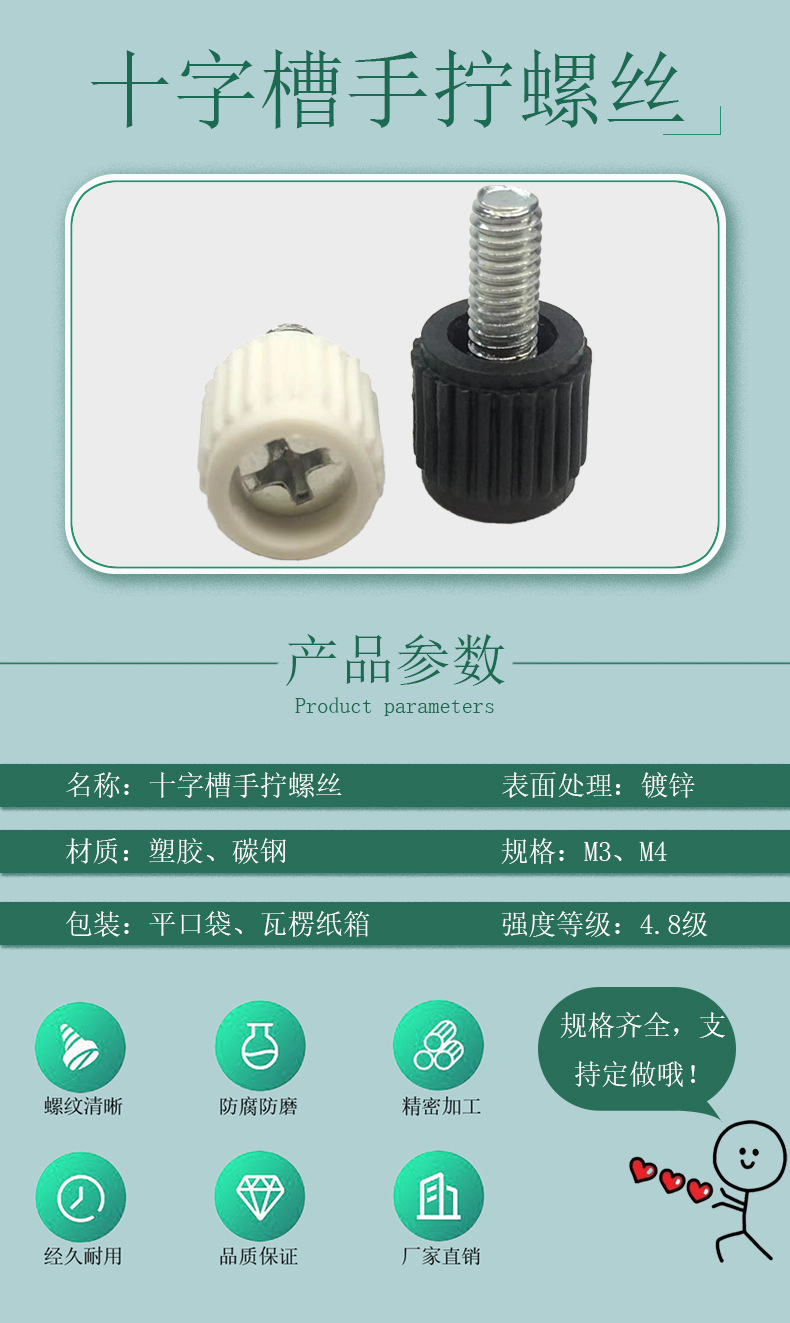 소스 제조 업체 크로스 그루브 플라스틱 헤드 핸드 나사 핸들 핸드 스크류 컴퓨터 섀시 조정 나사스토어 가기