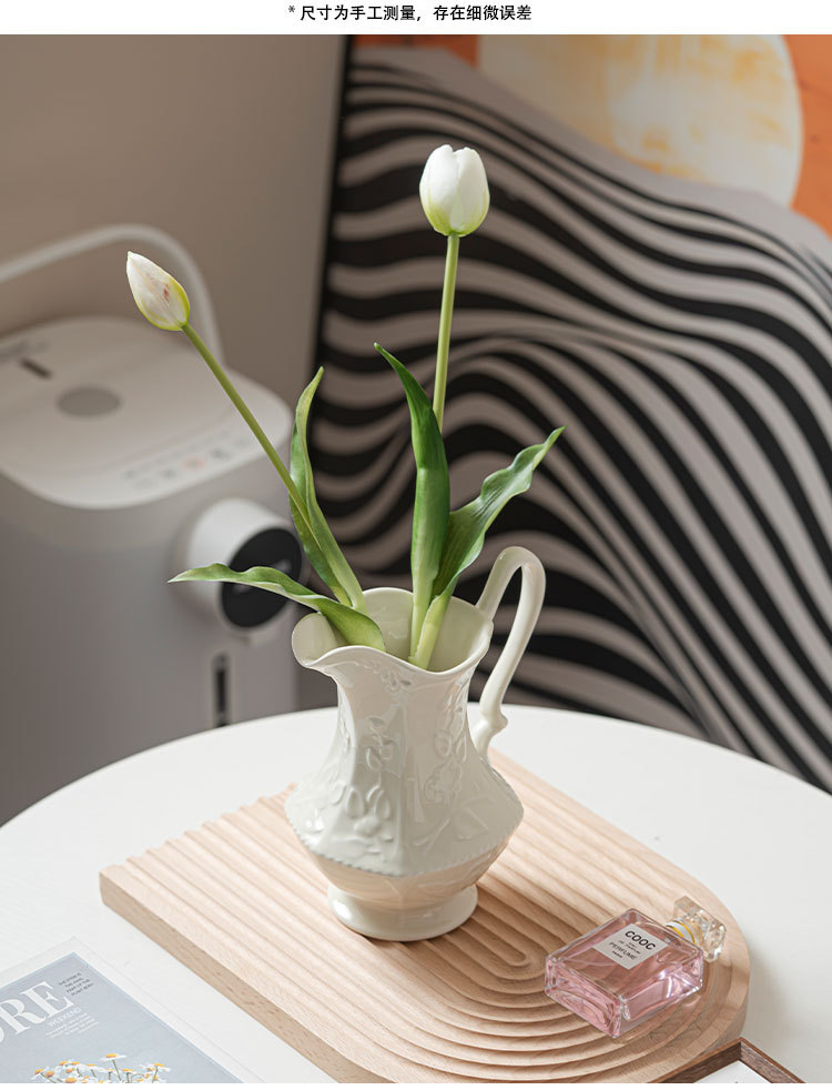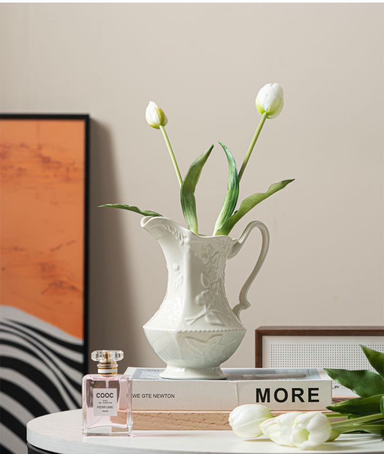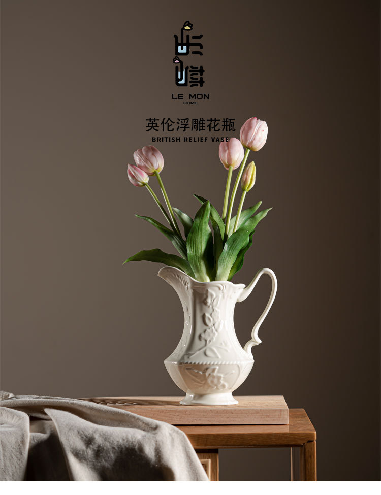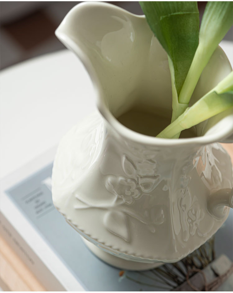 르 멩 크리 에이 티브 세라믹 꽃병 아마존 대외 무역 홈 거실 꽃 배열 호텔 부드러운 장식 크림 바람 장식품