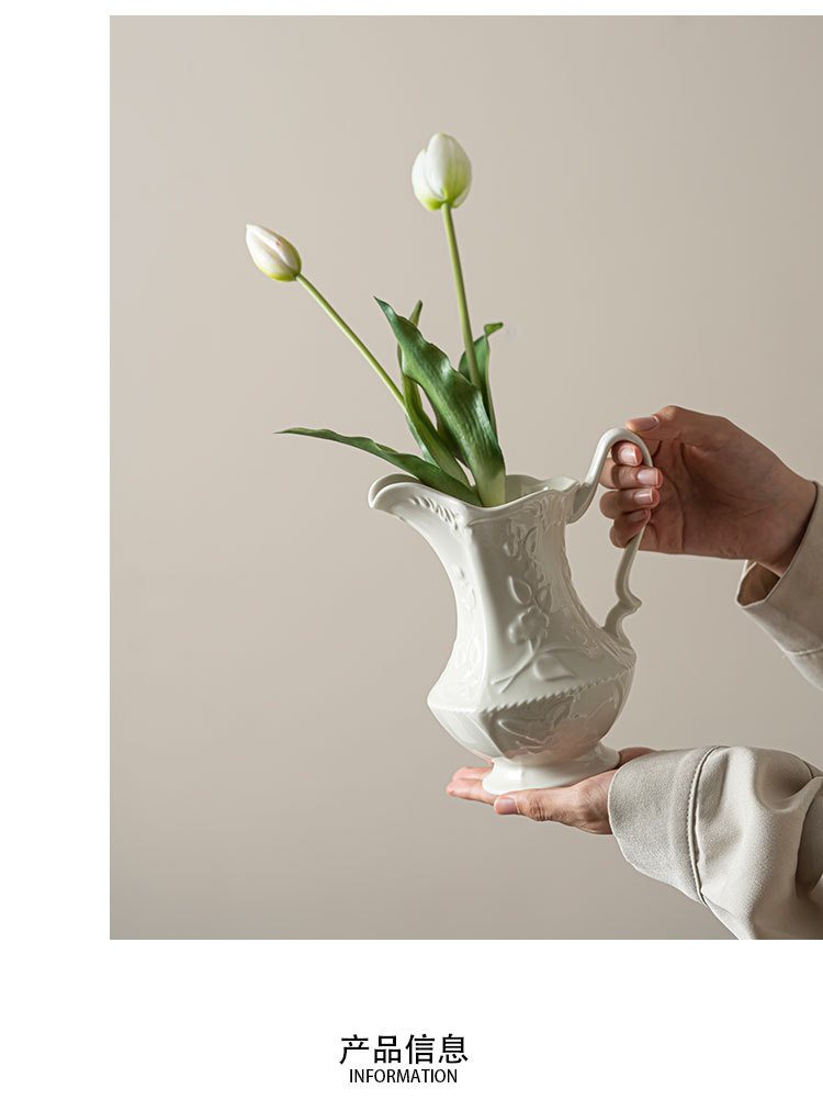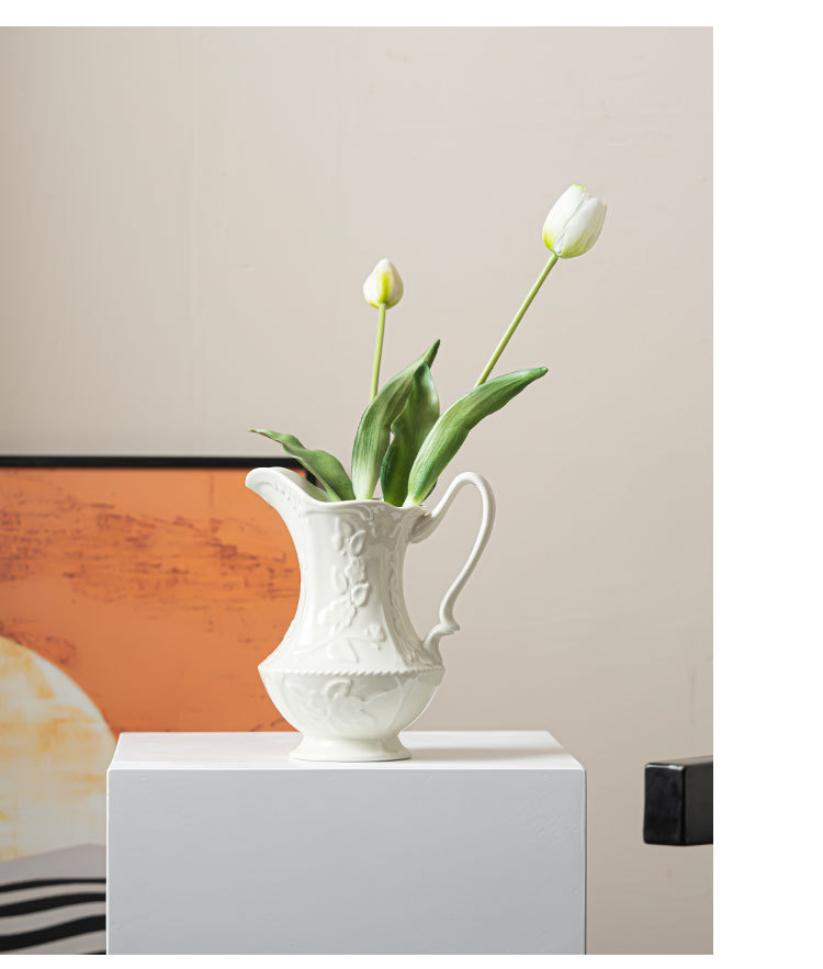 르 멩 크리 에이 티브 세라믹 꽃병 아마존 대외 무역 홈 거실 꽃 배열 호텔 부드러운 장식 크림 바람 장식품스토어 가기