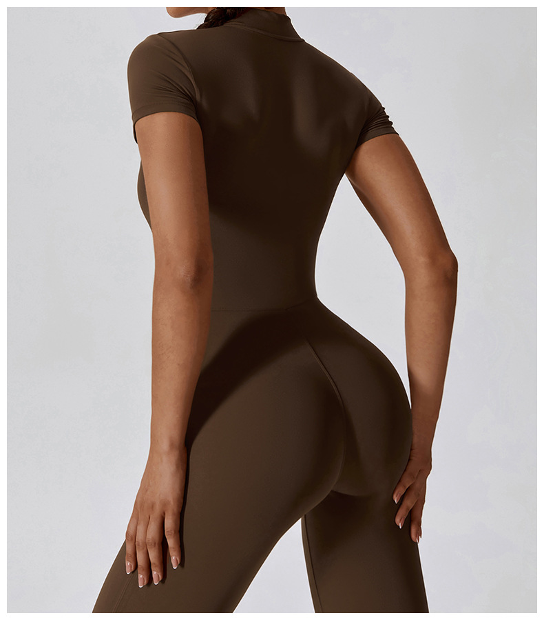 제창 지퍼 반팔 누드 느낌 요가 점프수트 여성용 피트니스 스포츠 점프수트 8305 외출용 가능
