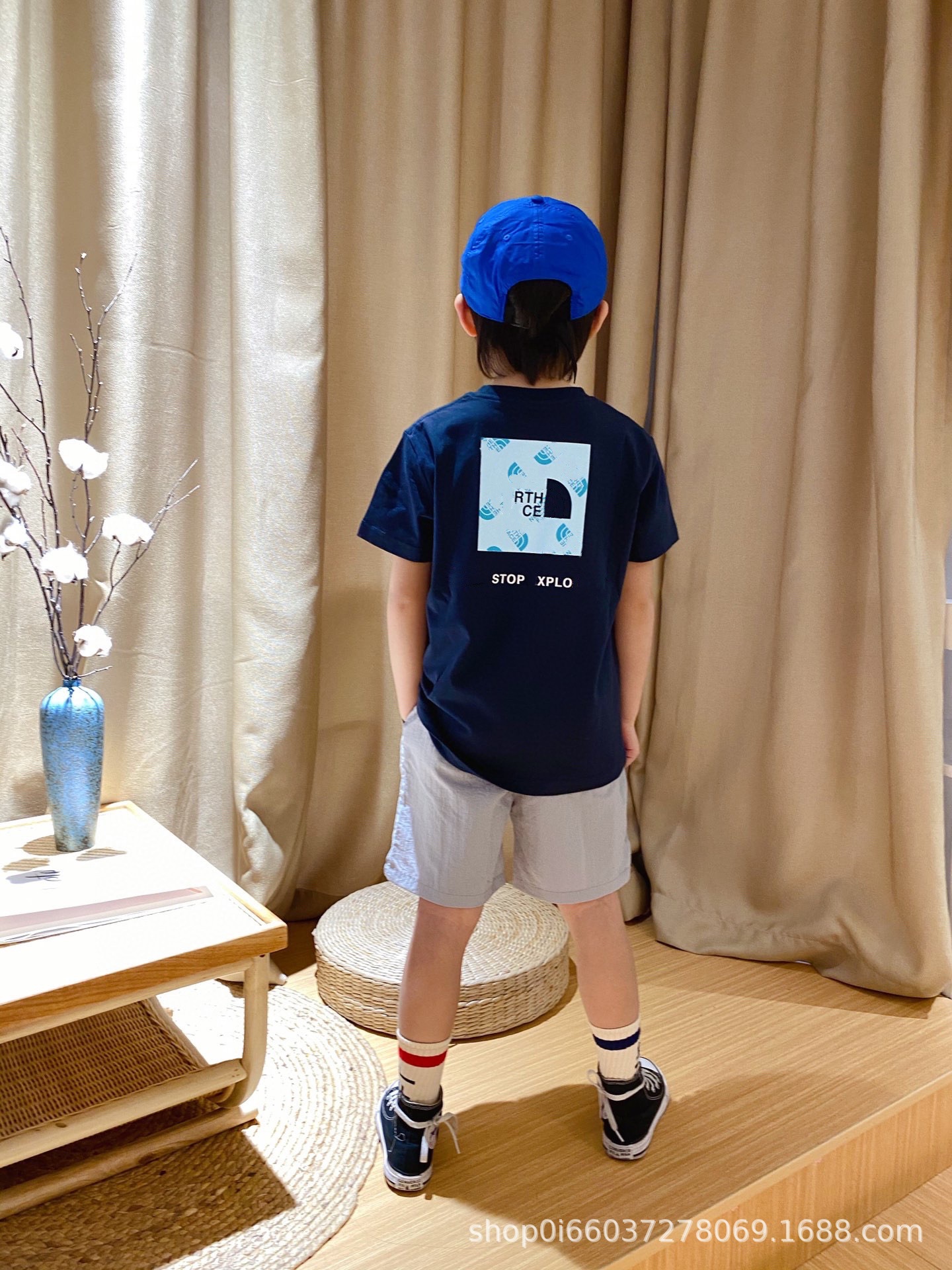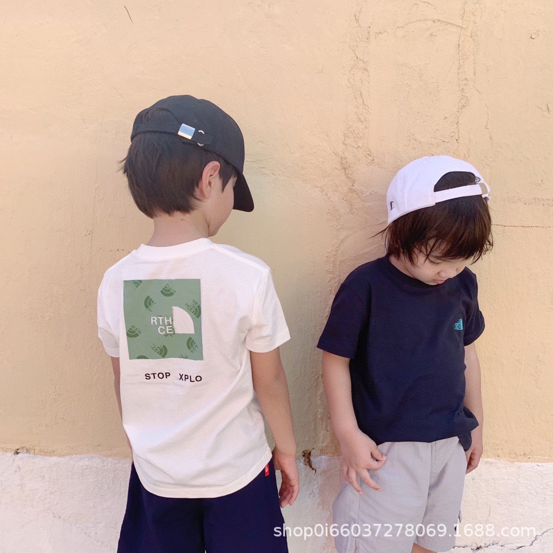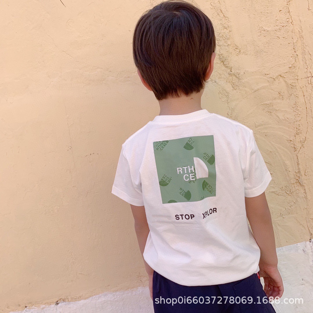 여름 패션 아동복 대형 어린이 캐주얼 탑 스퀘어 인쇄 트렌디 브랜드 반팔 티셔츠 면 느슨한스토어 가기