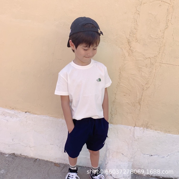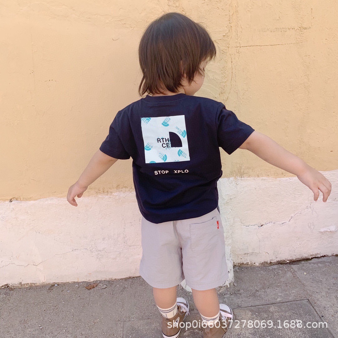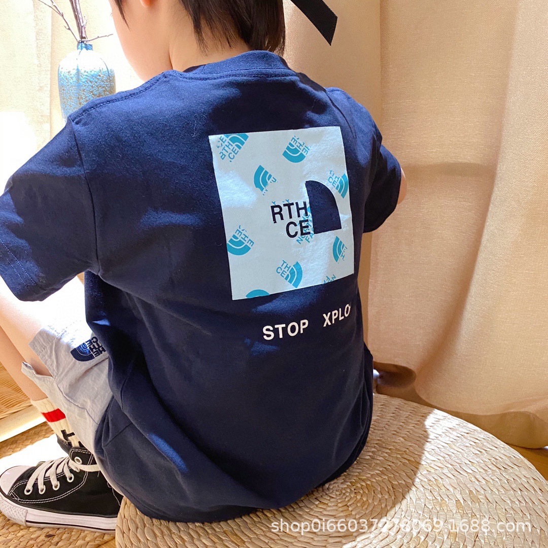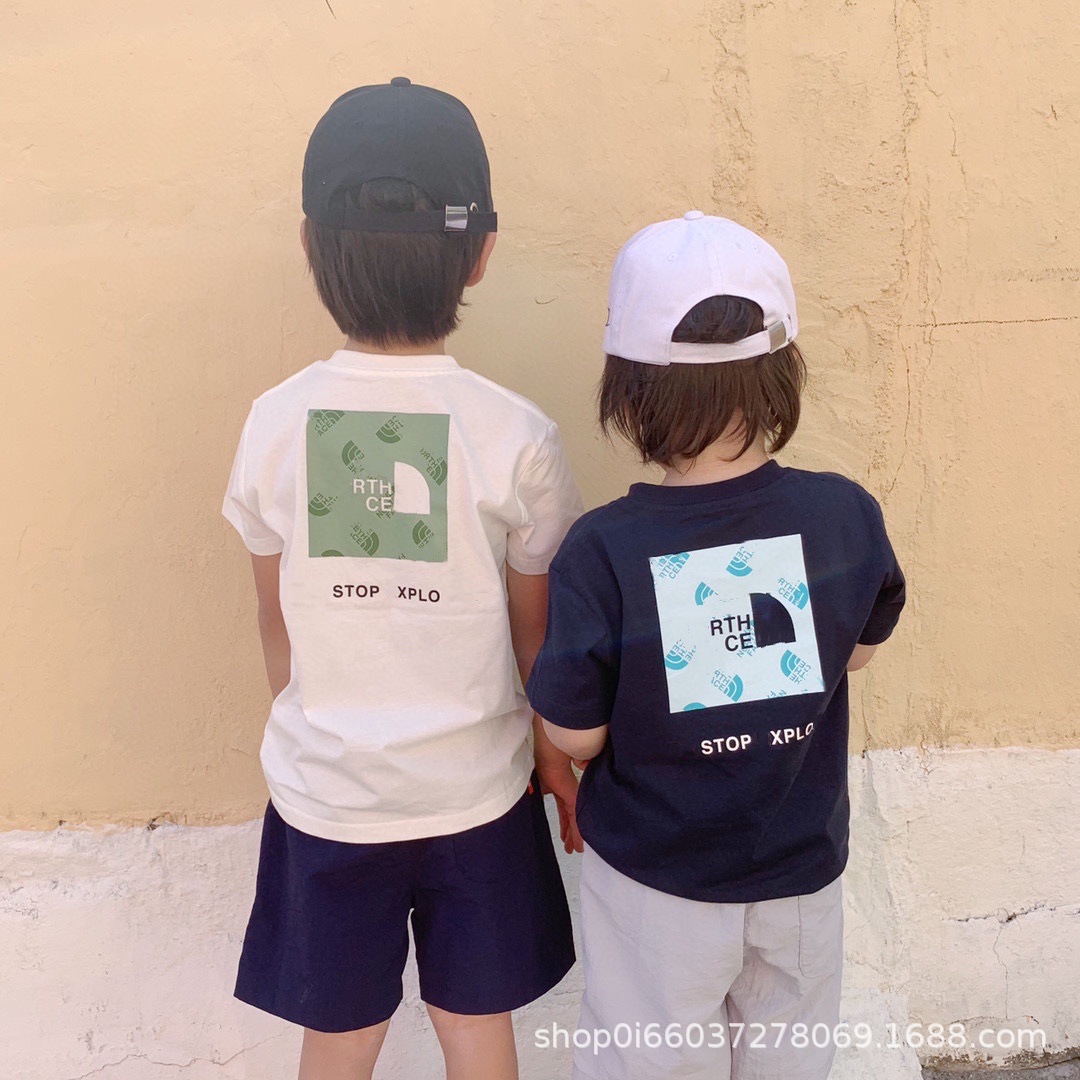 여름 패션 아동복 대형 어린이 캐주얼 탑 스퀘어 인쇄 트렌디 브랜드 반팔 티셔츠 면 느슨한스토어 가기