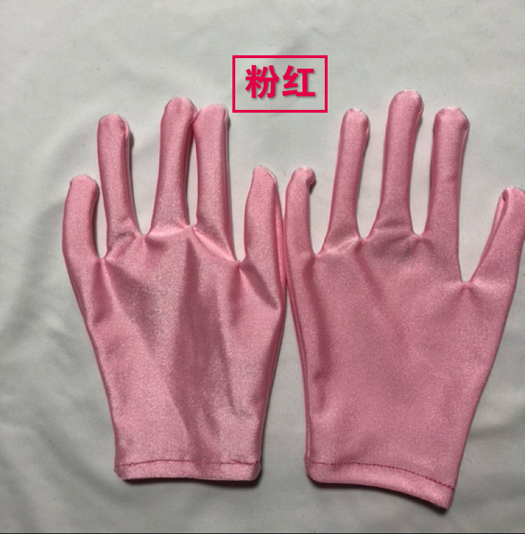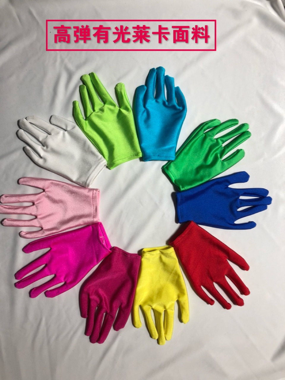 厂家直销高弹莱卡白色儿童手套 面料有光泽 适合舞台表演 其它颜色数量200以上可以定做 基本上什么颜色都有