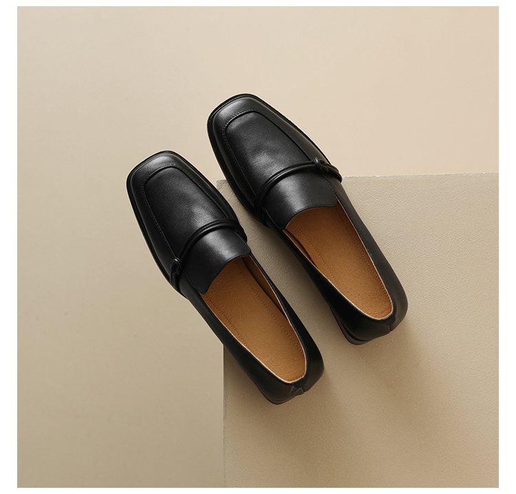 프렌치 미드 힐 싱글 레이어 슈즈 여성용 2023 봄 새로운 스퀘어 토 두꺼운 굽 로퍼 영국 스타일 레트로 작은 가죽 신발스토어 가기