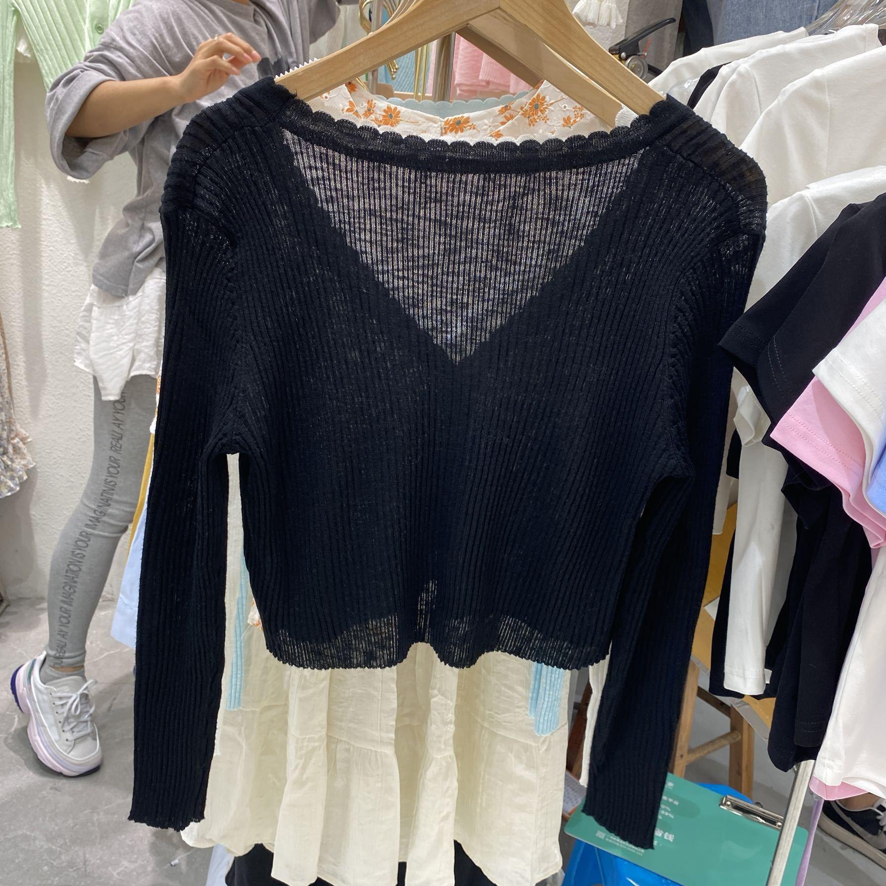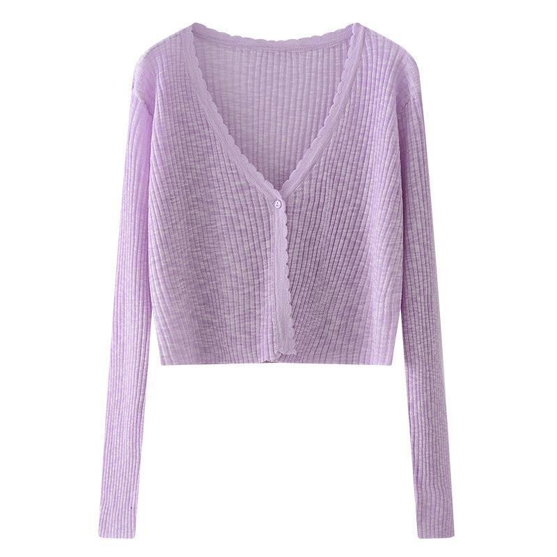 샤오샹풍 니트 가디건 얇은 여성용 봄가을 아이스 실크 루즈핏 아우터 자외선 차단 재킷 숏탑 긴팔 이너웨어