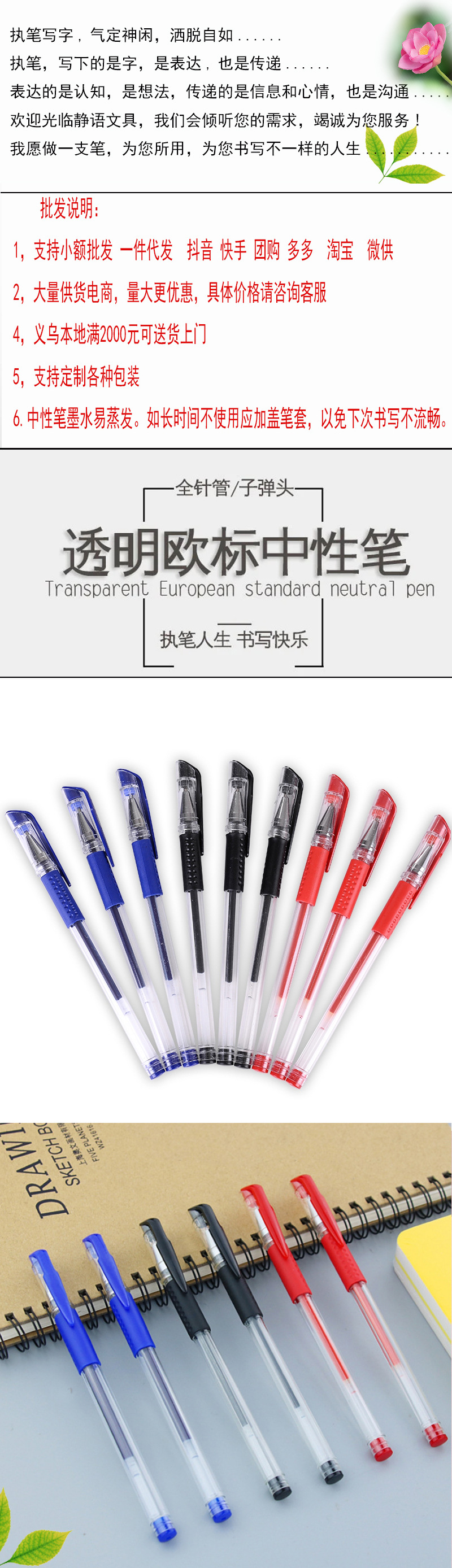 유럽 표준 젤 펜 0.5mm 총알 바늘 펜 볼펜 탄소 물 펜 서명 펜 사무실 검사 펜스토어 가기
