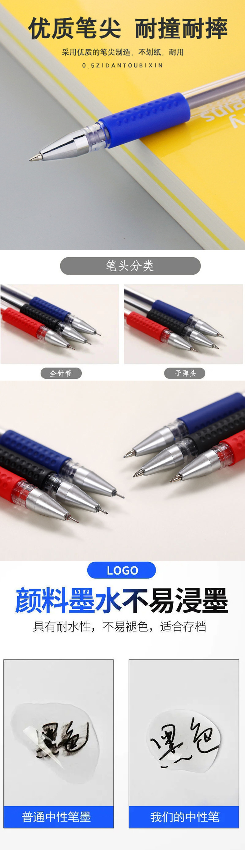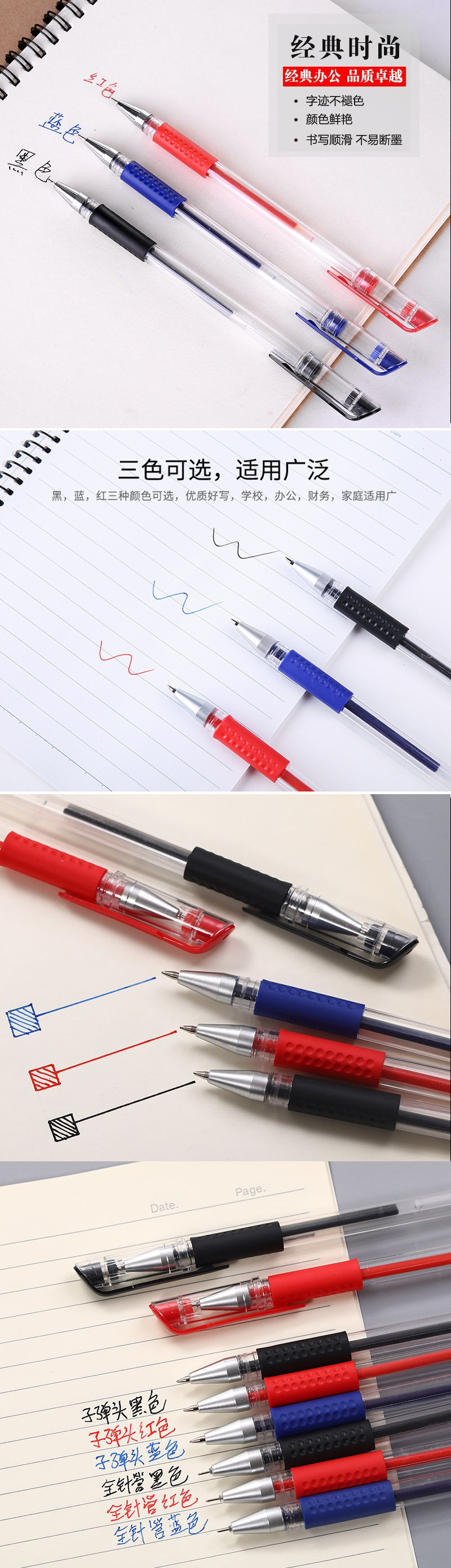 유럽 표준 젤 펜 0.5mm 총알 바늘 펜 볼펜 탄소 물 펜 서명 펜 사무실 검사 펜