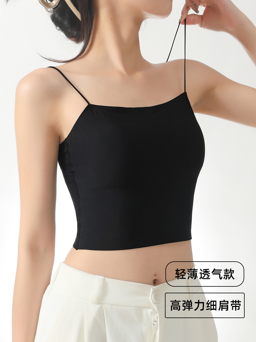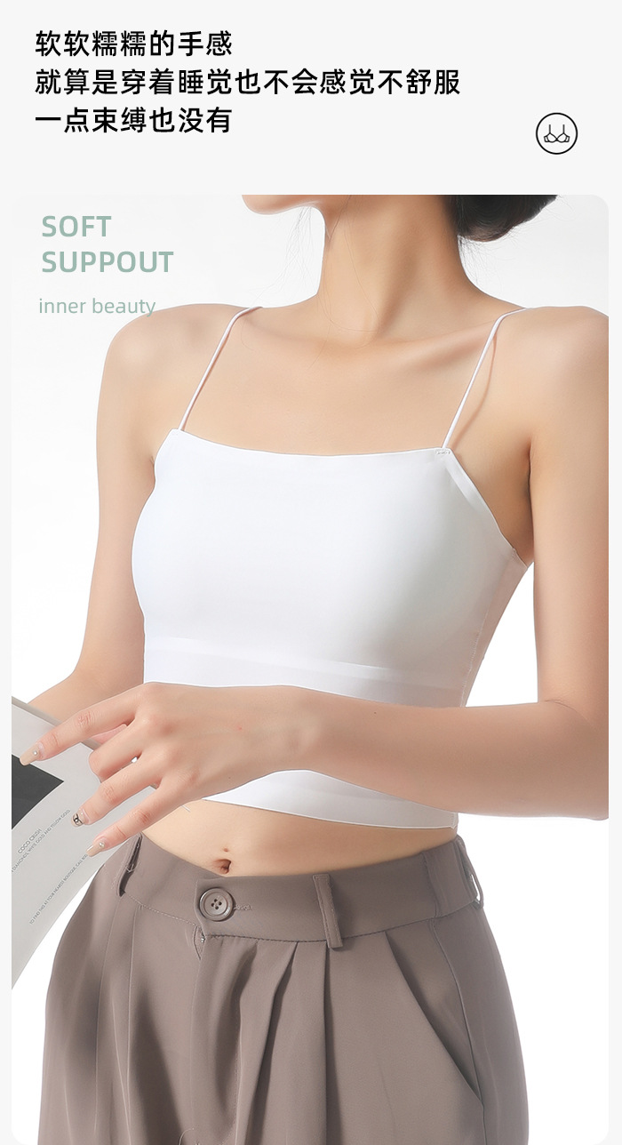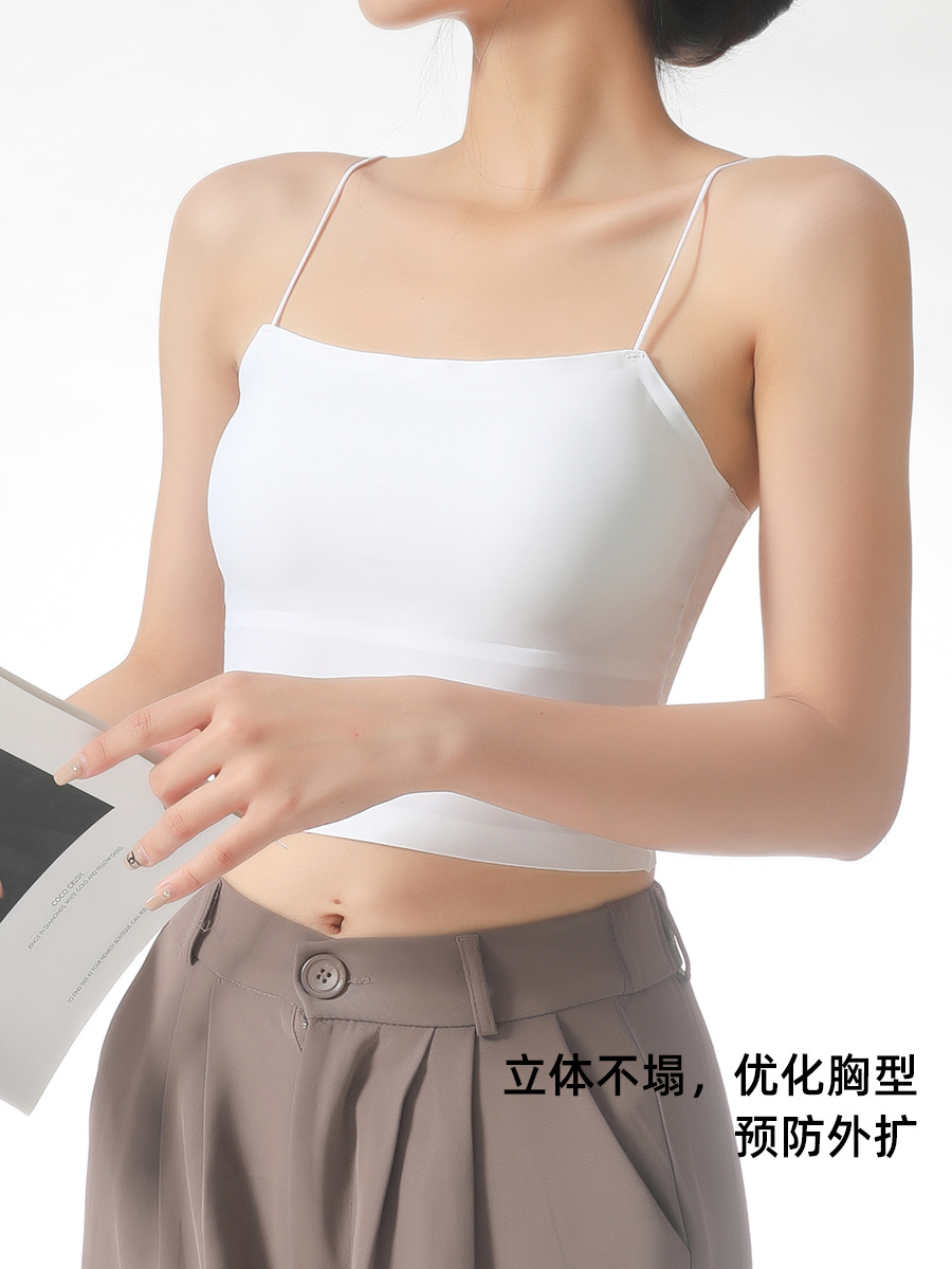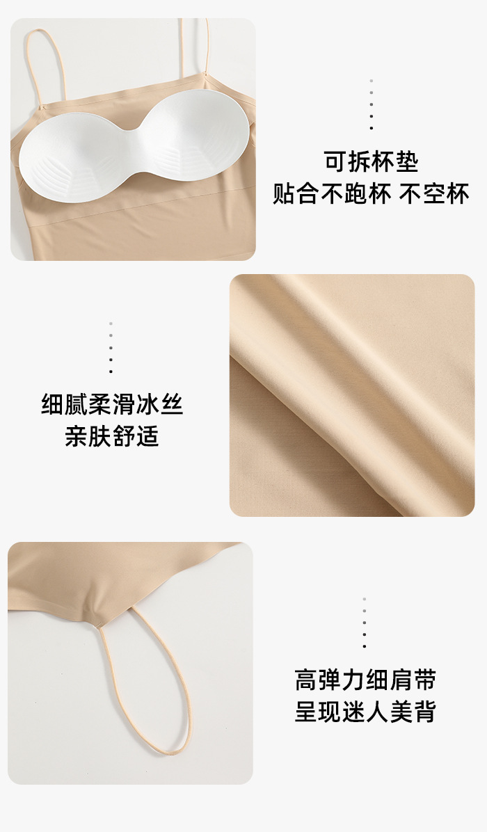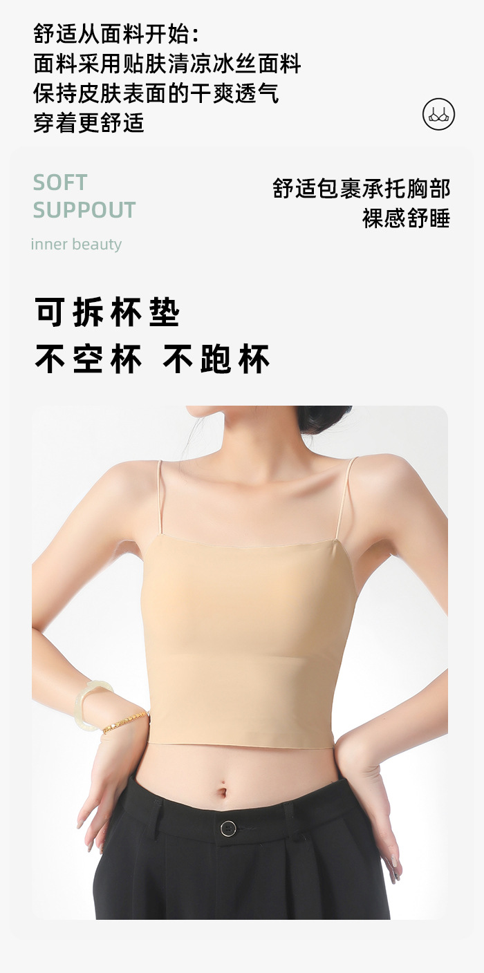 抖音网红直播爆款光板冰丝无痕吊带内衣免穿文胸带胸垫固定杯背心
